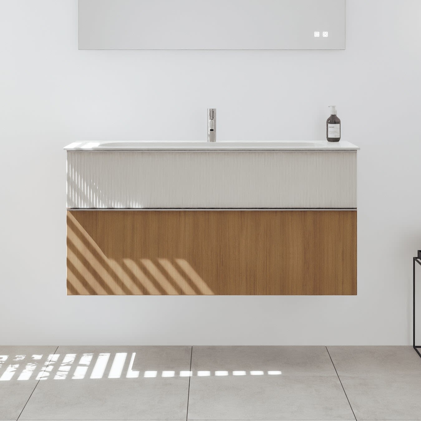 burgbad Fiumo 2.0 Spiegelschrank 120,6 cm mit LED-Aufsatzleuchte und Waschplatzbeleuchtung, 2 Spiegeltüren