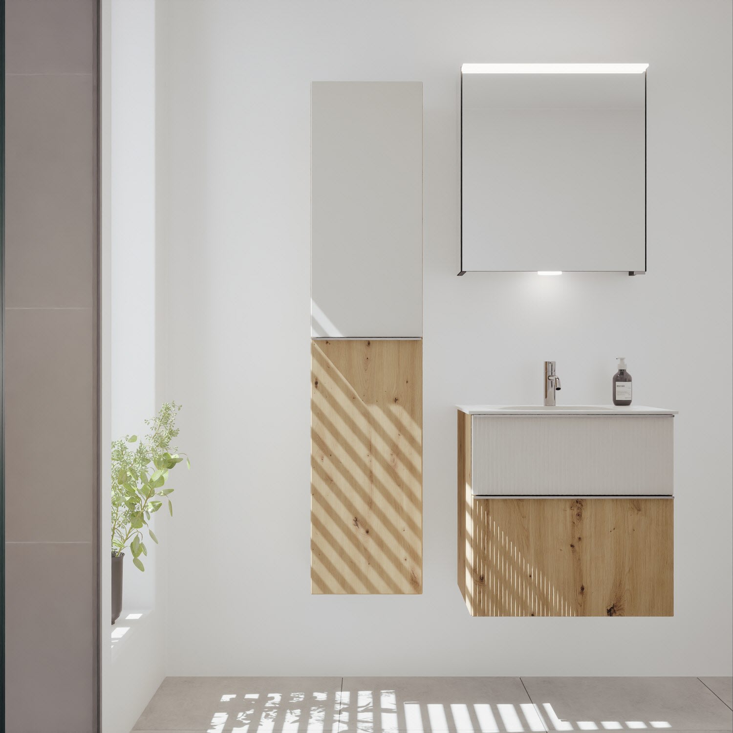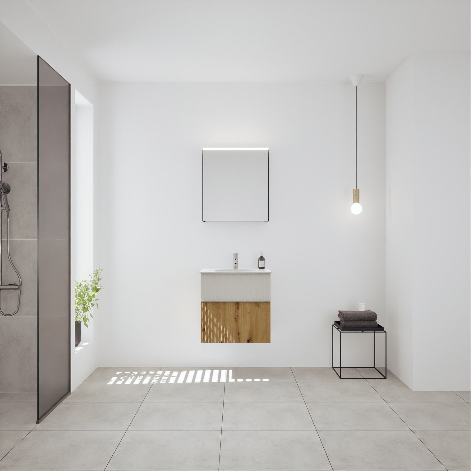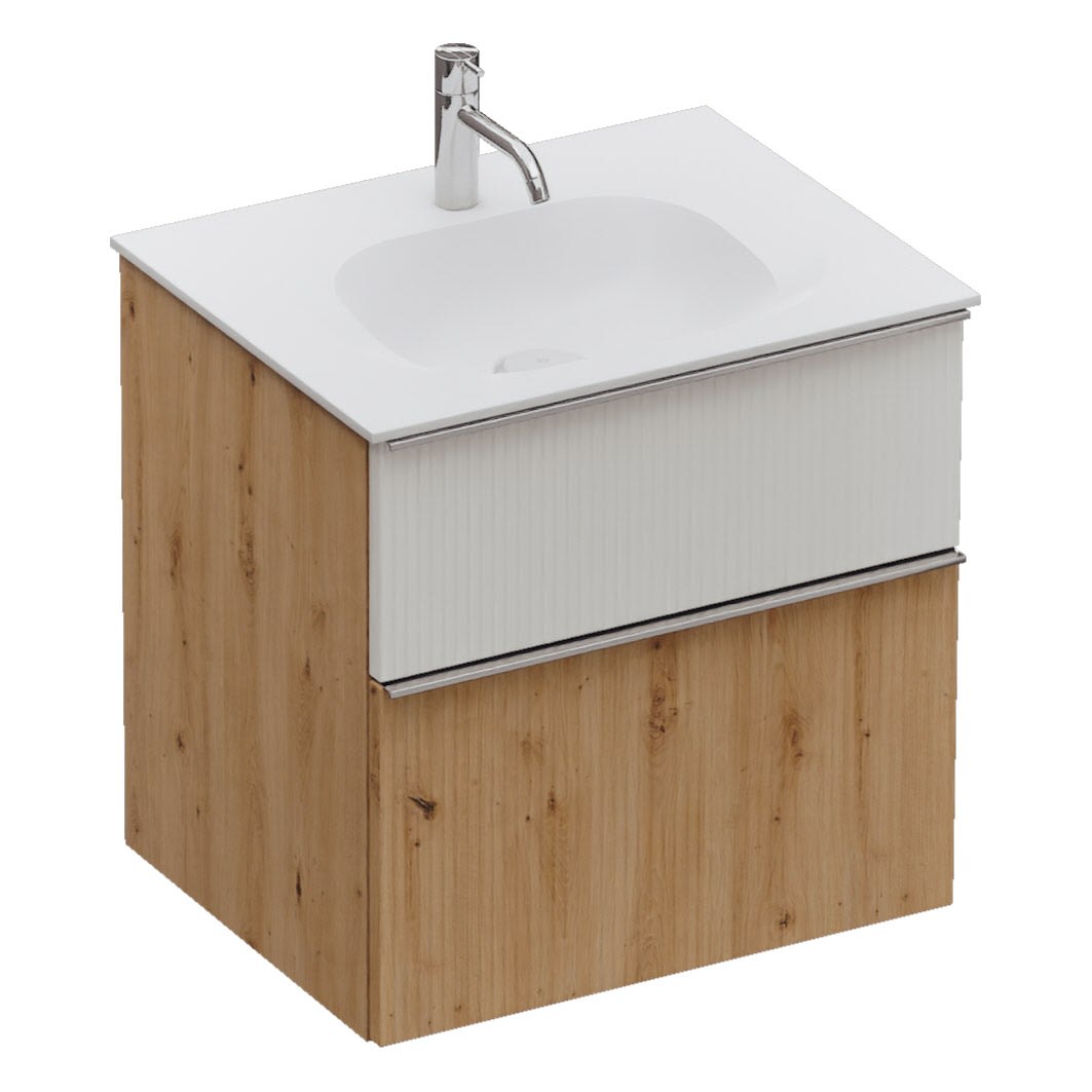 burgbad Fiumo 2.0 Mineralguss-Waschtisch mit Waschtischunterschrank 62 cm, mit Griff G0146