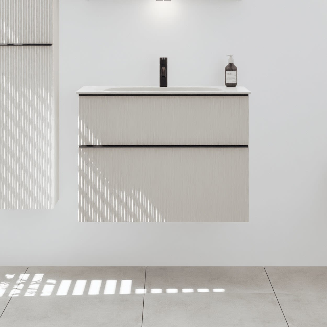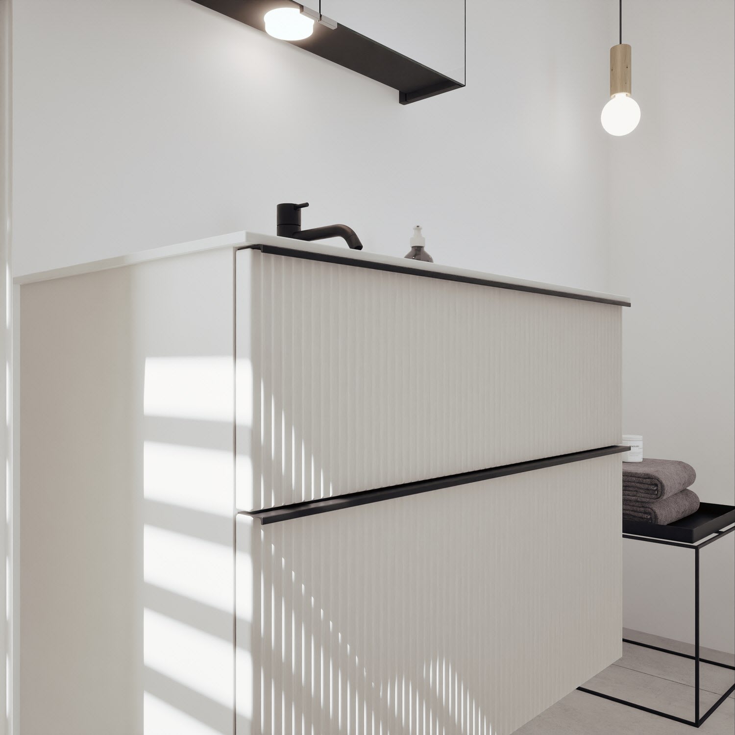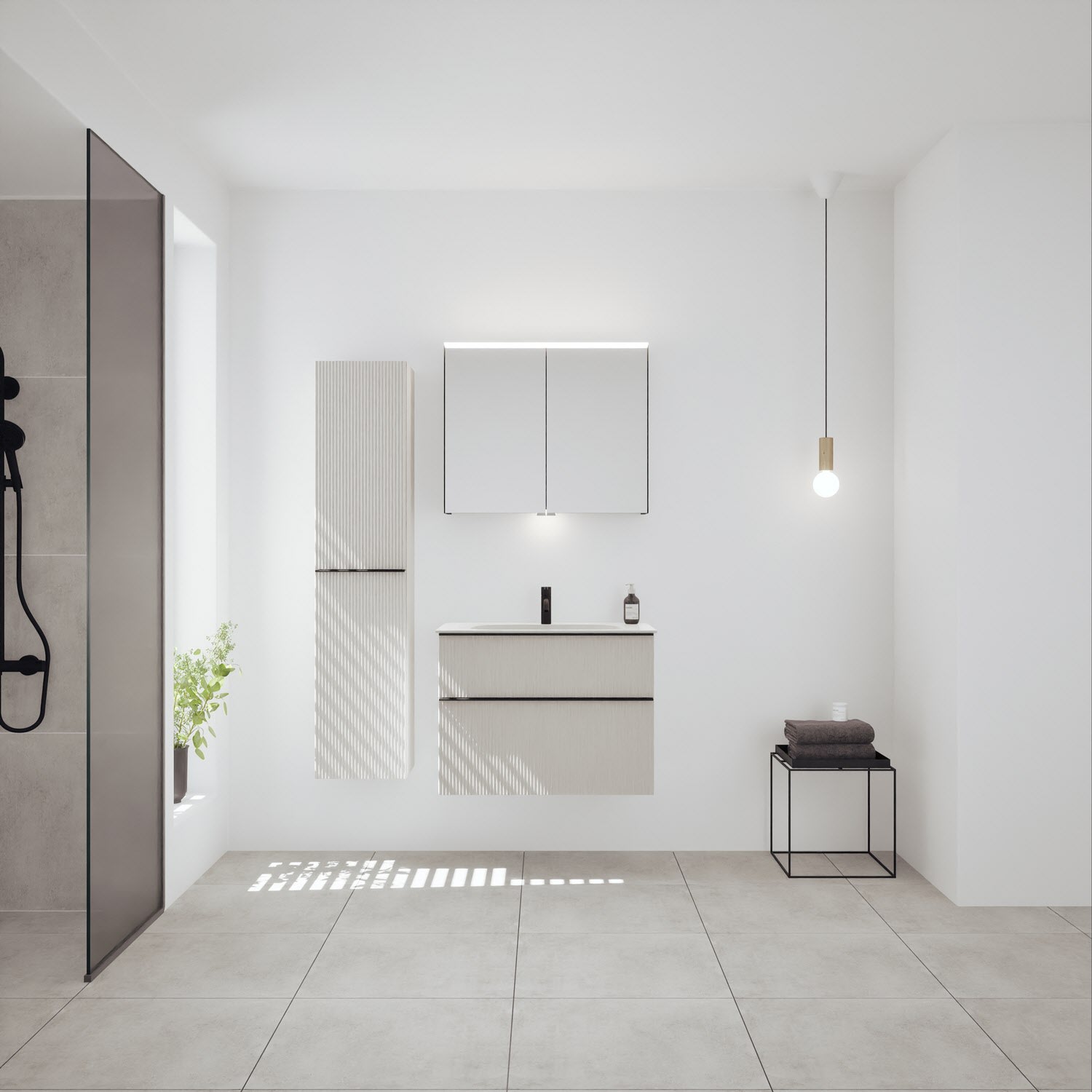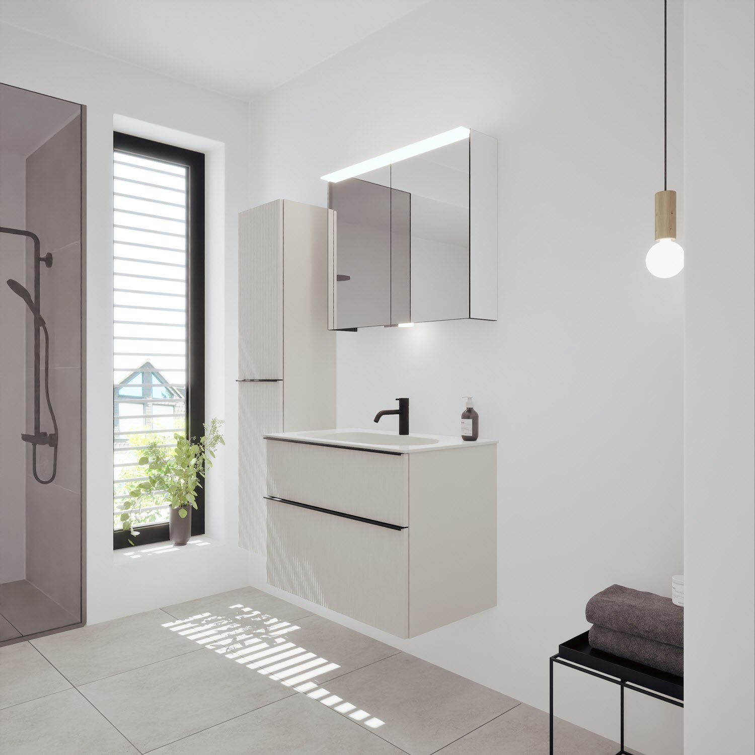 burgbad Fiumo 2.0 Mineralguss-Waschtisch mit Waschtischunterschrank 82 cm, mit Griff G0200