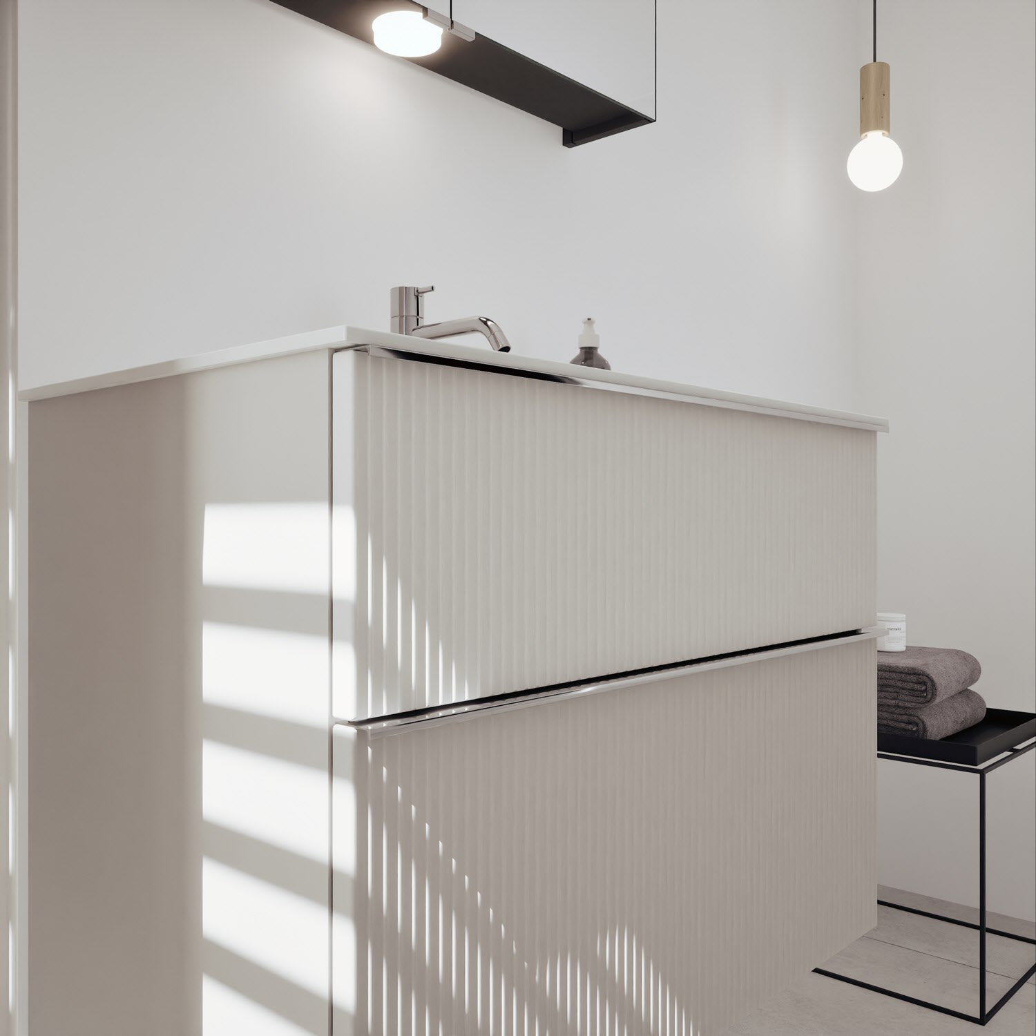 - 1 Auszug unten: 35 cm tief, mit vertikaler Struktur