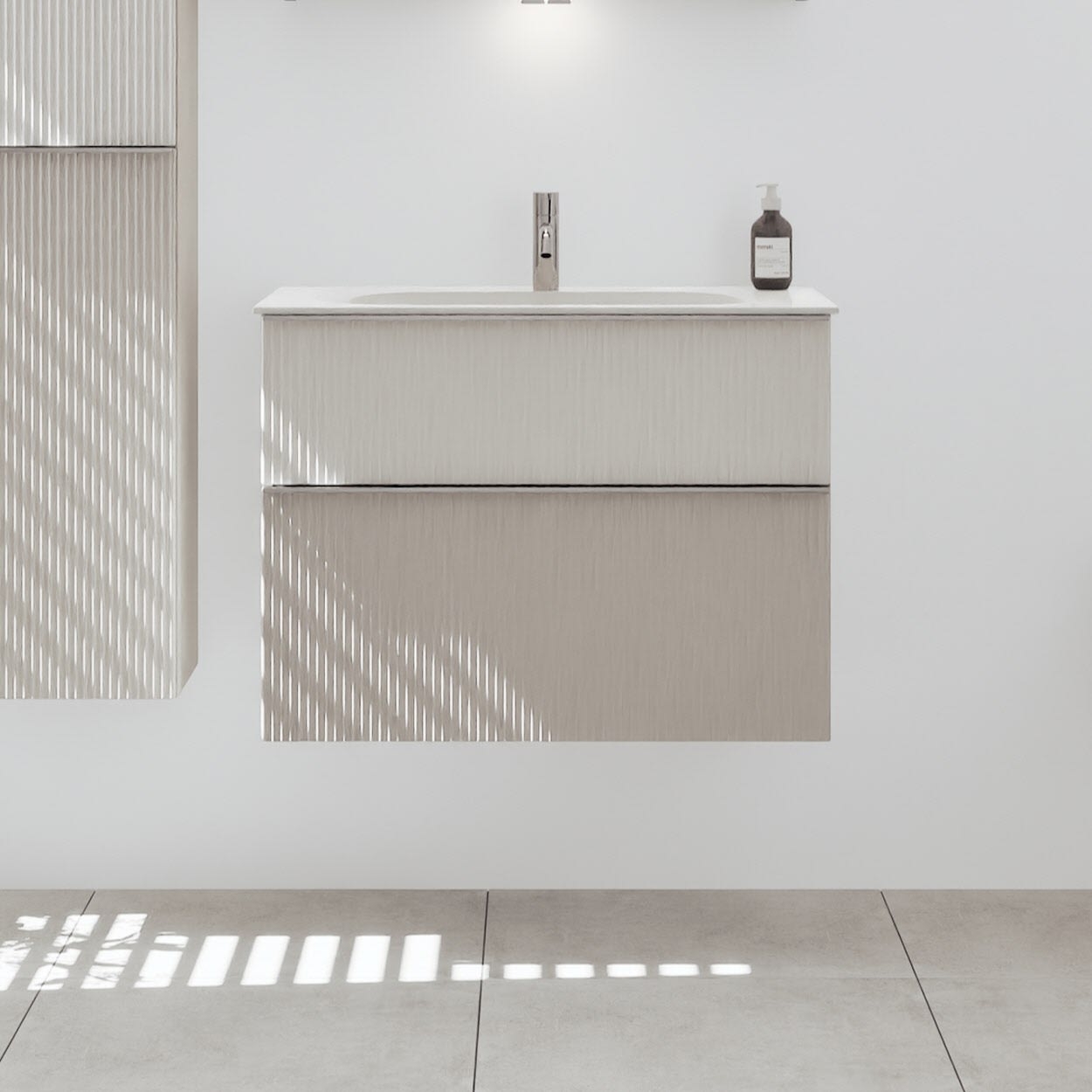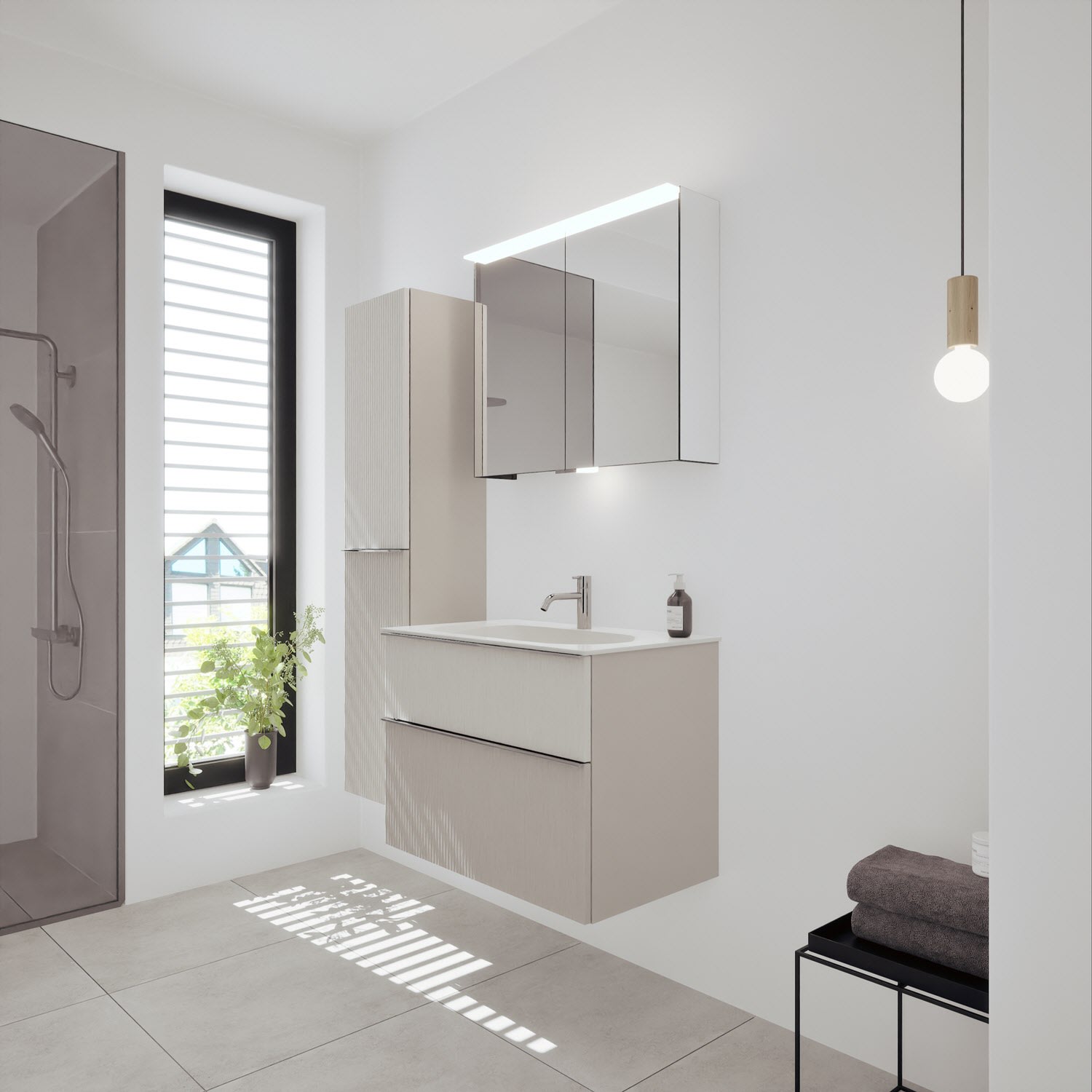 burgbad Fiumo 2.0 Mineralguss-Waschtisch mit Waschtischunterschrank 82 cm, mit Griff G0146