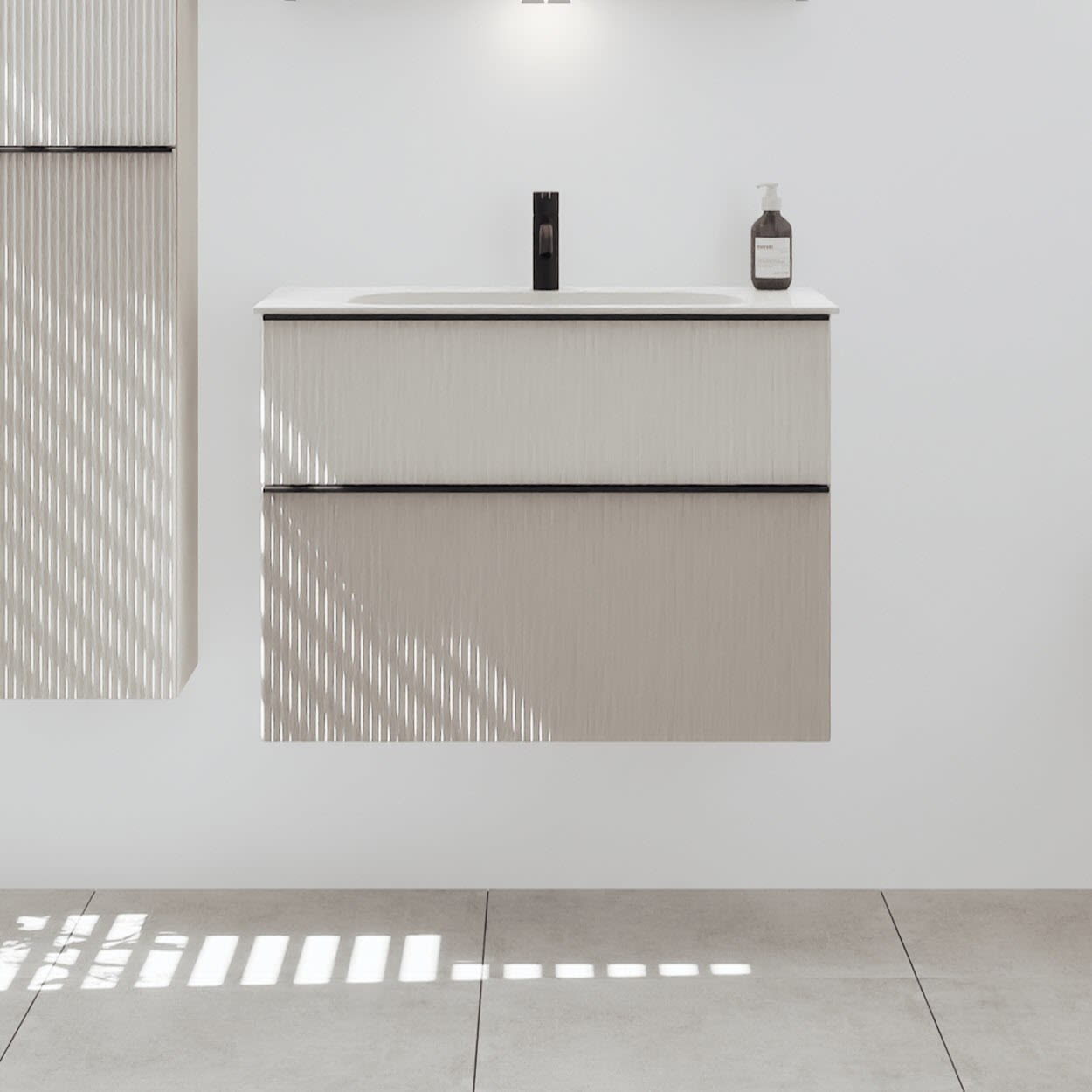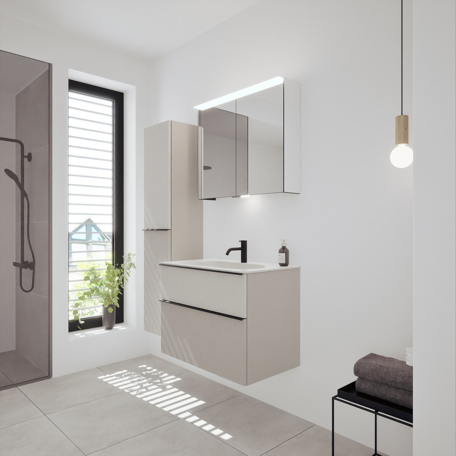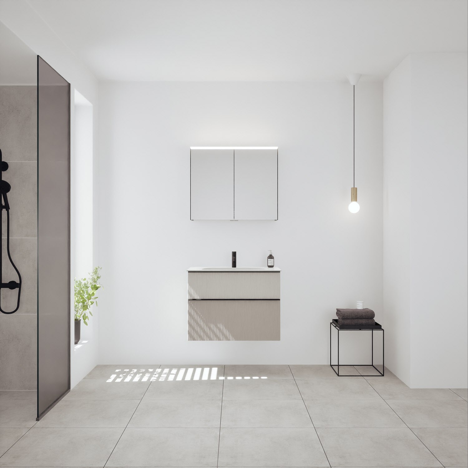 burgbad Fiumo 2.0 Mineralguss-Waschtisch mit Waschtischunterschrank 82 cm, mit Griff G0200