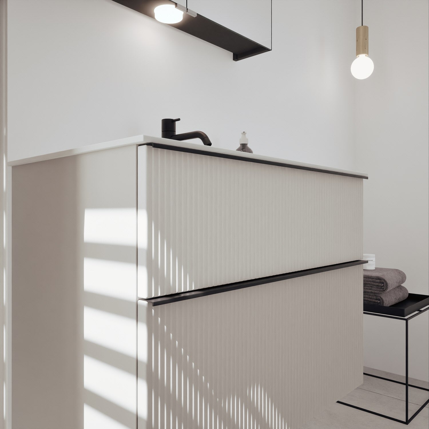 - 1 Auszug unten: 35 cm tief, mit vertikaler Struktur