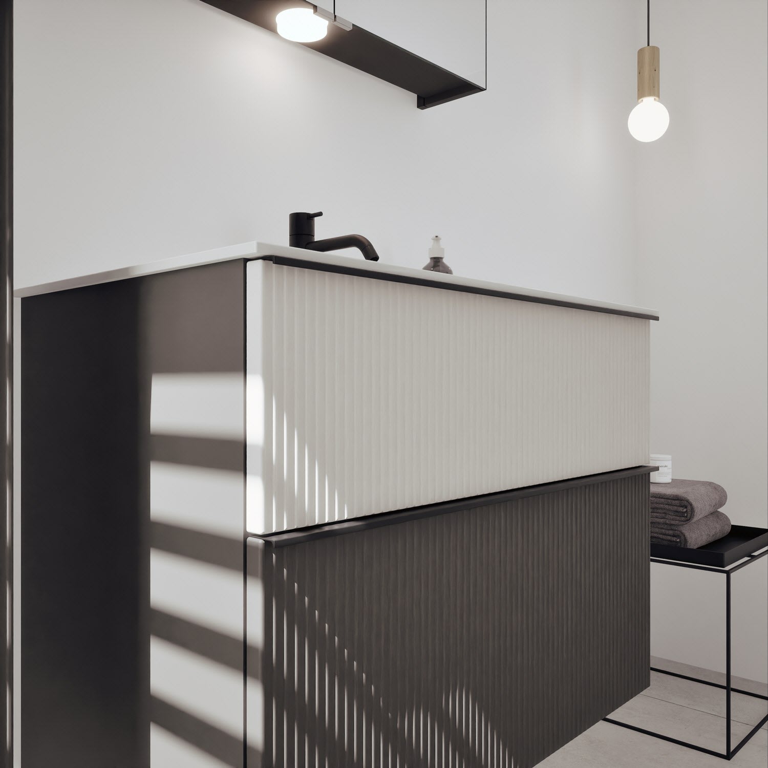 - 1 Auszug unten: 35 cm tief, mit vertikaler Struktur