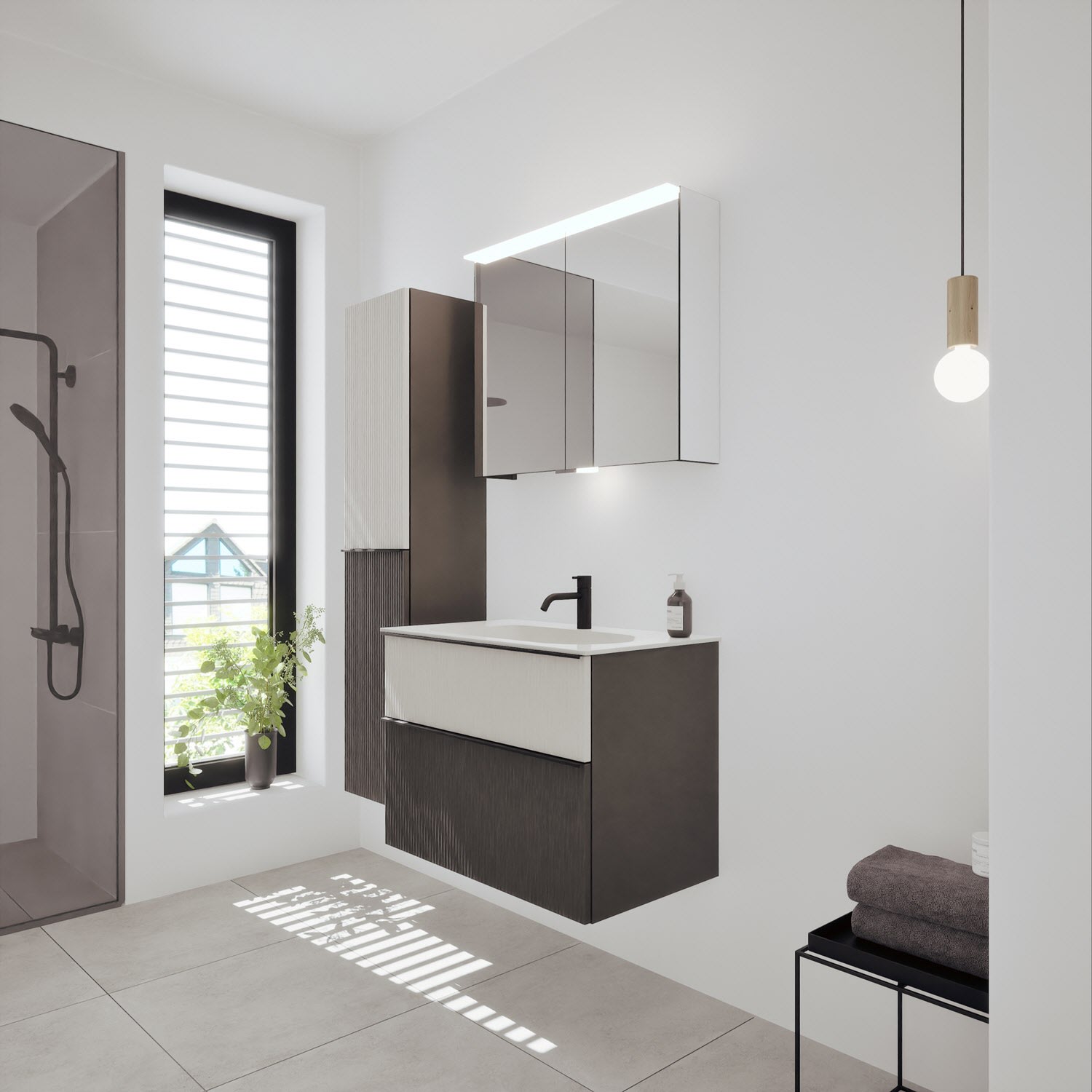 burgbad Fiumo 2.0 Mineralguss-Waschtisch mit Waschtischunterschrank 82 cm, mit Griff G0200