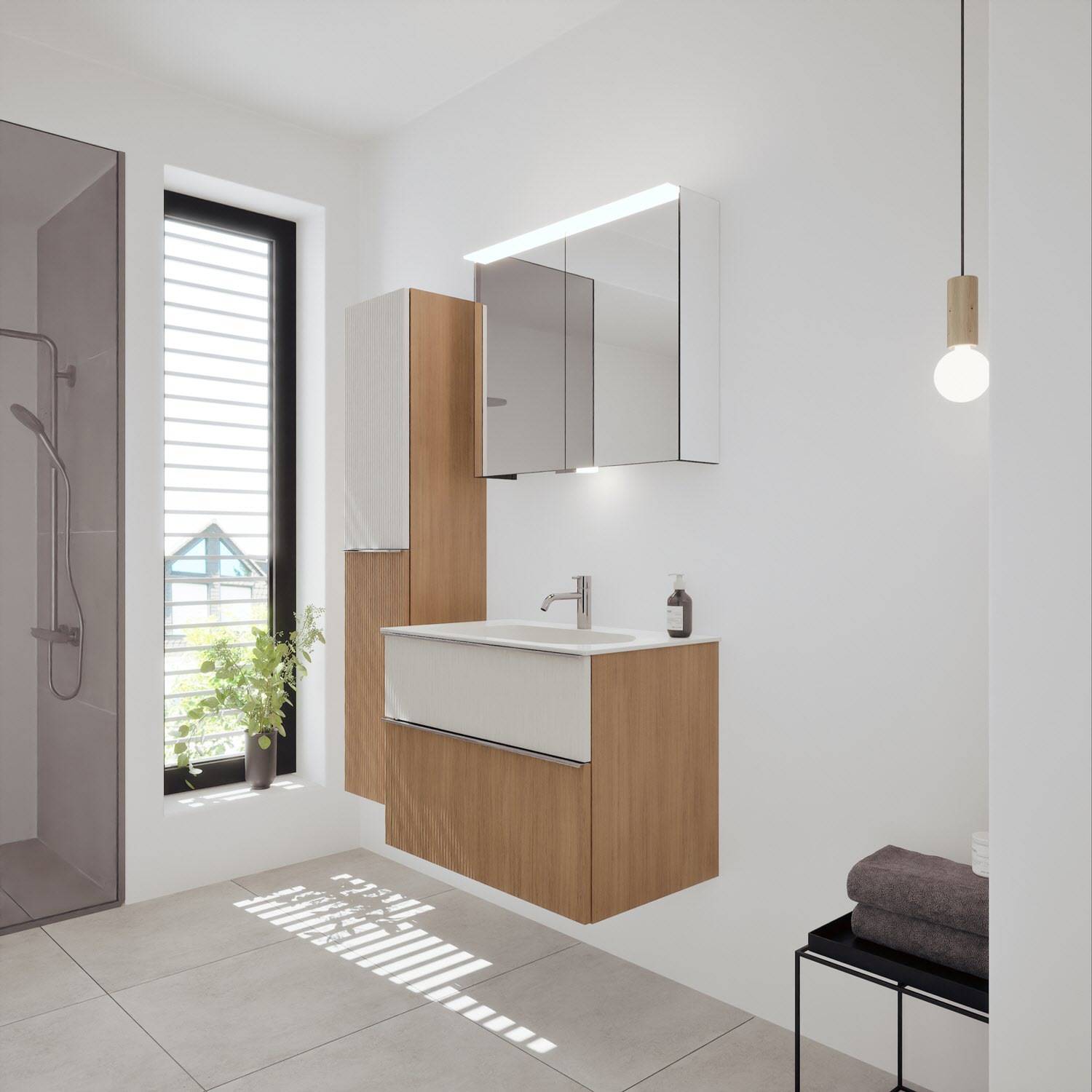 burgbad Fiumo 2.0 Spiegelschrank 80,6 cm mit LED-Aufsatzleuchte und Waschplatzbeleuchtung, 2 Spiegeltüren