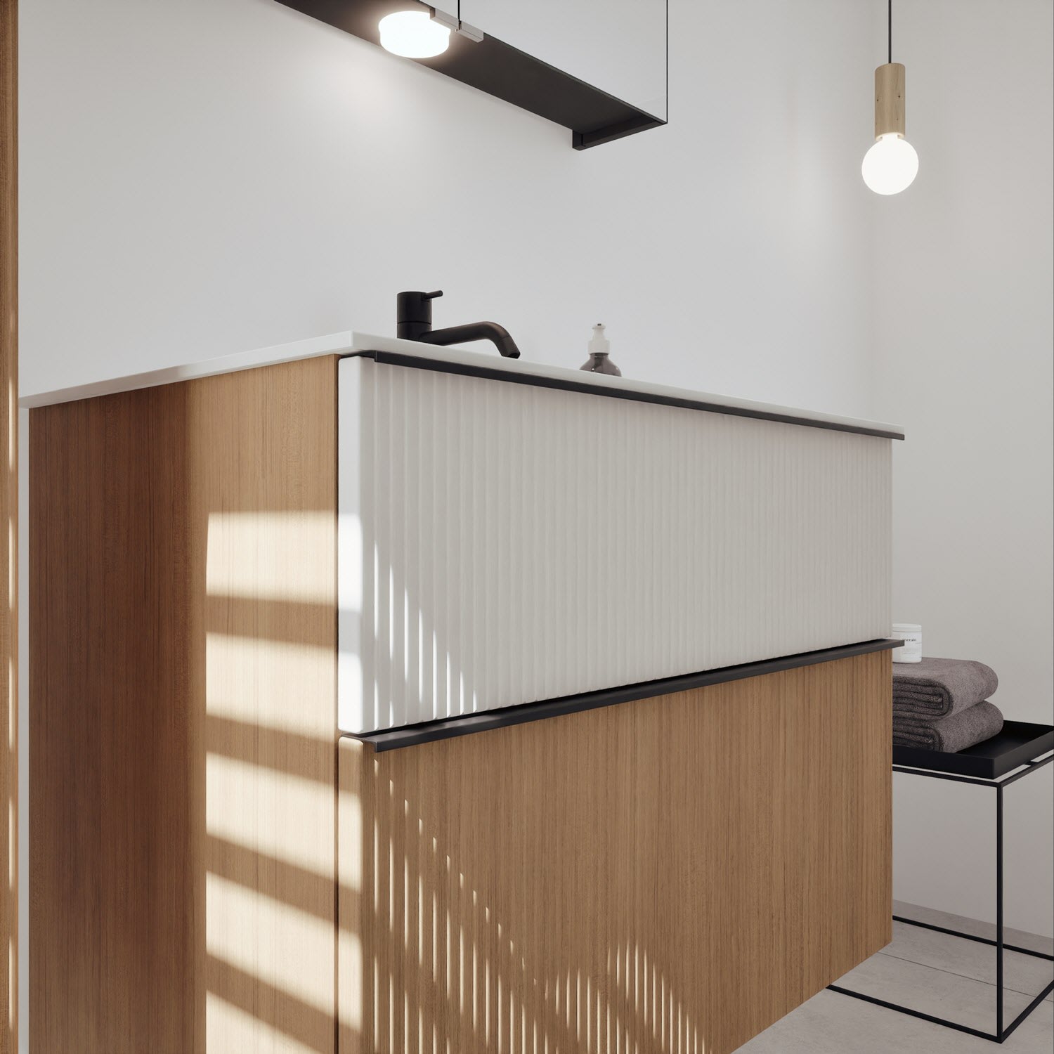 - 1 Auszug unten: 35 cm tief, mit vertikaler Struktur