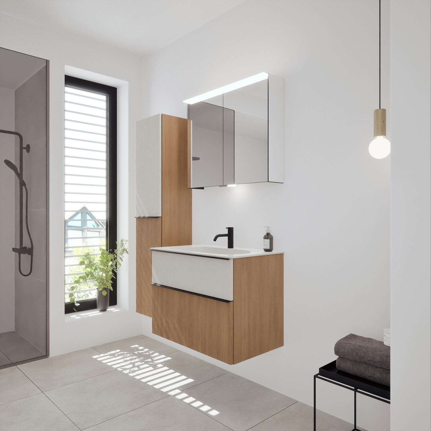 burgbad Fiumo 2.0 Mineralguss-Waschtisch mit Waschtischunterschrank 82 cm, mit Griff G0200