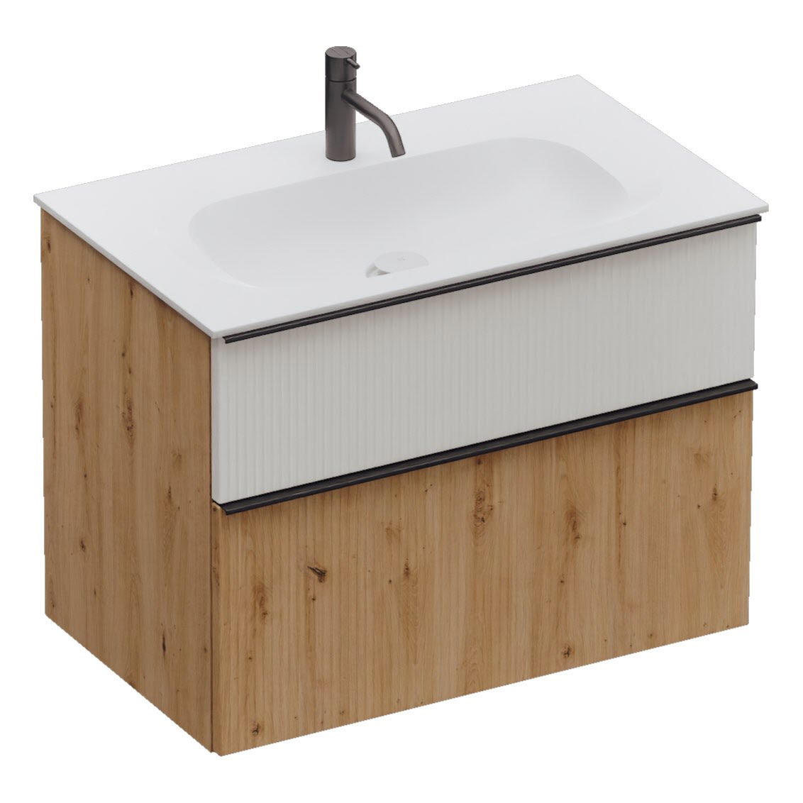 burgbad Fiumo 2.0 Mineralguss-Waschtisch mit Waschtischunterschrank 82 cm, mit Griff G0200
