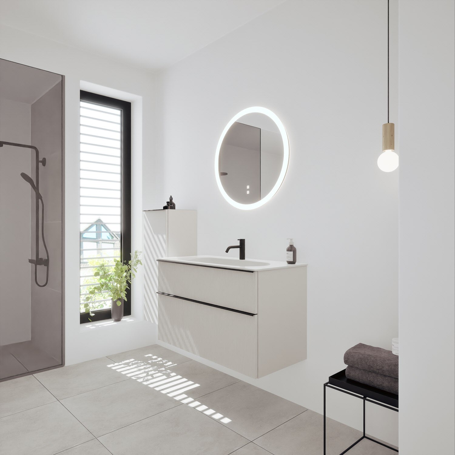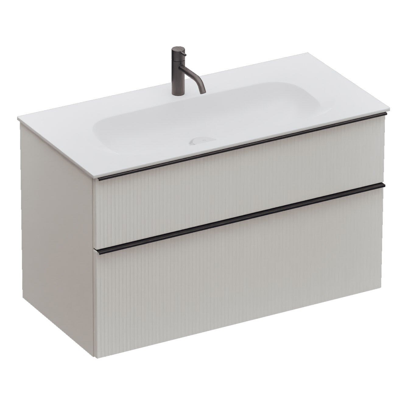 burgbad Fiumo 2.0 Mineralguss-Waschtisch mit Waschtischunterschrank 102 cm, mit Griff G0200