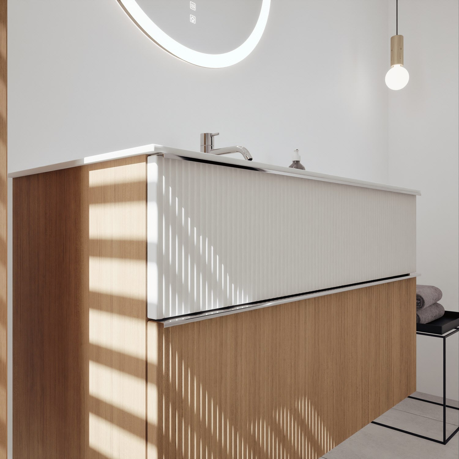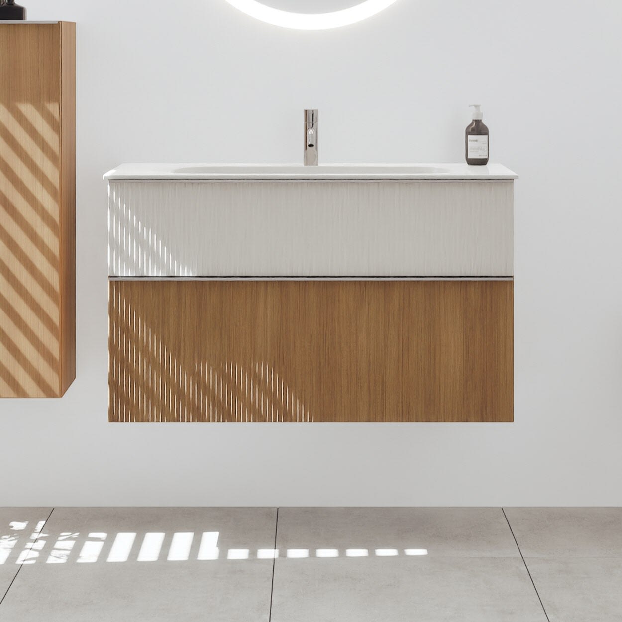 burgbad Fiumo 2.0 Mineralguss-Waschtisch mit Waschtischunterschrank 102 cm, mit Griff G0146