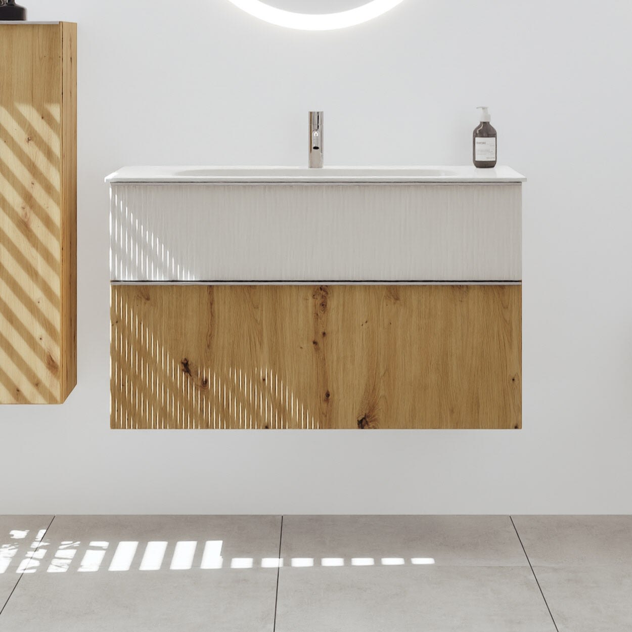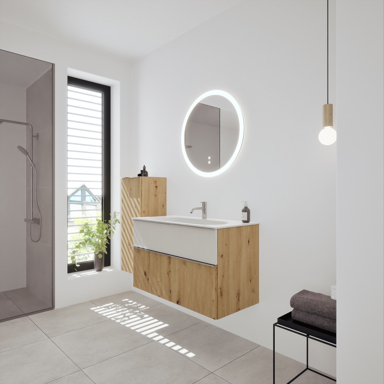 burgbad Fiumo 2.0 Mineralguss-Waschtisch mit Waschtischunterschrank 102 cm, mit Griff G0146