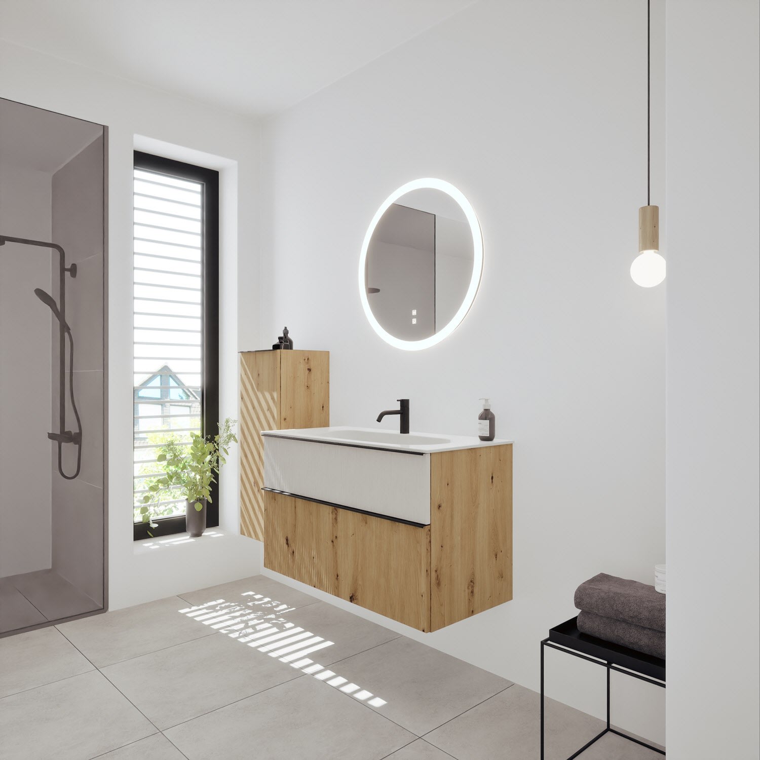 burgbad Fiumo 2.0 Mineralguss-Waschtisch mit Waschtischunterschrank 102 cm, mit Griff G0200