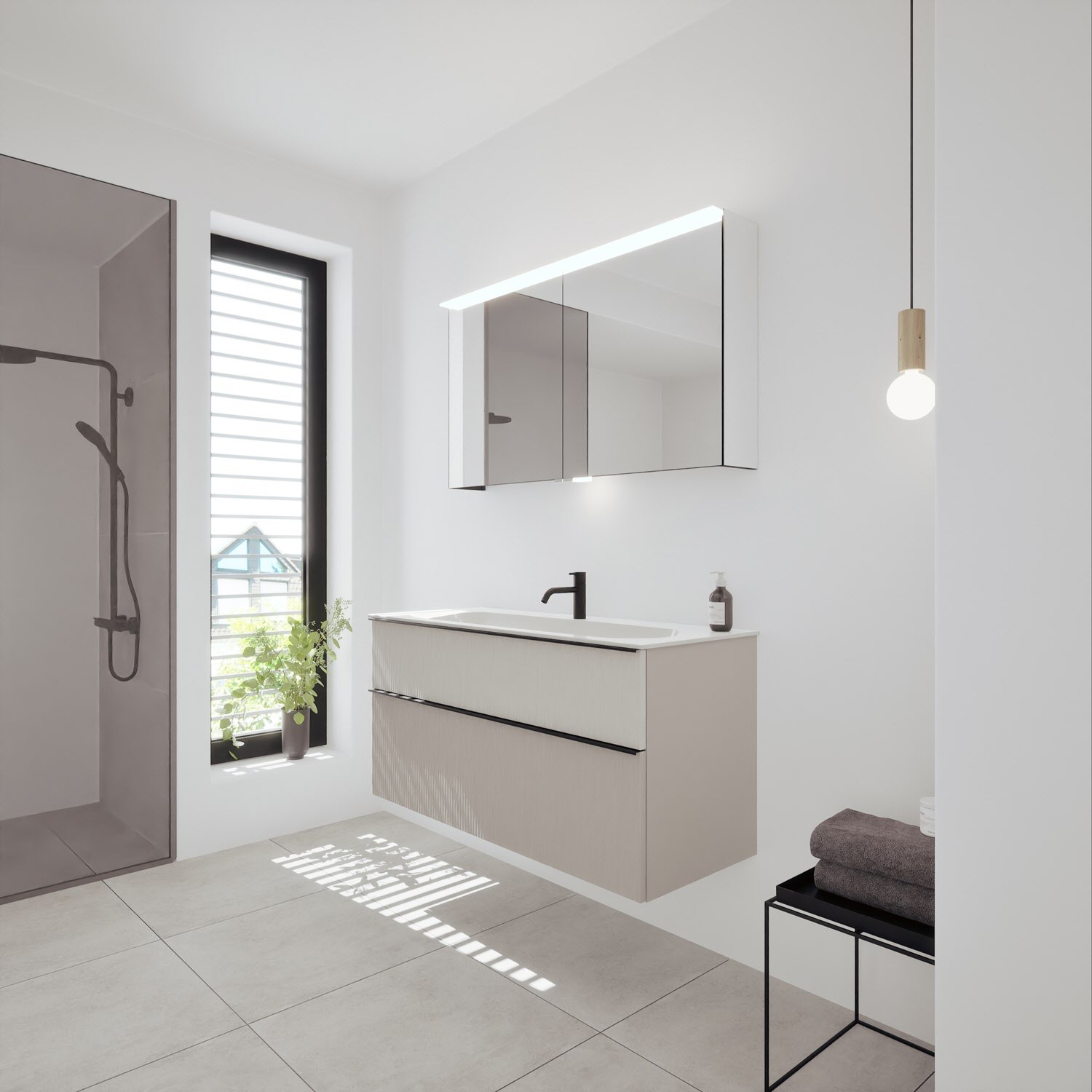 burgbad Fiumo 2.0 Mineralguss-Waschtisch mit Waschtischunterschrank 122 cm, mit Griff G0200