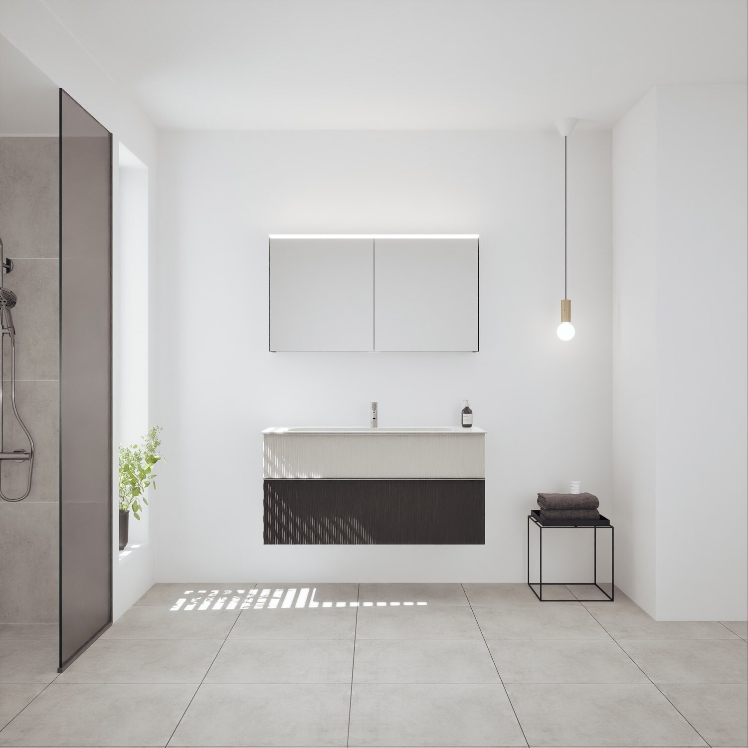 burgbad Fiumo 2.0 Spiegelschrank 120,6 cm mit LED-Aufsatzleuchte und Waschplatzbeleuchtung, 2 Spiegeltüren