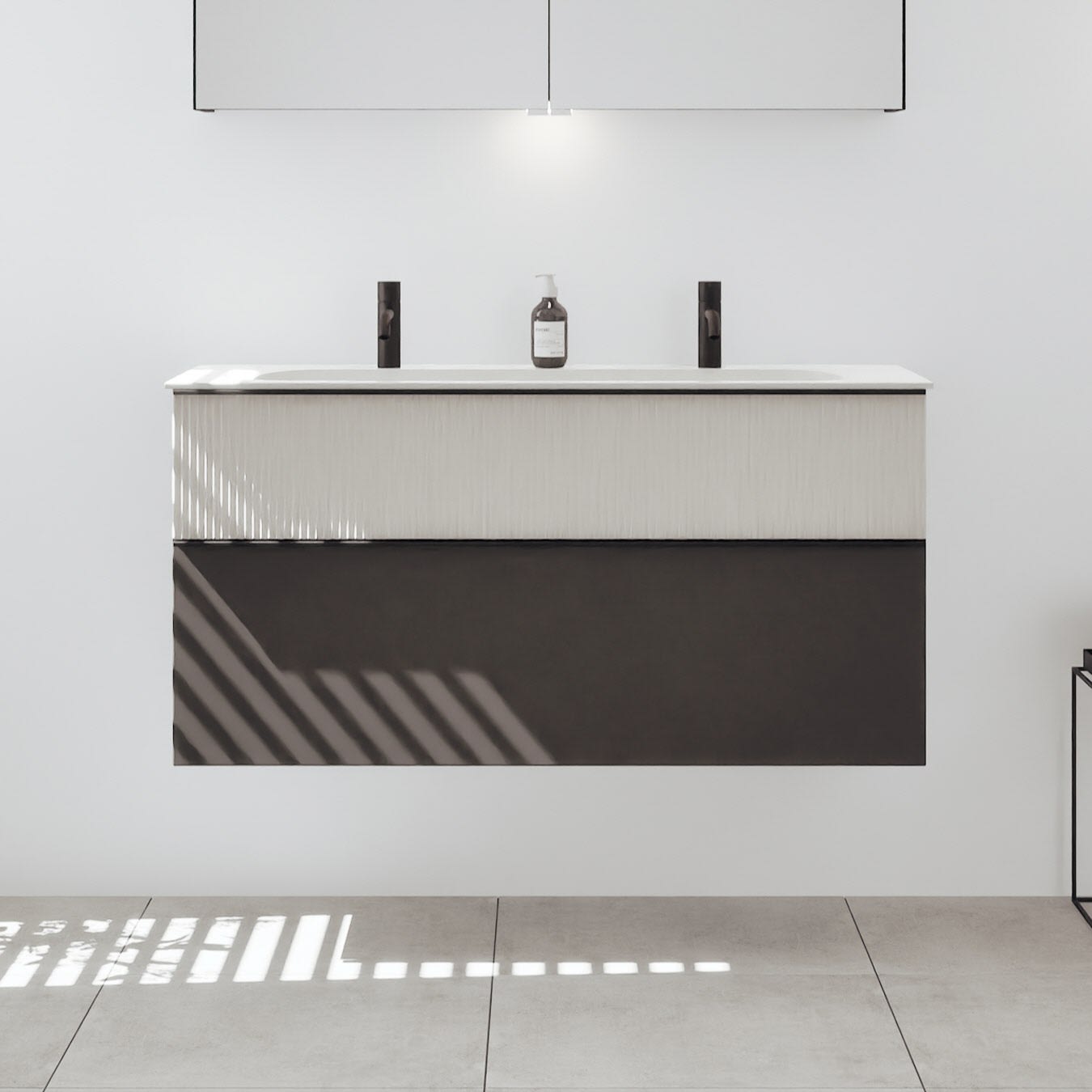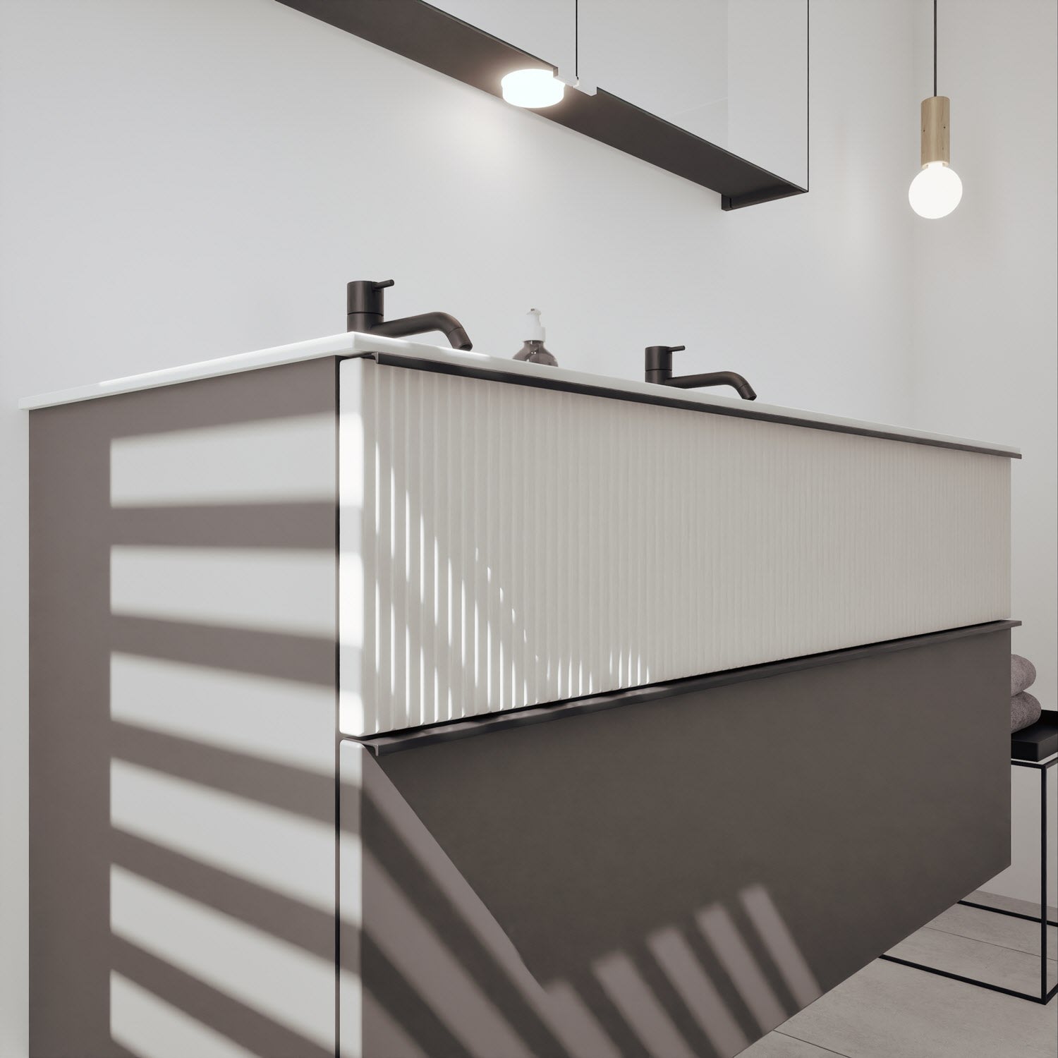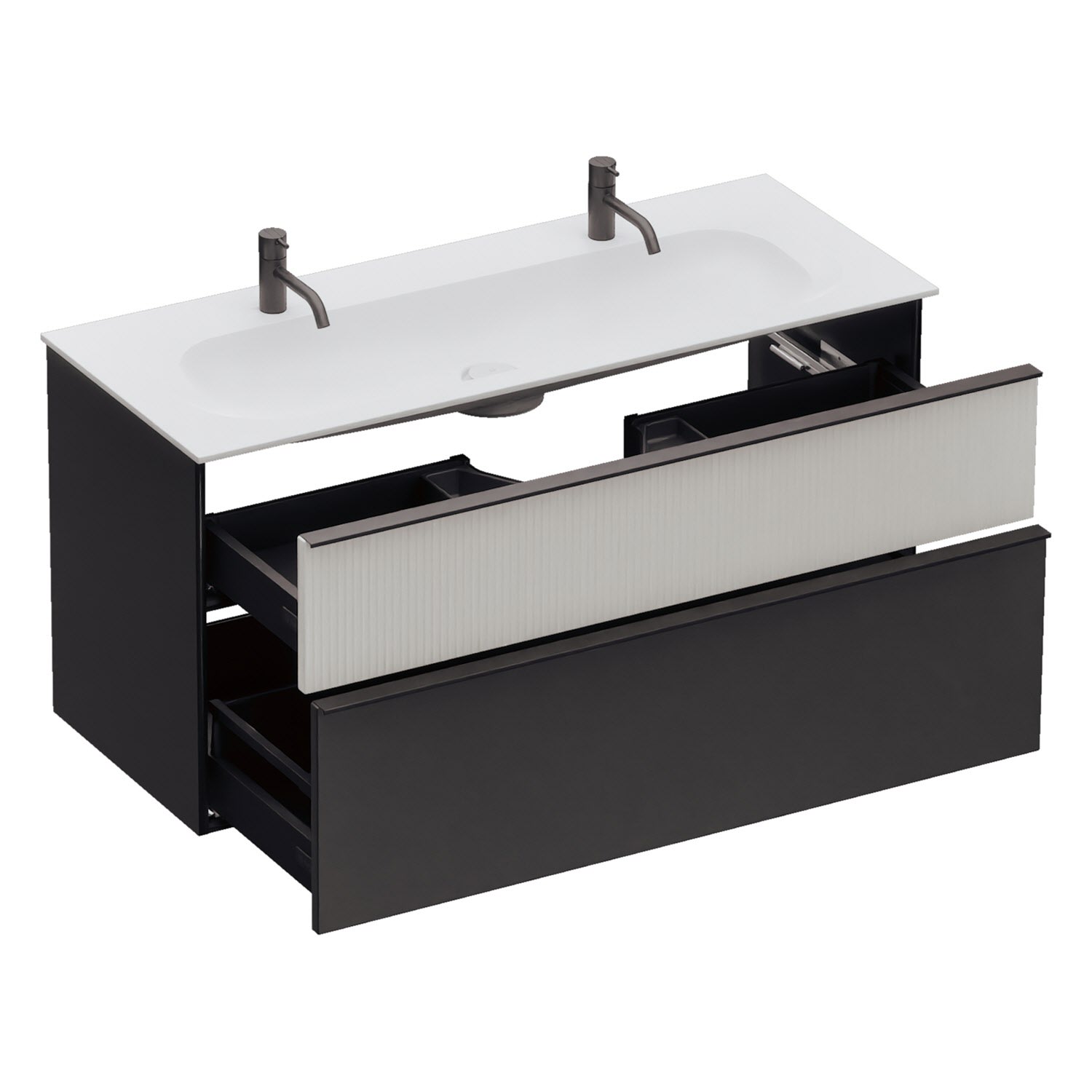 burgbad Fiumo 2.0 Mineralguss-Waschtisch mit Waschtischunterschrank 122 cm, mit Griff G0200