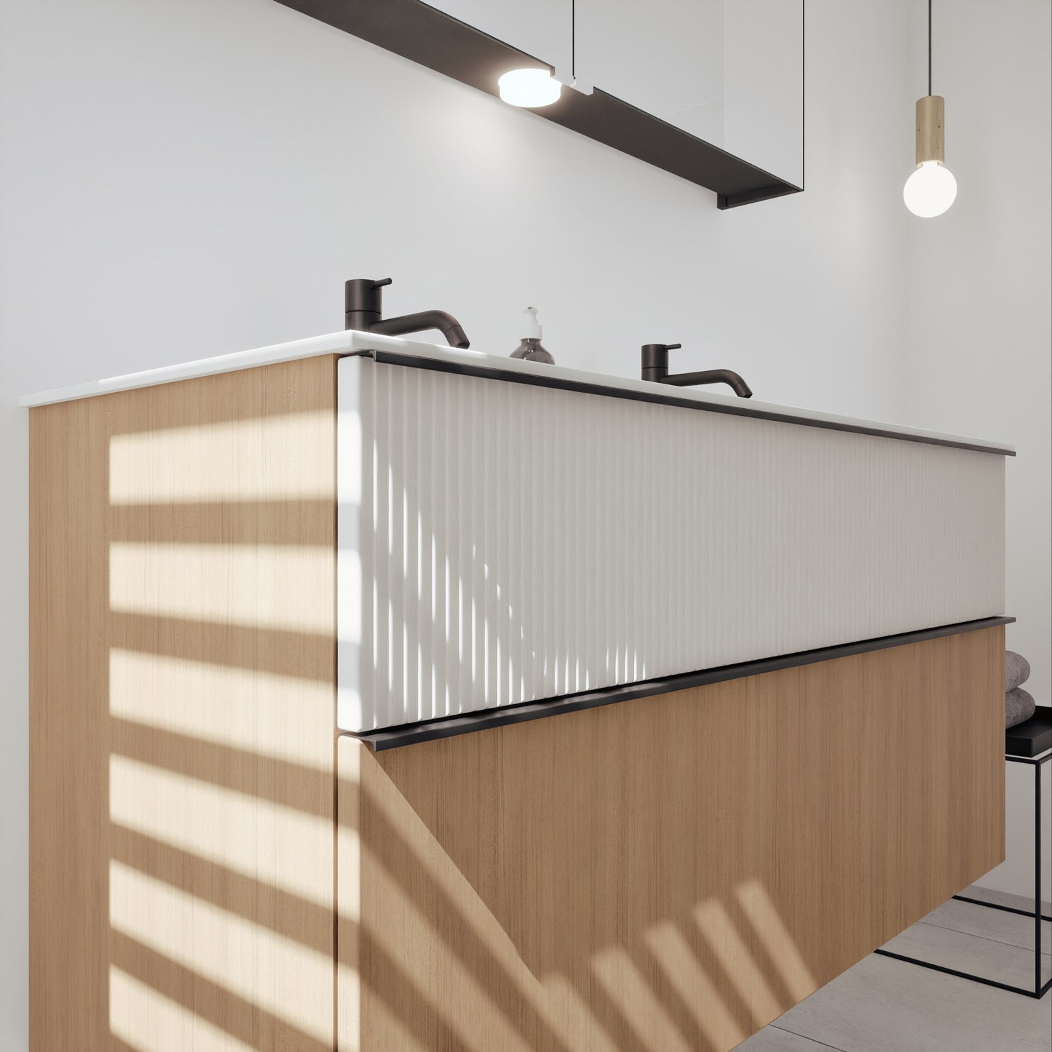 burgbad Fiumo 2.0 Mineralguss-Waschtisch mit Waschtischunterschrank 122 cm, mit Griff G0200