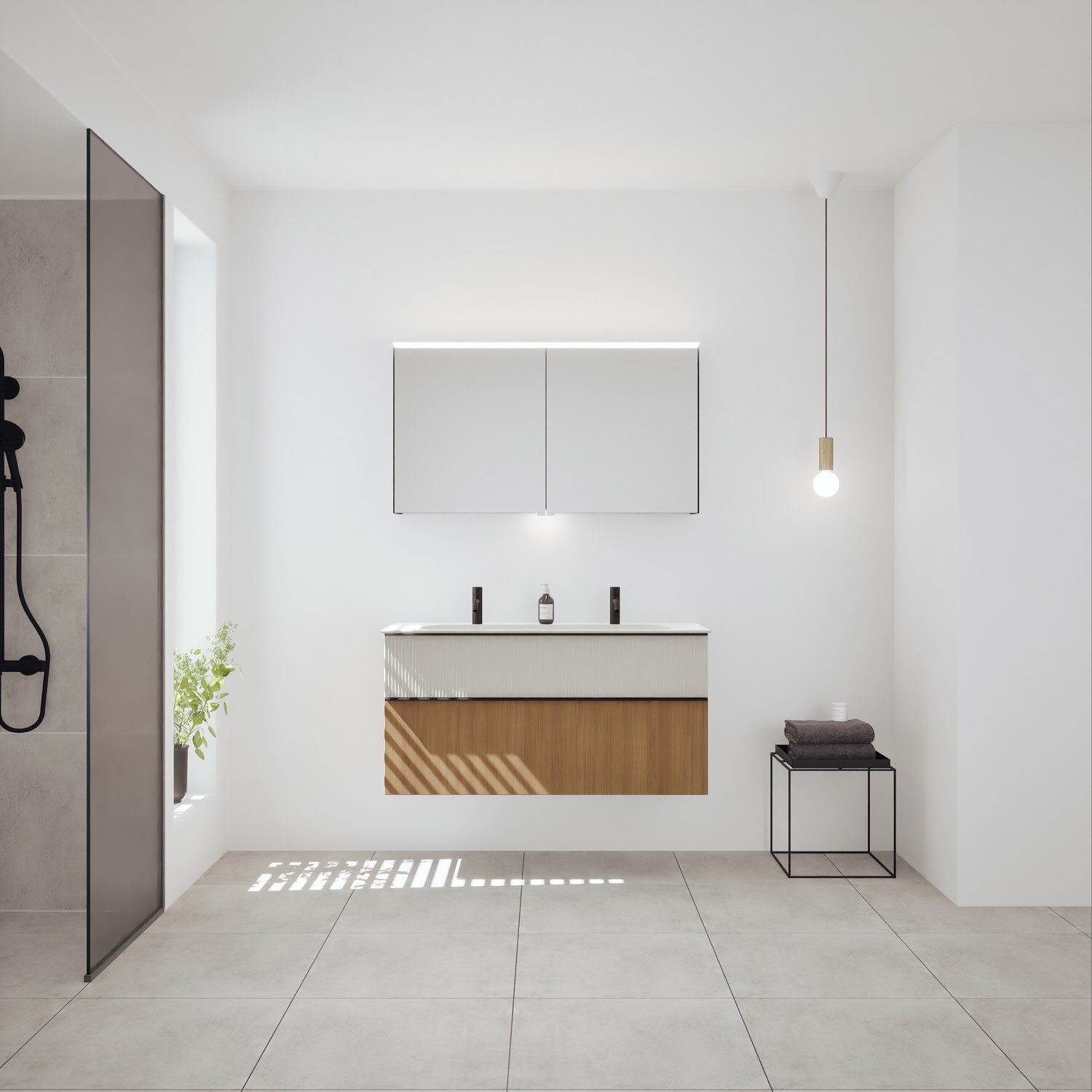 burgbad Fiumo 2.0 Spiegelschrank 120,6 cm mit LED-Aufsatzleuchte und Waschplatzbeleuchtung, 2 Spiegeltüren