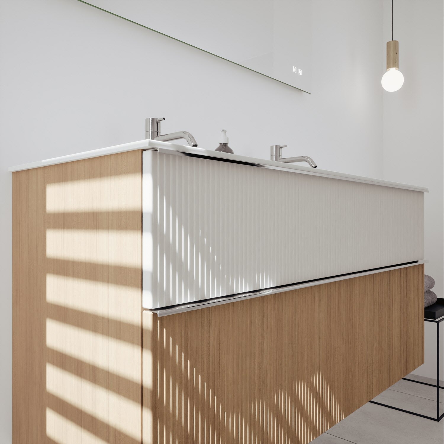 burgbad Fiumo 2.0 Spiegelschrank 120,6 cm mit LED-Aufsatzleuchte und Waschplatzbeleuchtung, 2 Spiegeltüren