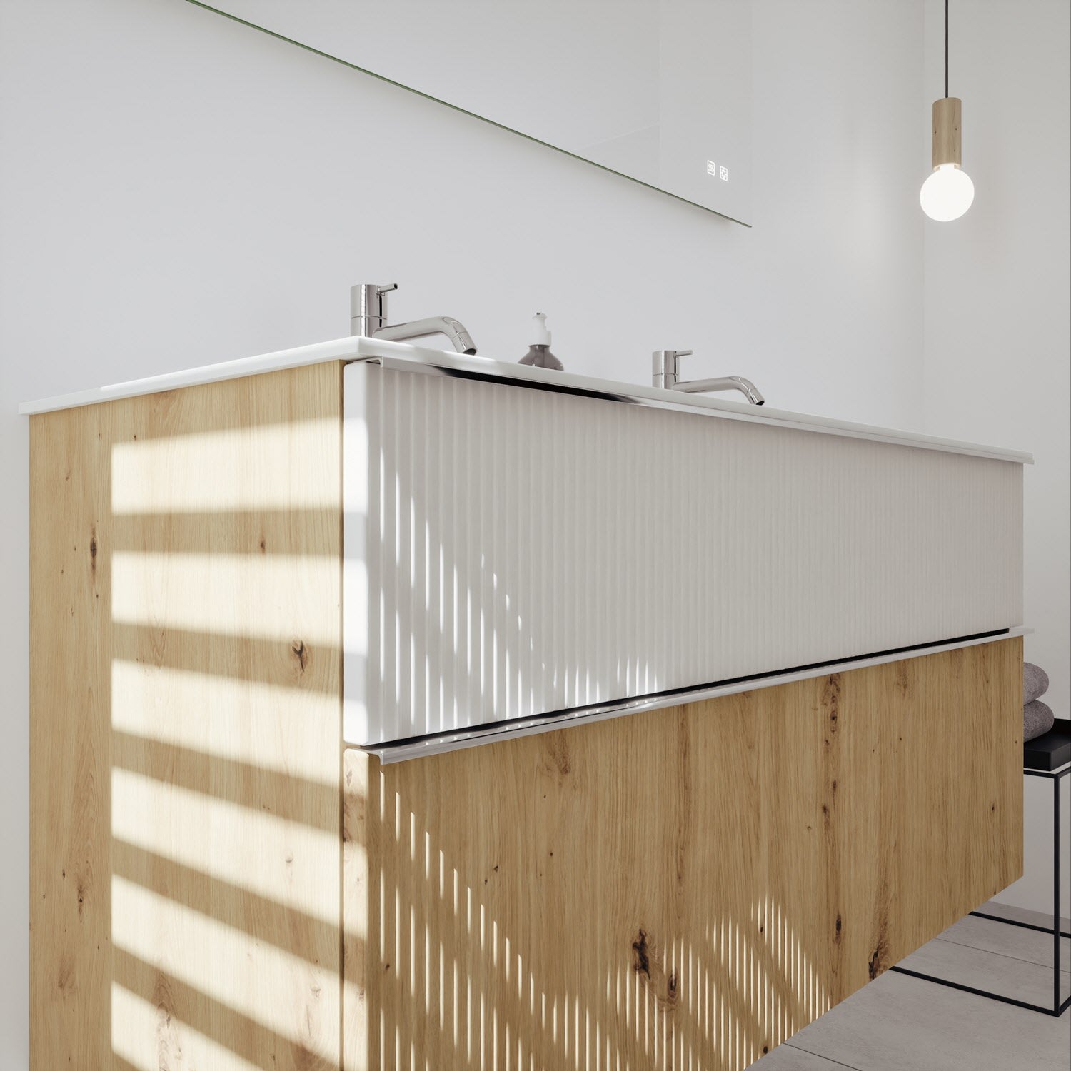 burgbad Fiumo 2.0 Spiegelschrank 120,6 cm mit LED-Aufsatzleuchte und Waschplatzbeleuchtung, 2 Spiegeltüren