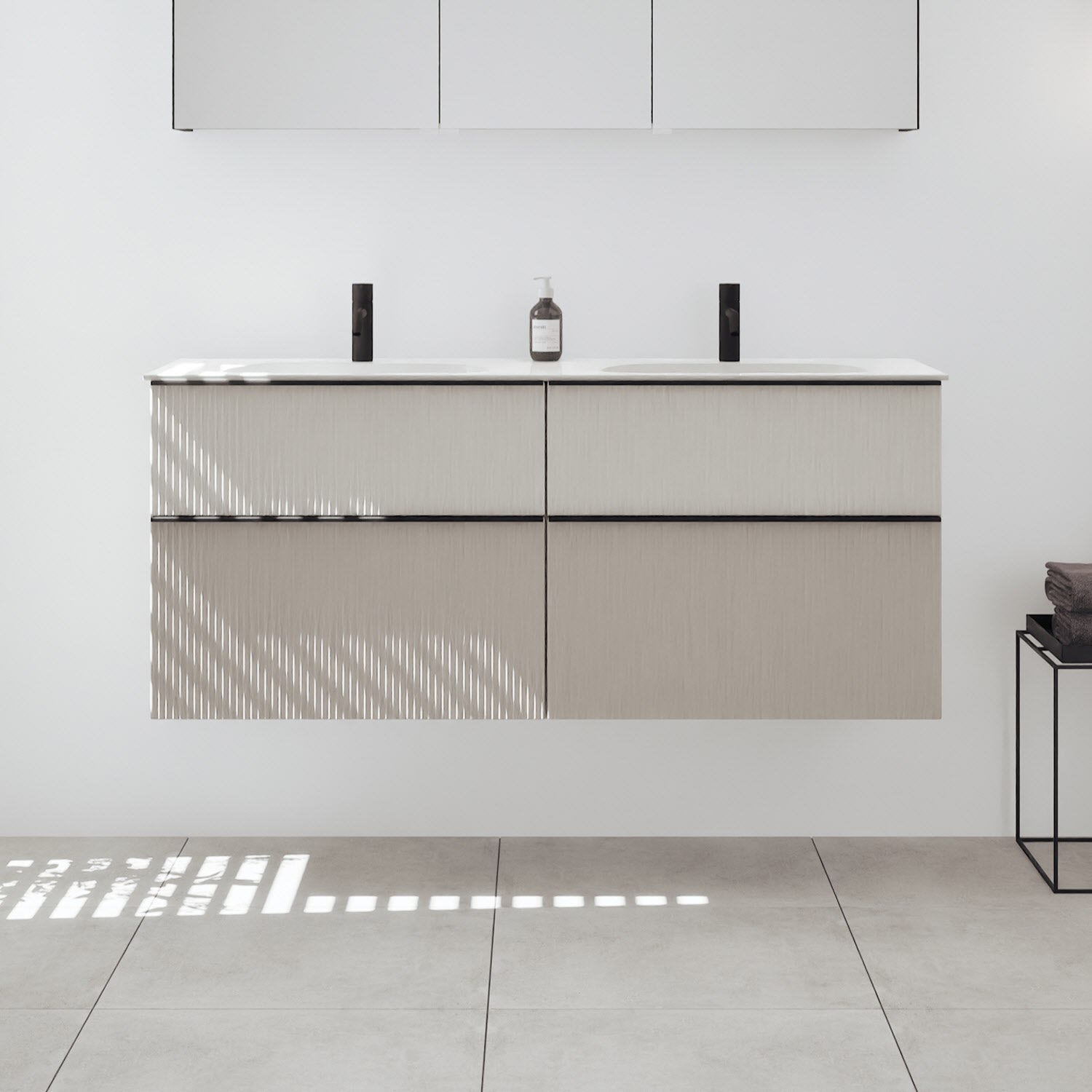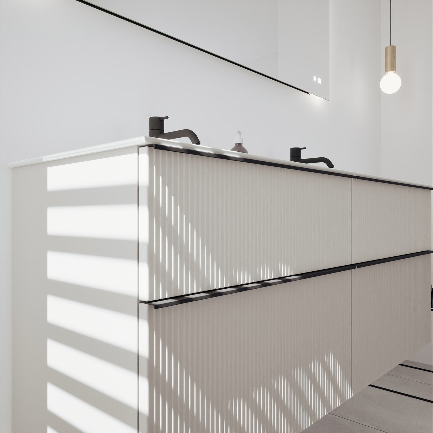 burgbad Fiumo 2.0 Mineralguss-Waschtisch mit Waschtischunterschrank 142 cm, mit Griff G0200