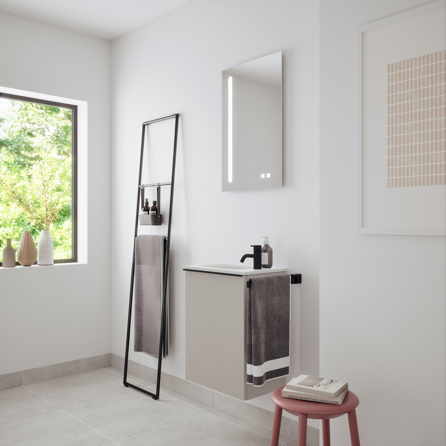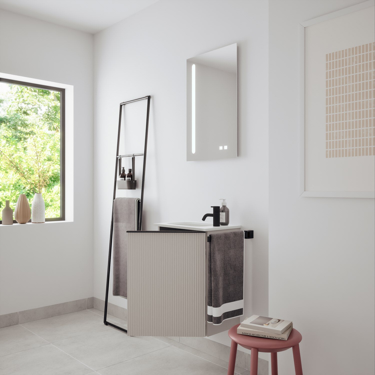 burgbad Fiumo 2.0 Mineralguss-Waschtisch mit Waschtischunterschrank 47 cm, mit Griff G0200