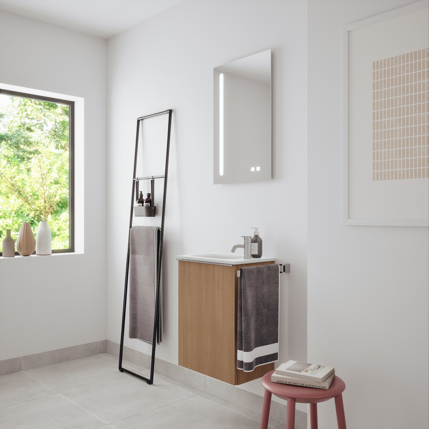 burgbad Fiumo 2.0 Mineralguss-Waschtisch mit Waschtischunterschrank 47 cm, mit Griff G0146