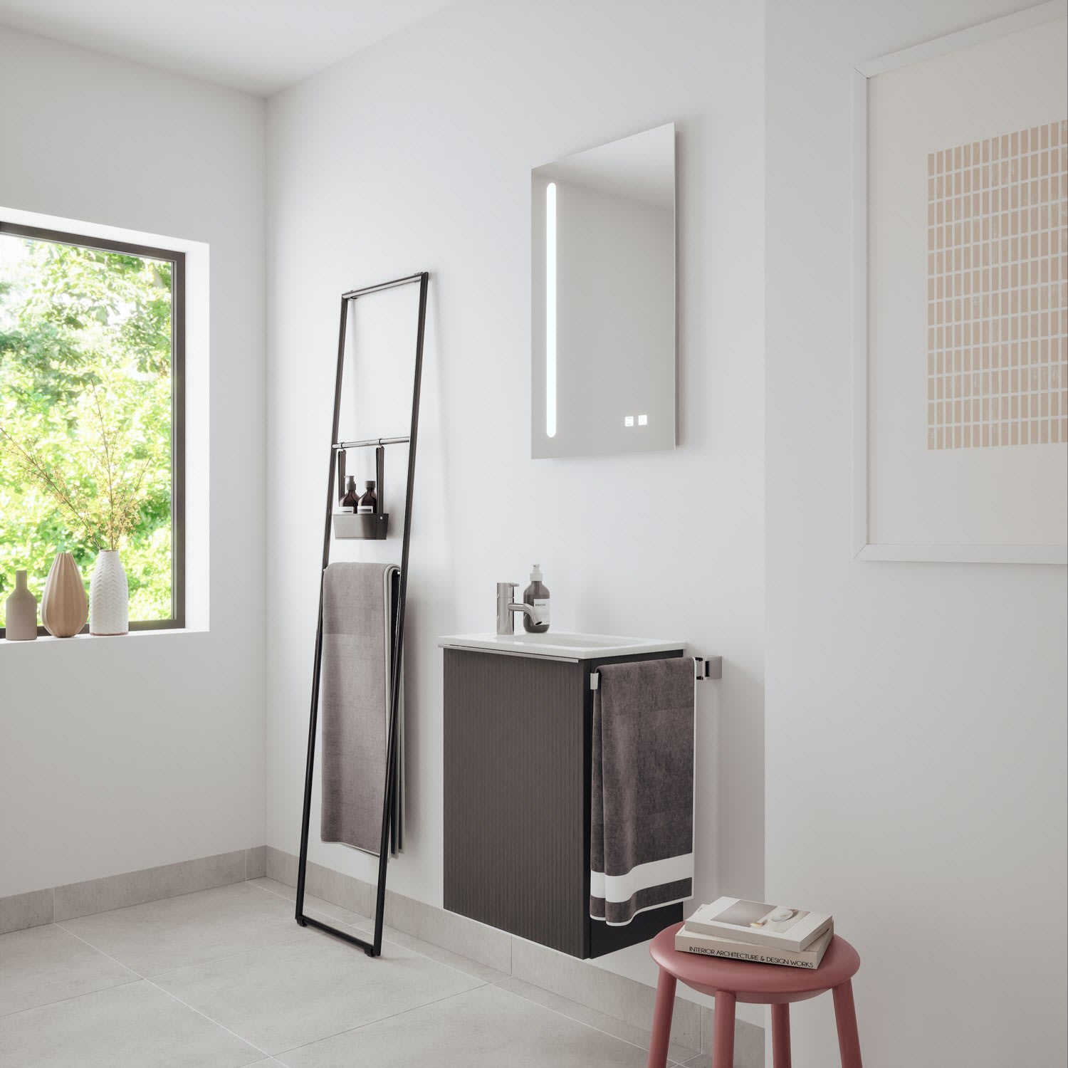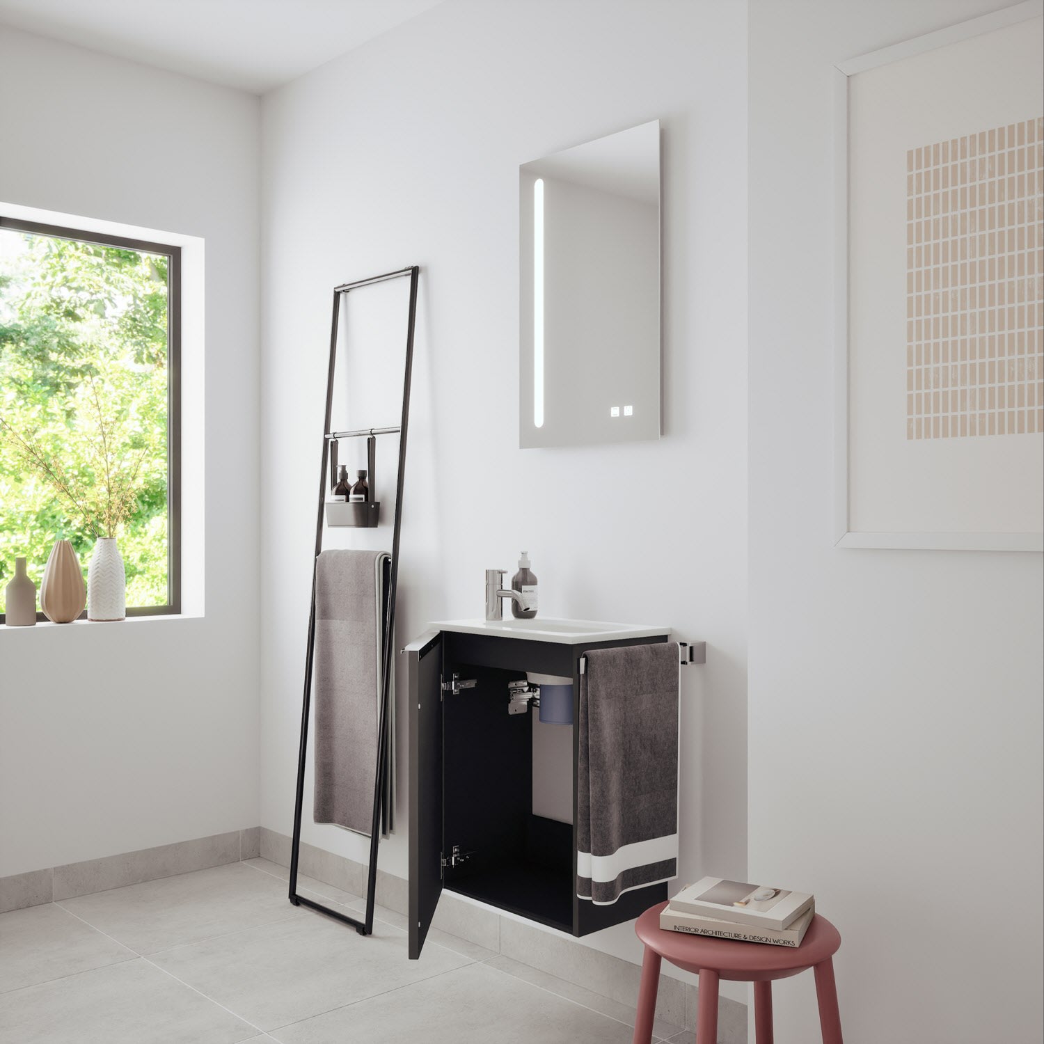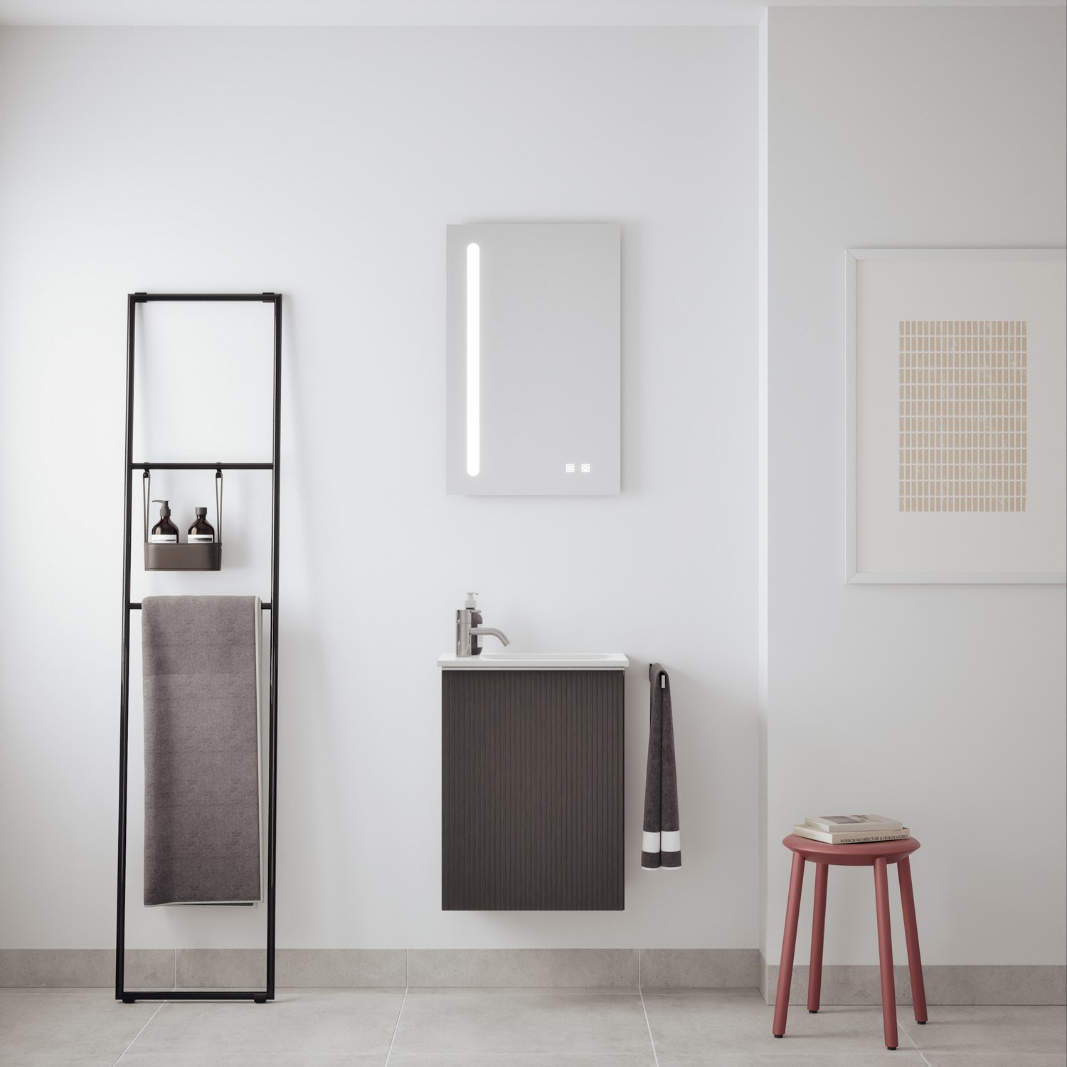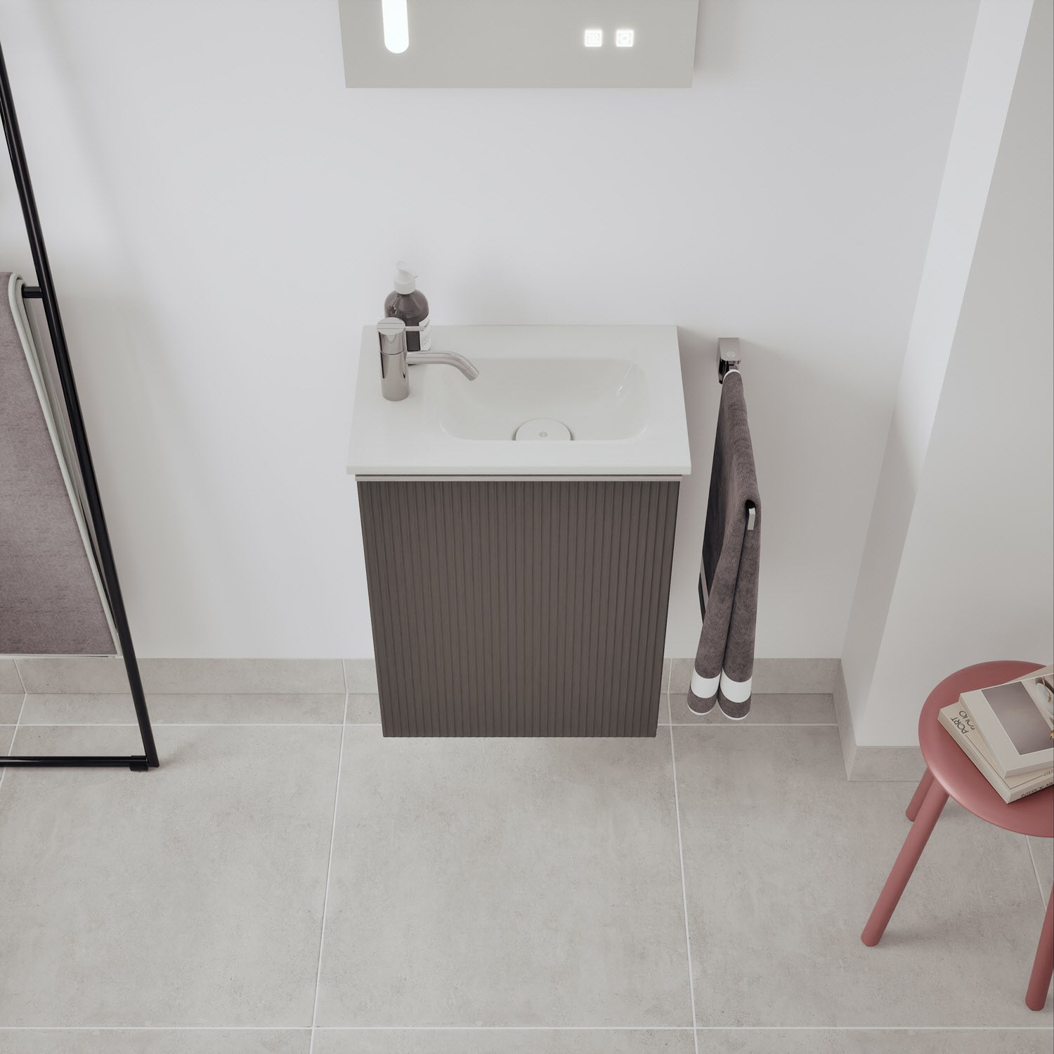 burgbad Fiumo 2.0 Mineralguss-Waschtisch mit Waschtischunterschrank 47 cm, mit Griff G0146