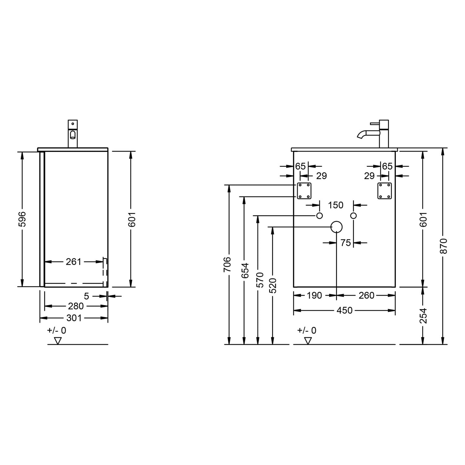 - Becken mit Hahnloch rechts oder links montierbar