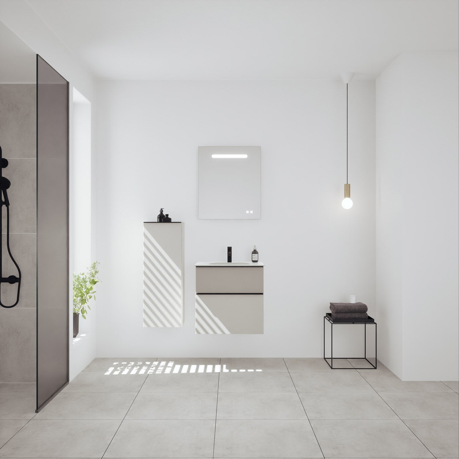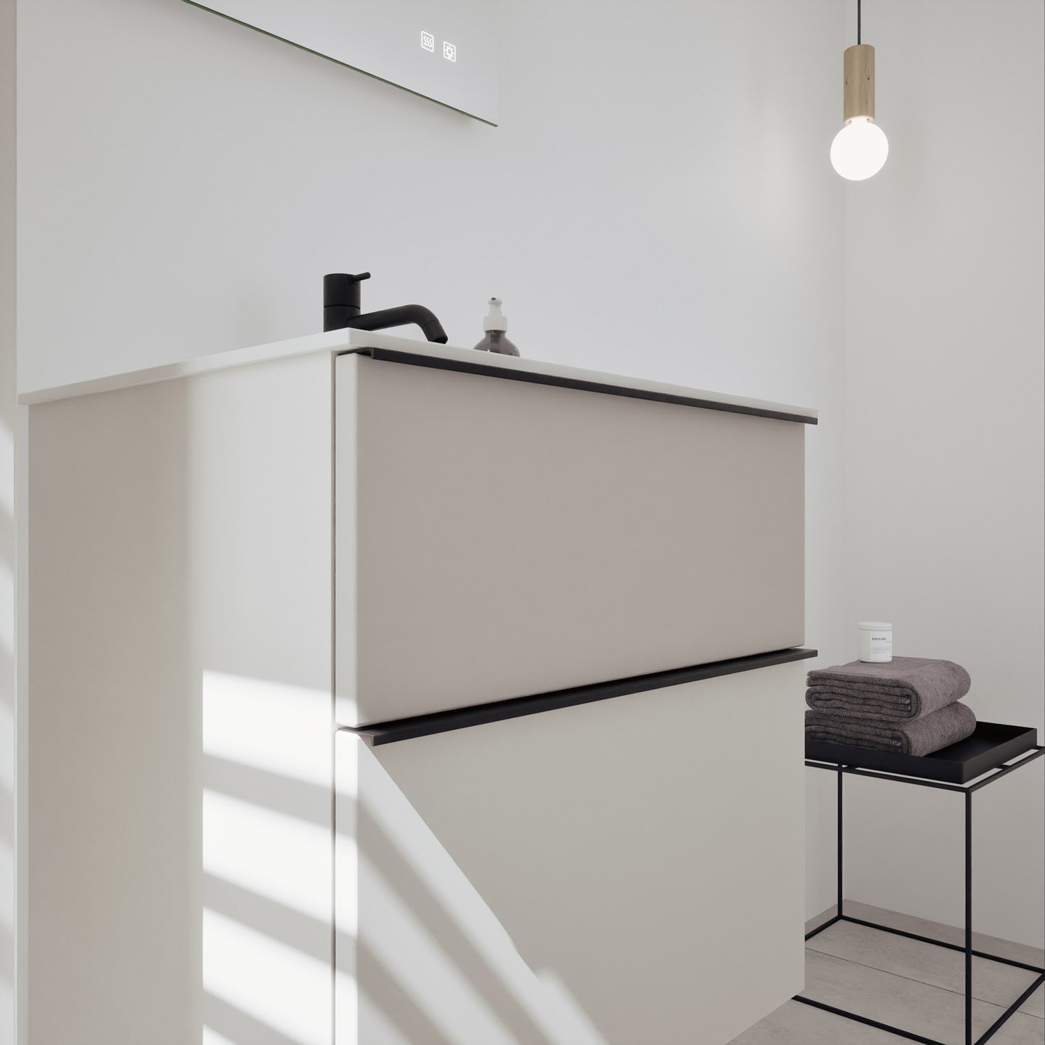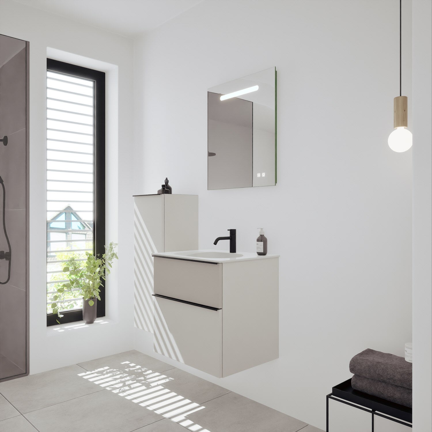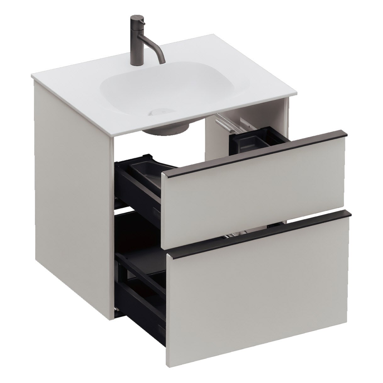 burgbad Fiumo 2.0 Mineralguss-Waschtisch mit Waschtischunterschrank 62 cm, mit Griff G0200