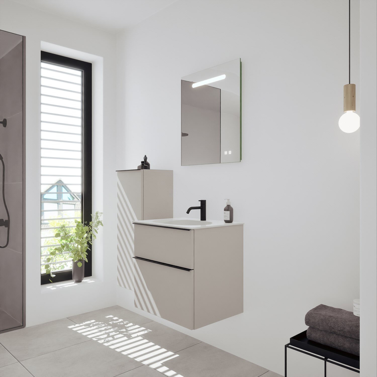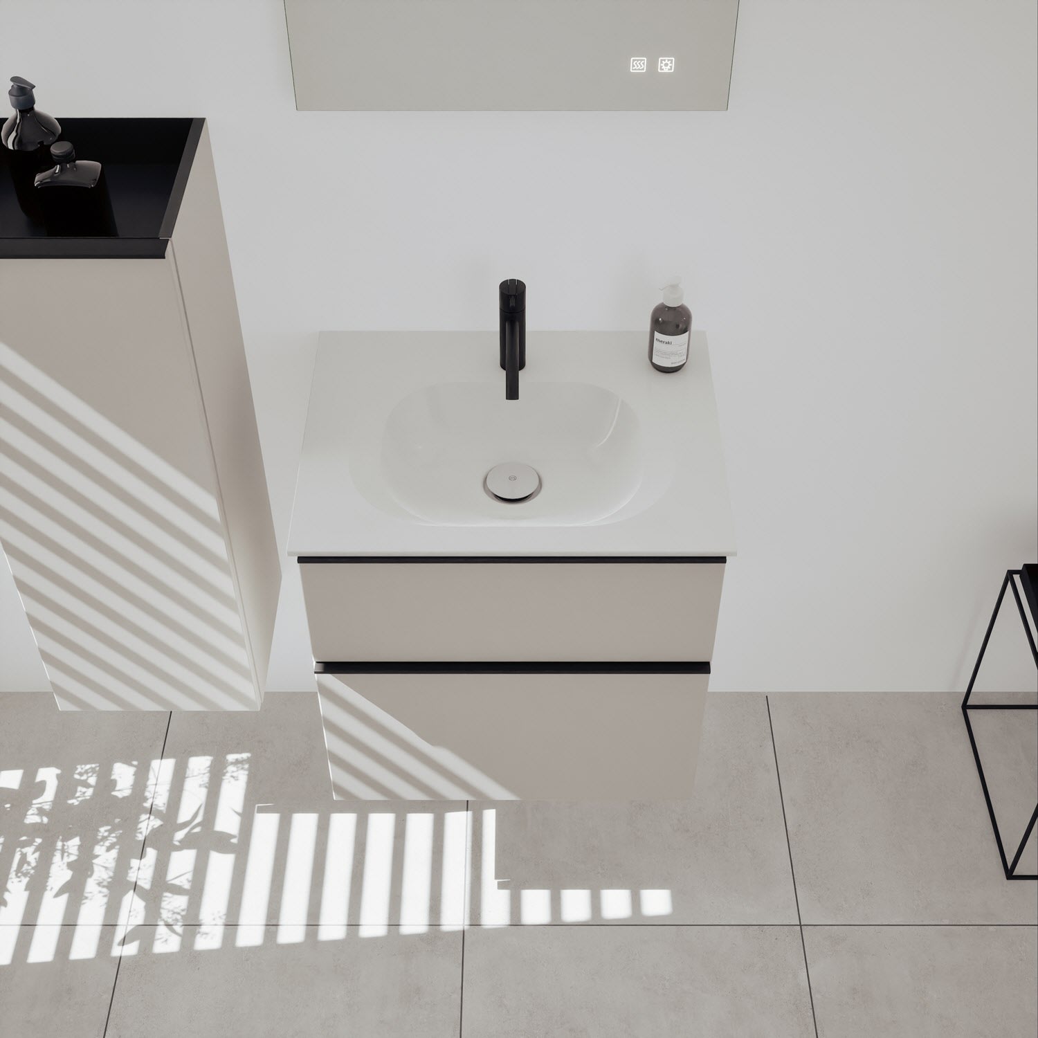 burgbad Fiumo 2.0 Mineralguss-Waschtisch mit Waschtischunterschrank 62 cm, mit Griff G0200