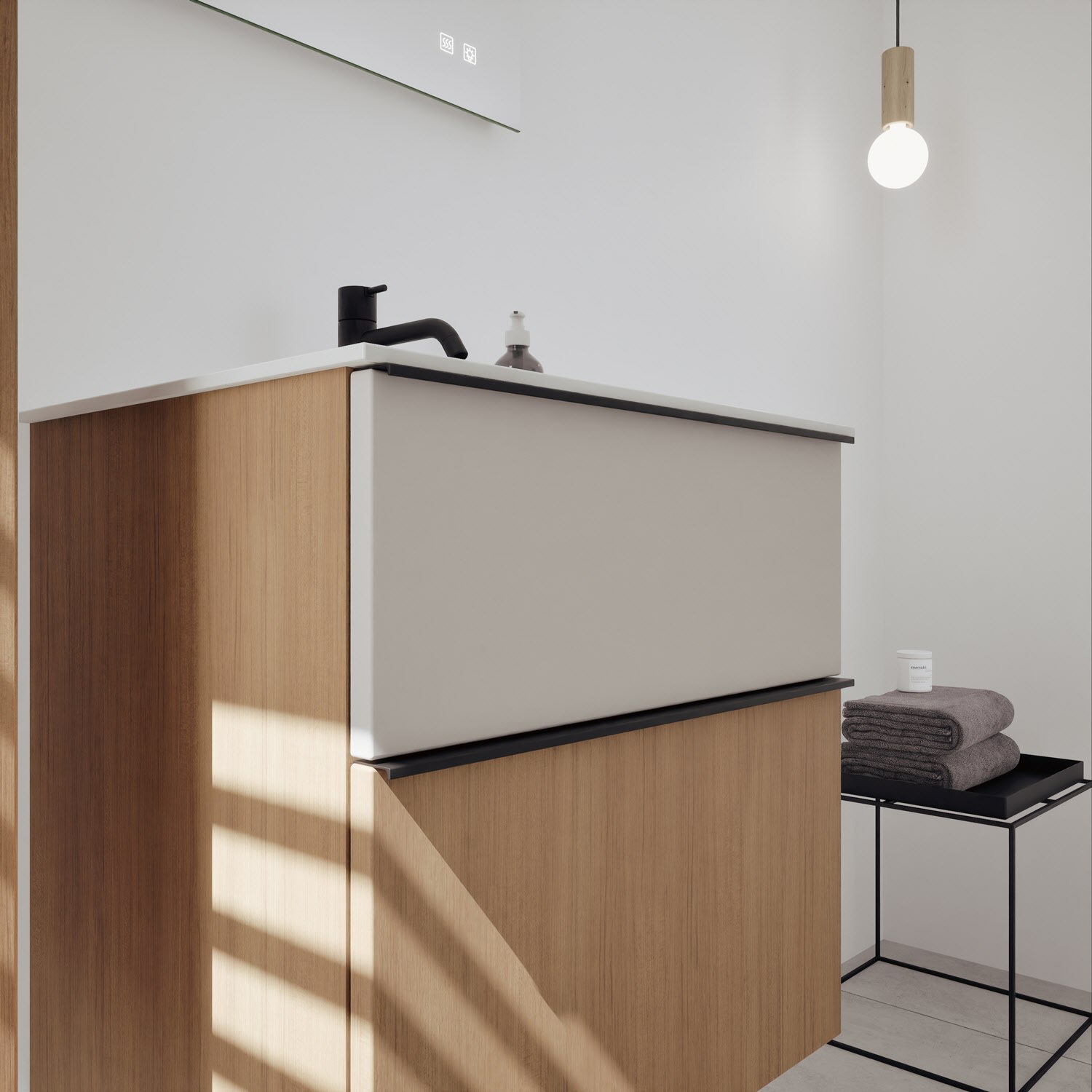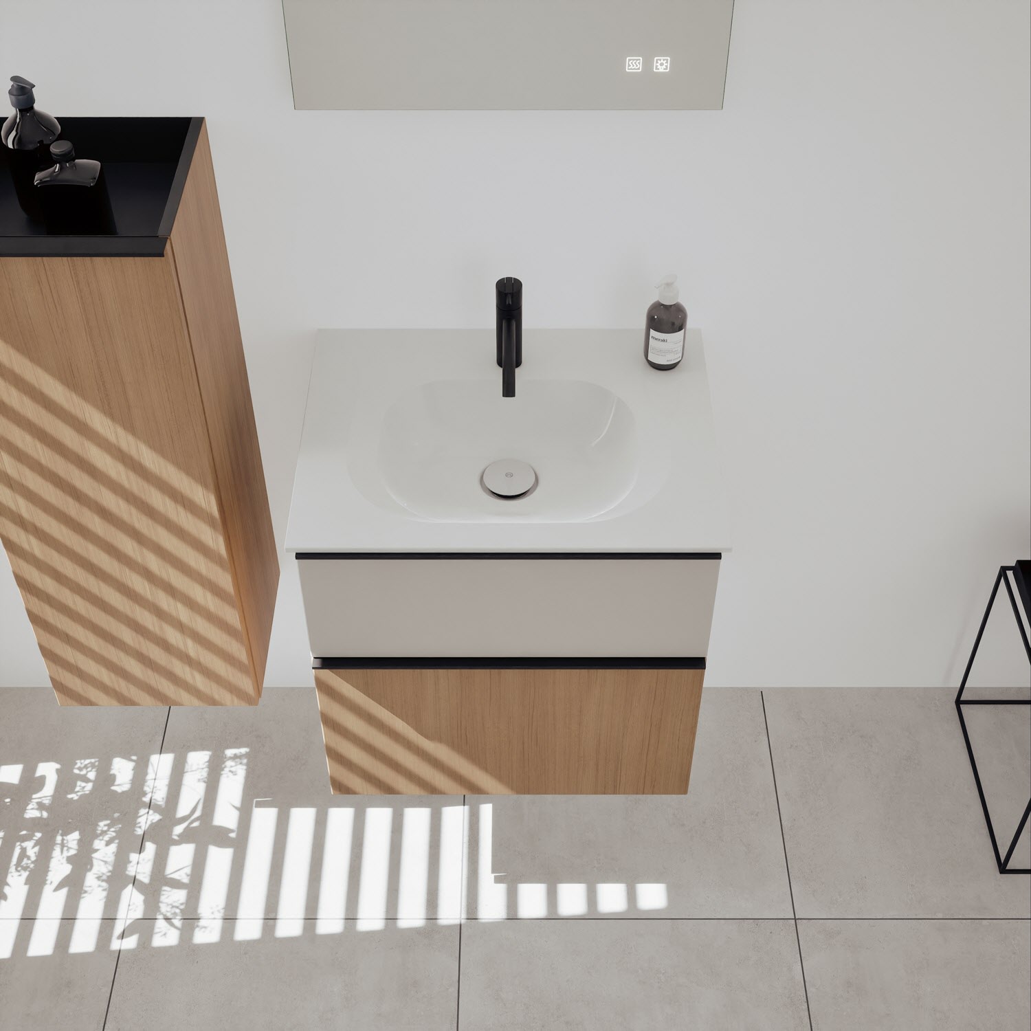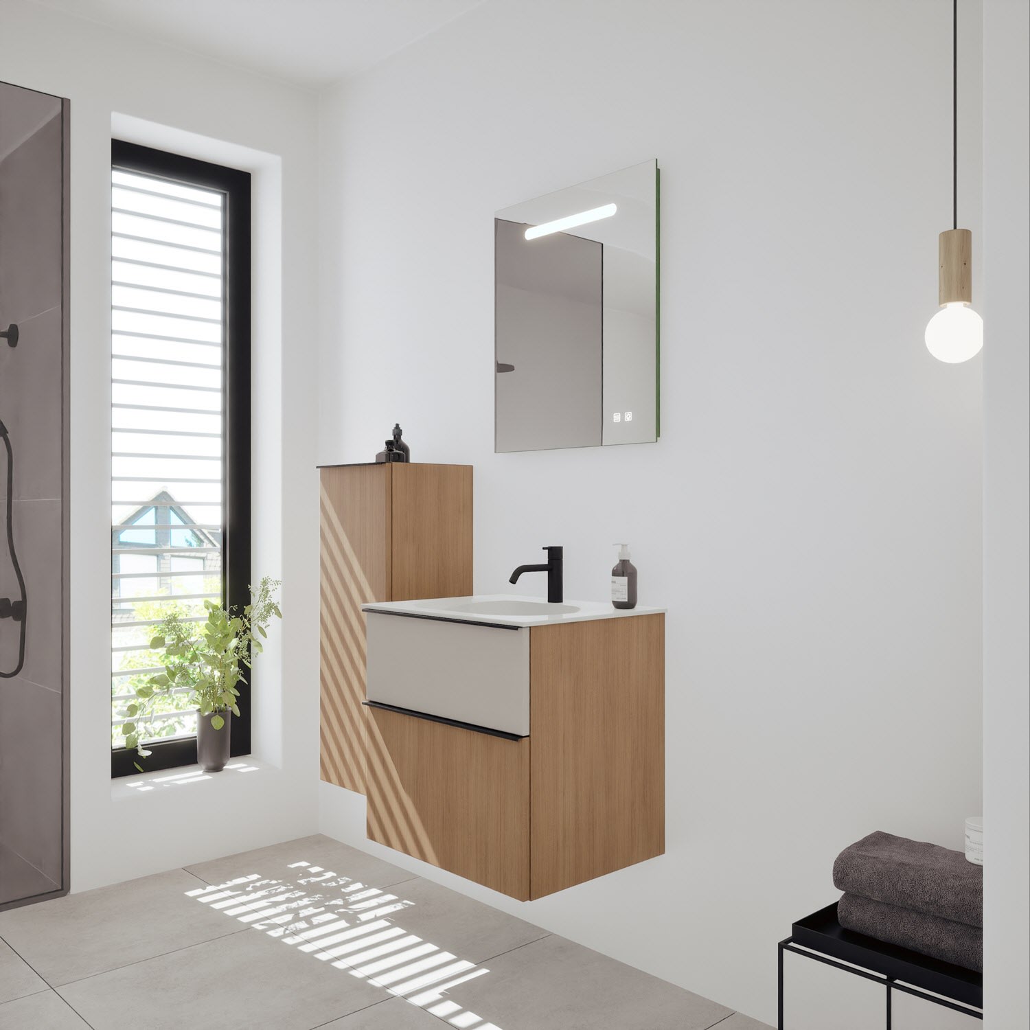 burgbad Fiumo 2.0 Mineralguss-Waschtisch mit Waschtischunterschrank 62 cm, mit Griff G0200