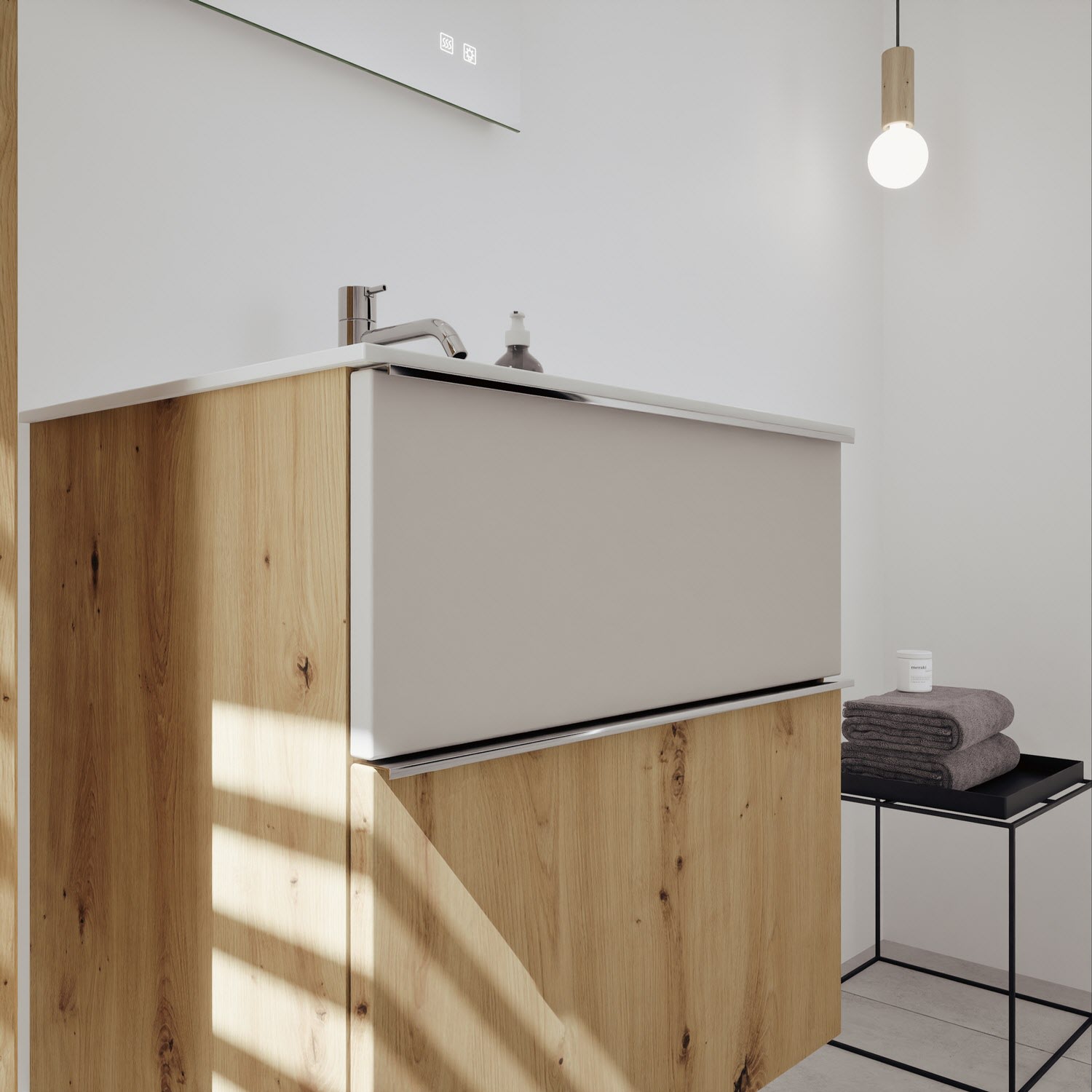 burgbad Fiumo 2.0 Mineralguss-Waschtisch mit Waschtischunterschrank 62 cm, mit Griff G0146