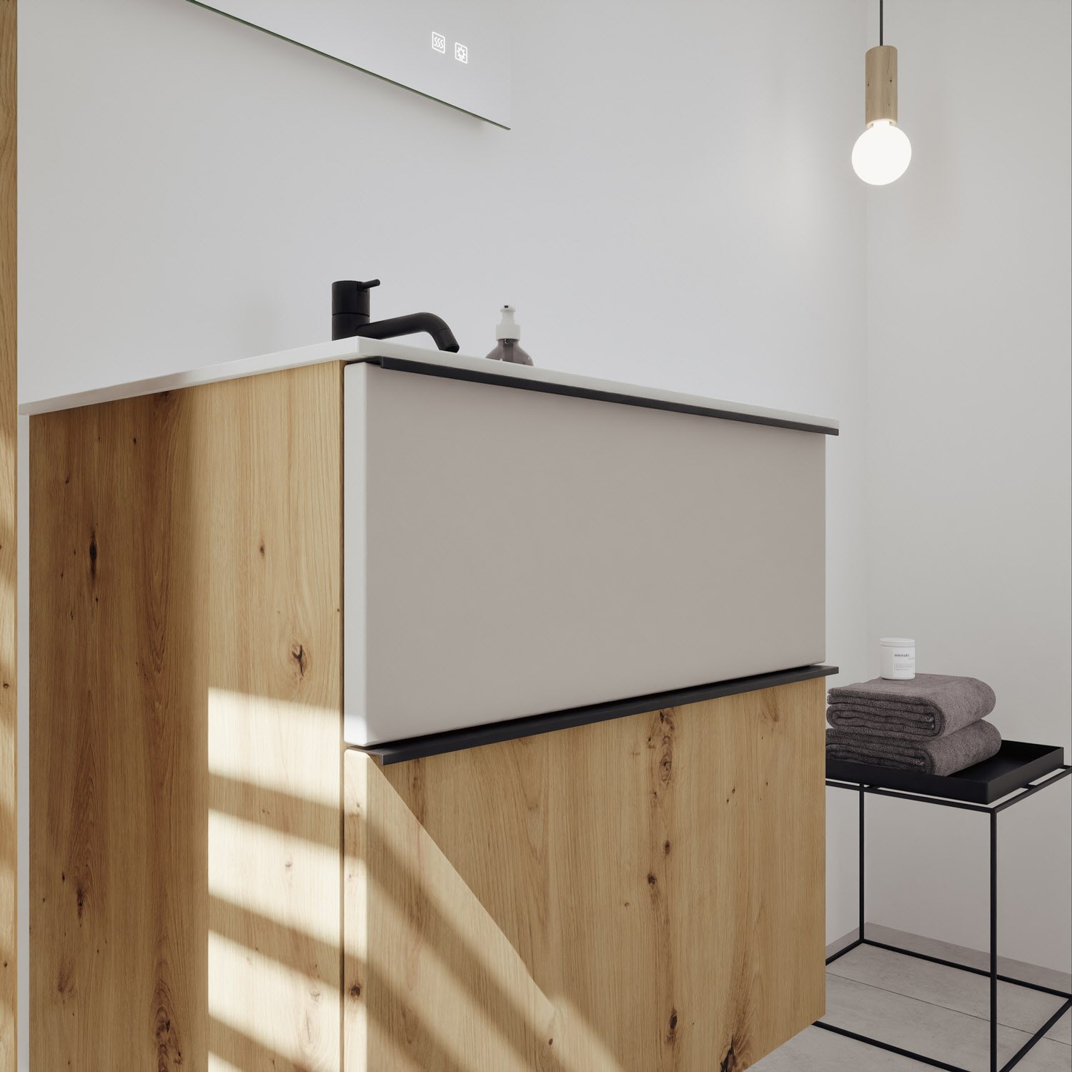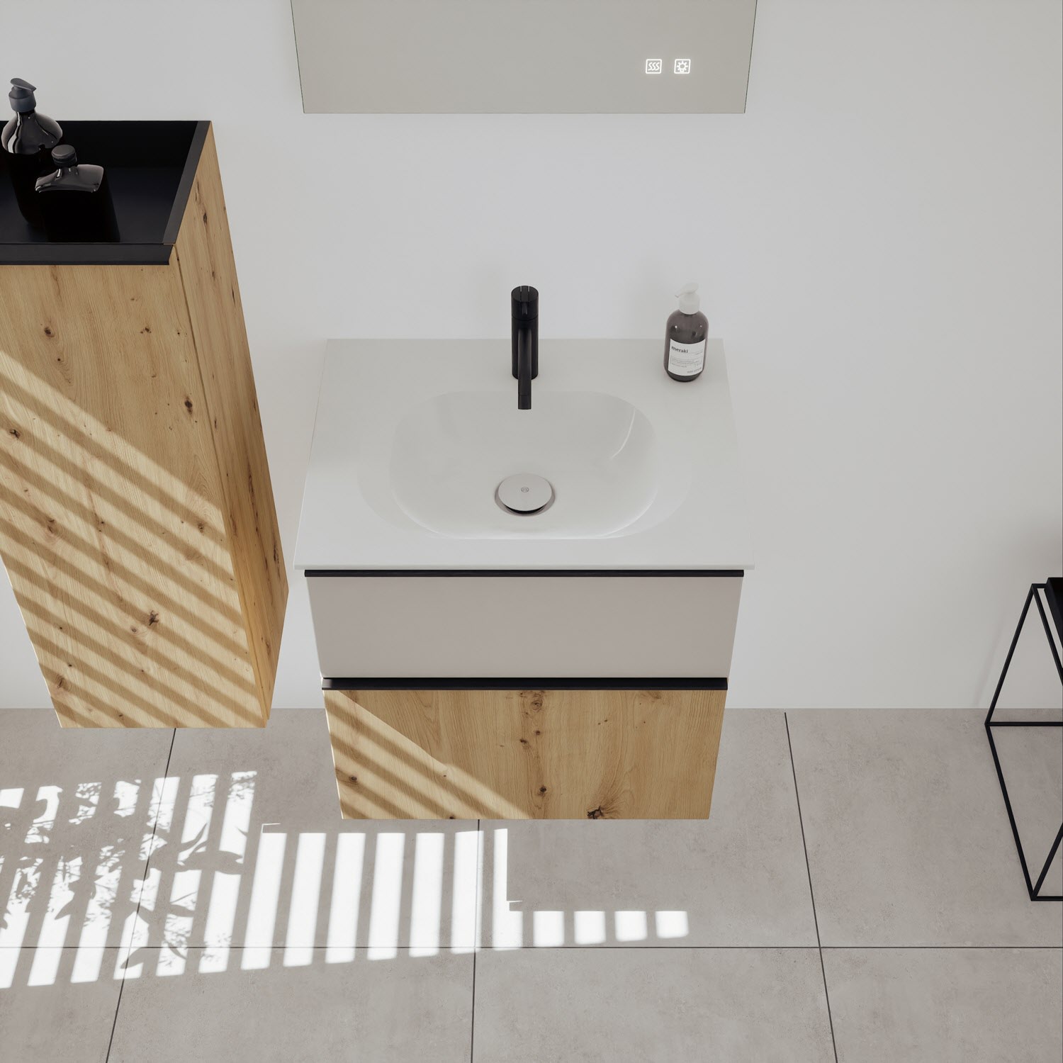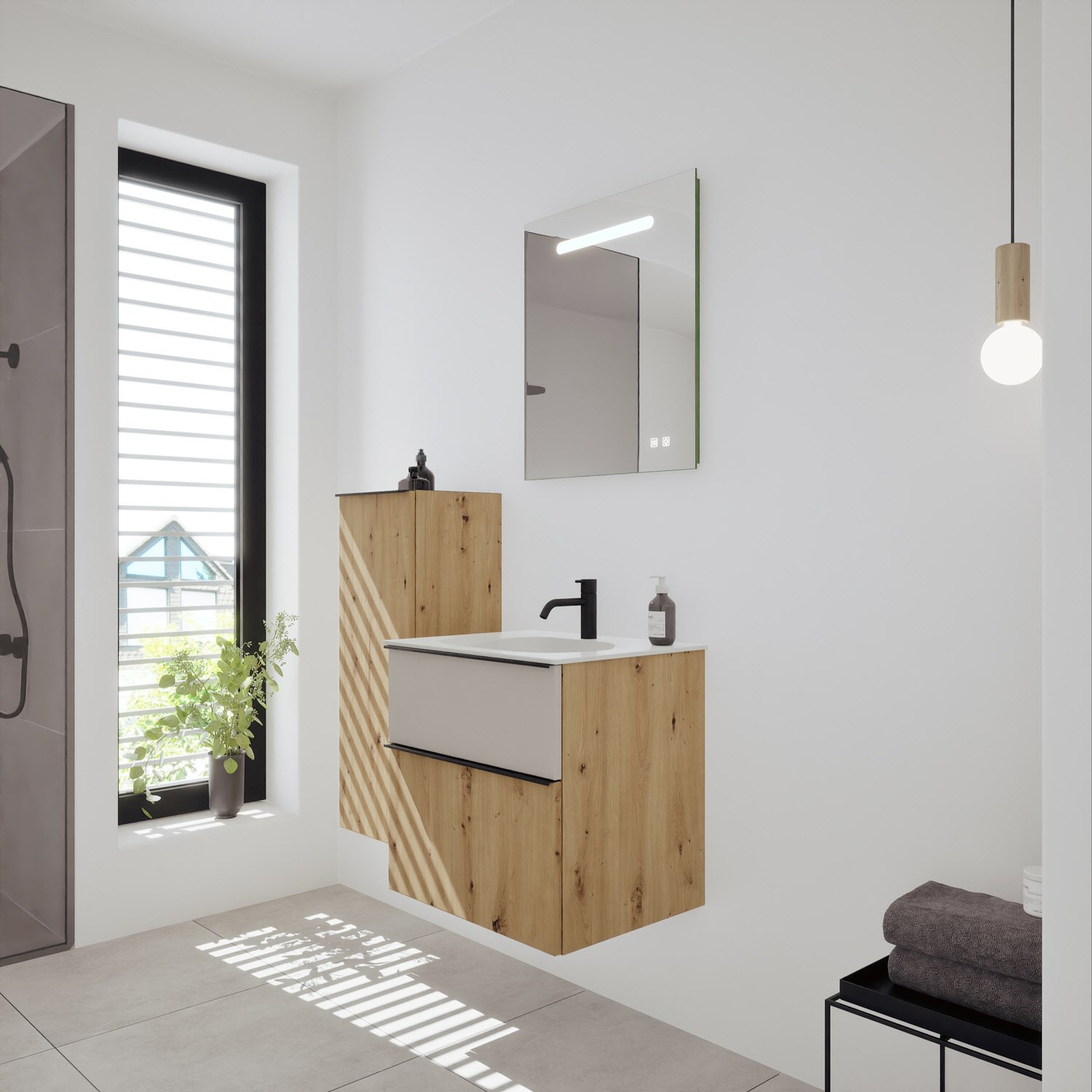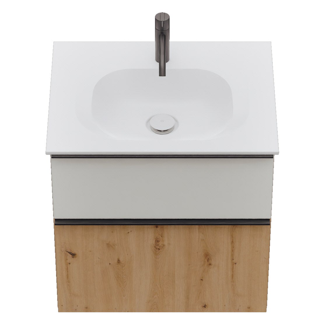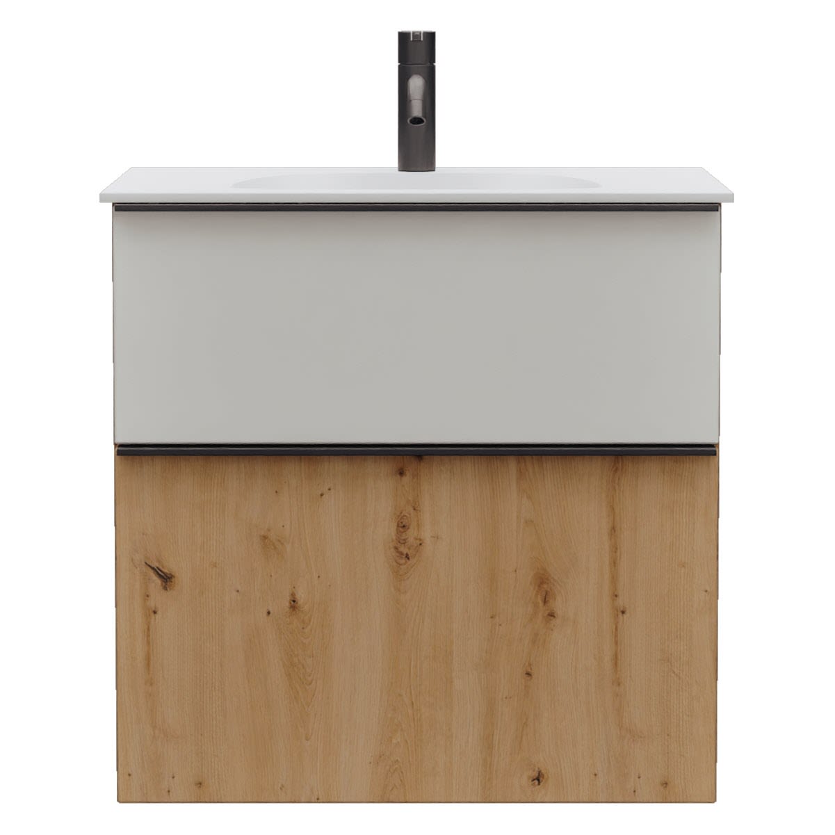 burgbad Fiumo 2.0 Mineralguss-Waschtisch mit Waschtischunterschrank 62 cm, mit Griff G0200