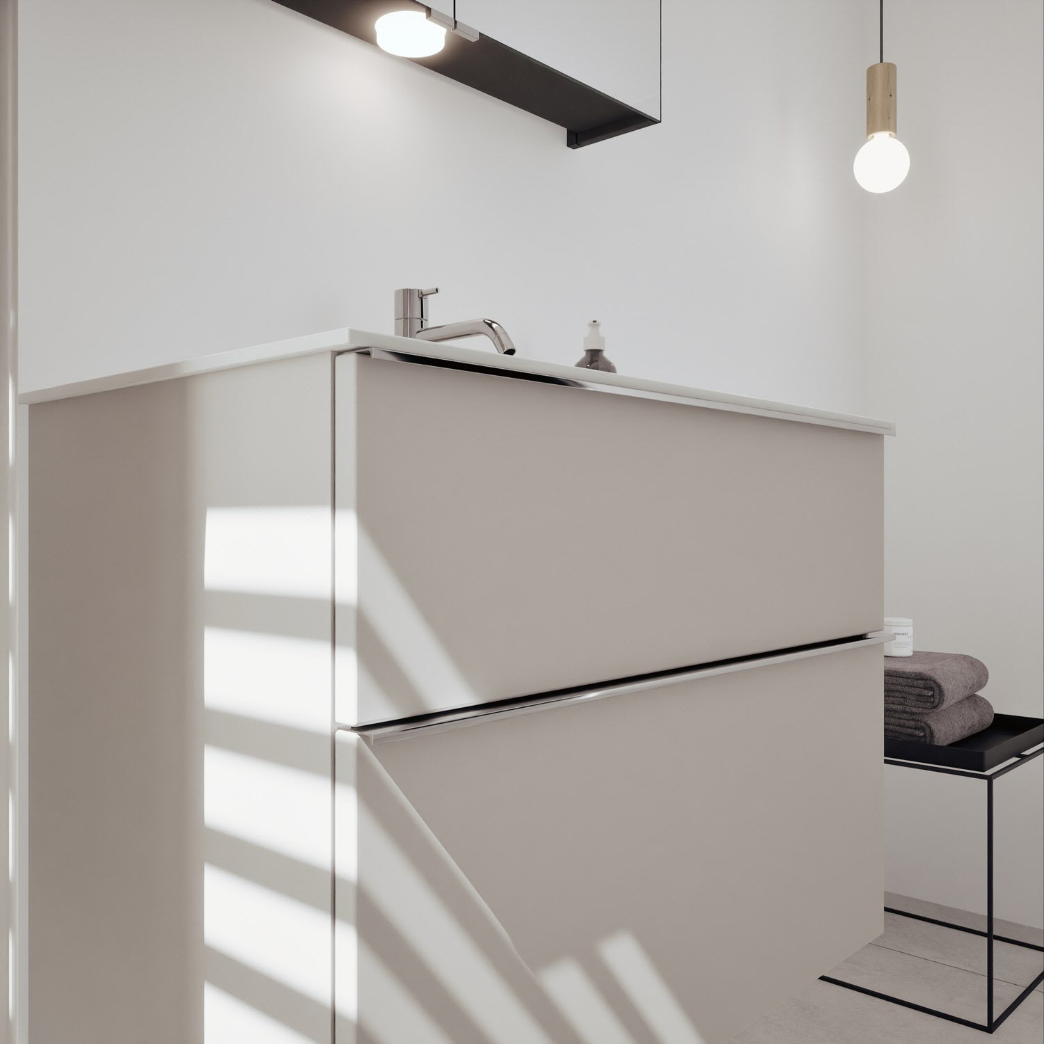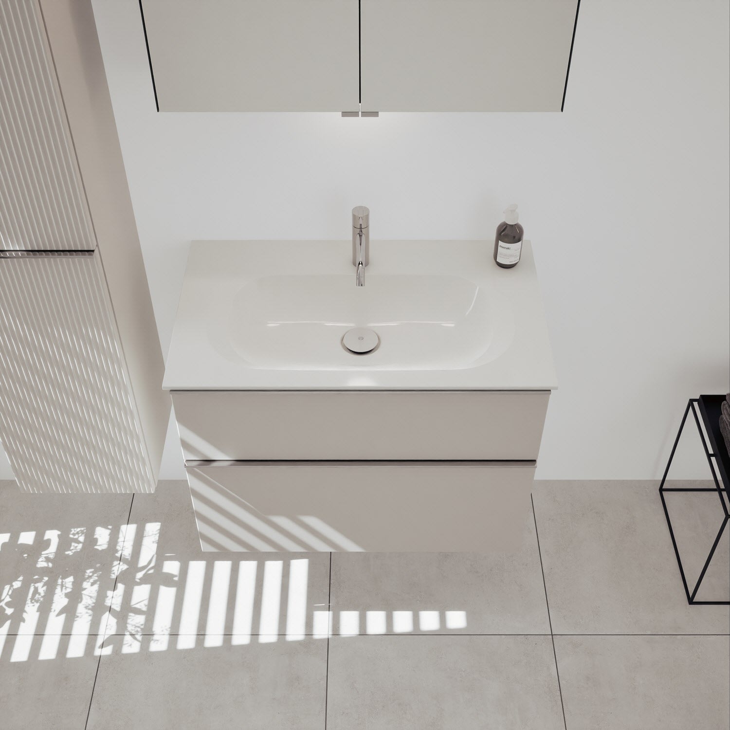 burgbad Fiumo 2.0 Mineralguss-Waschtisch mit Waschtischunterschrank 82 cm, mit Griff G0146