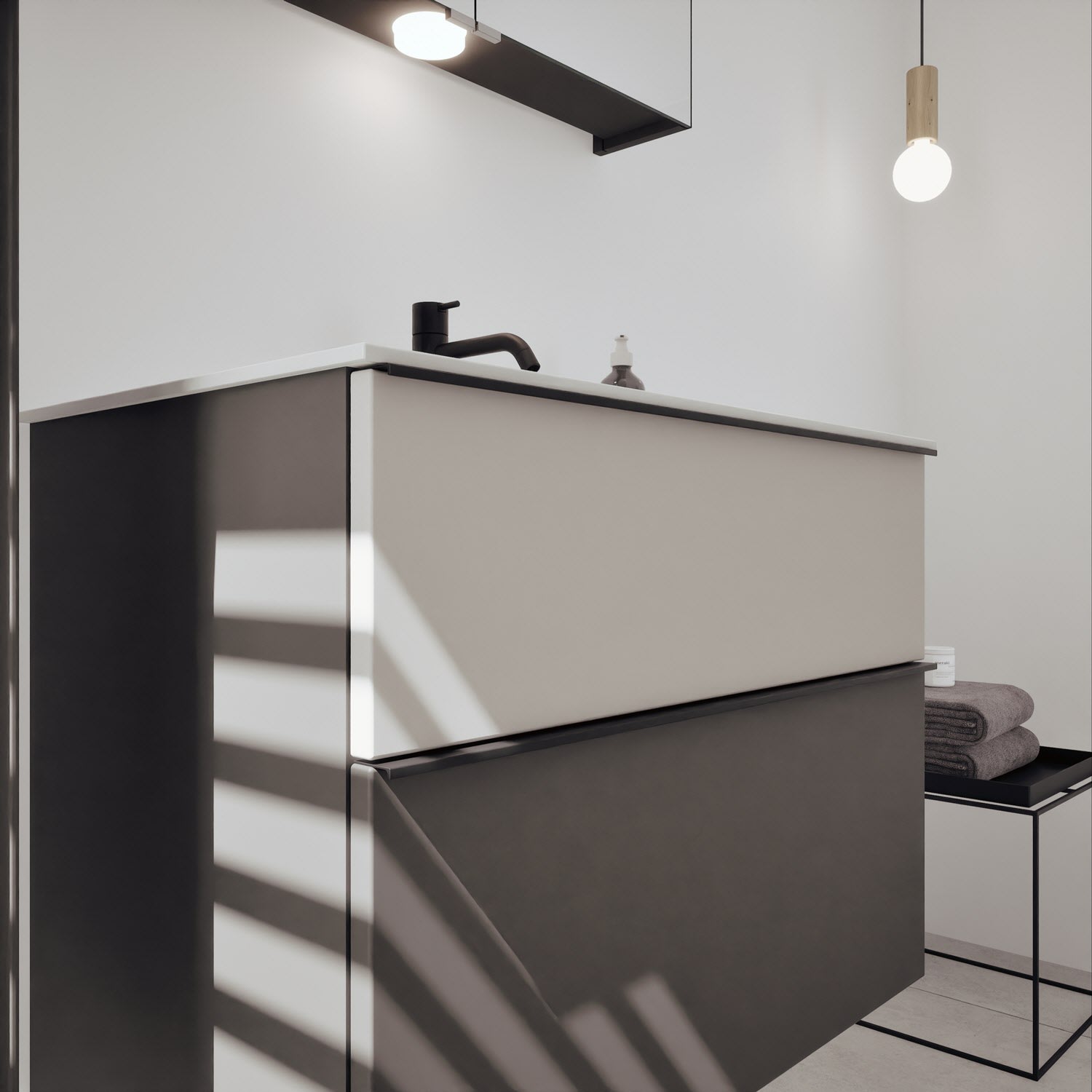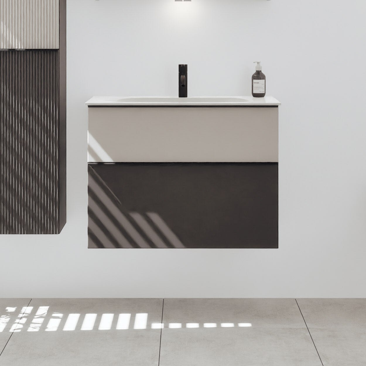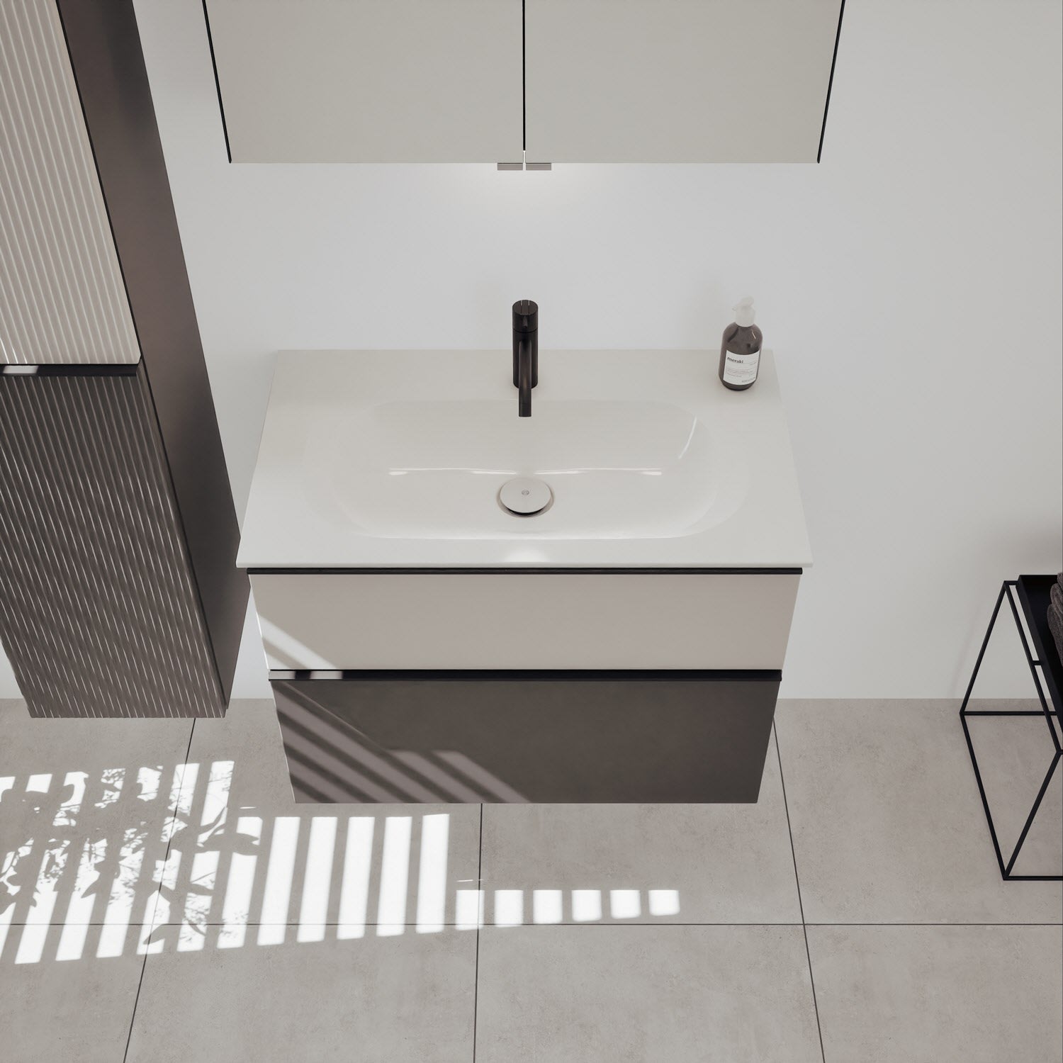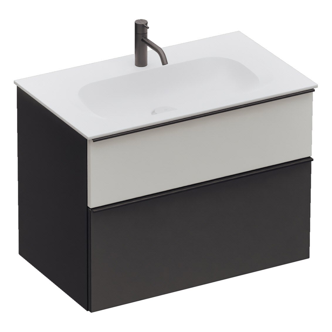 burgbad Fiumo 2.0 Mineralguss-Waschtisch mit Waschtischunterschrank 82 cm, mit Griff G0200
