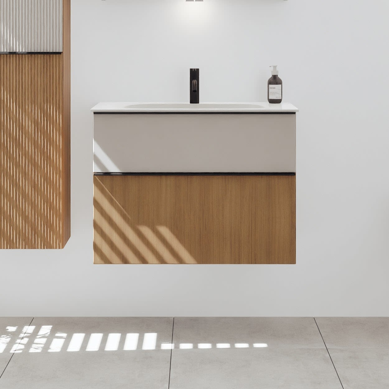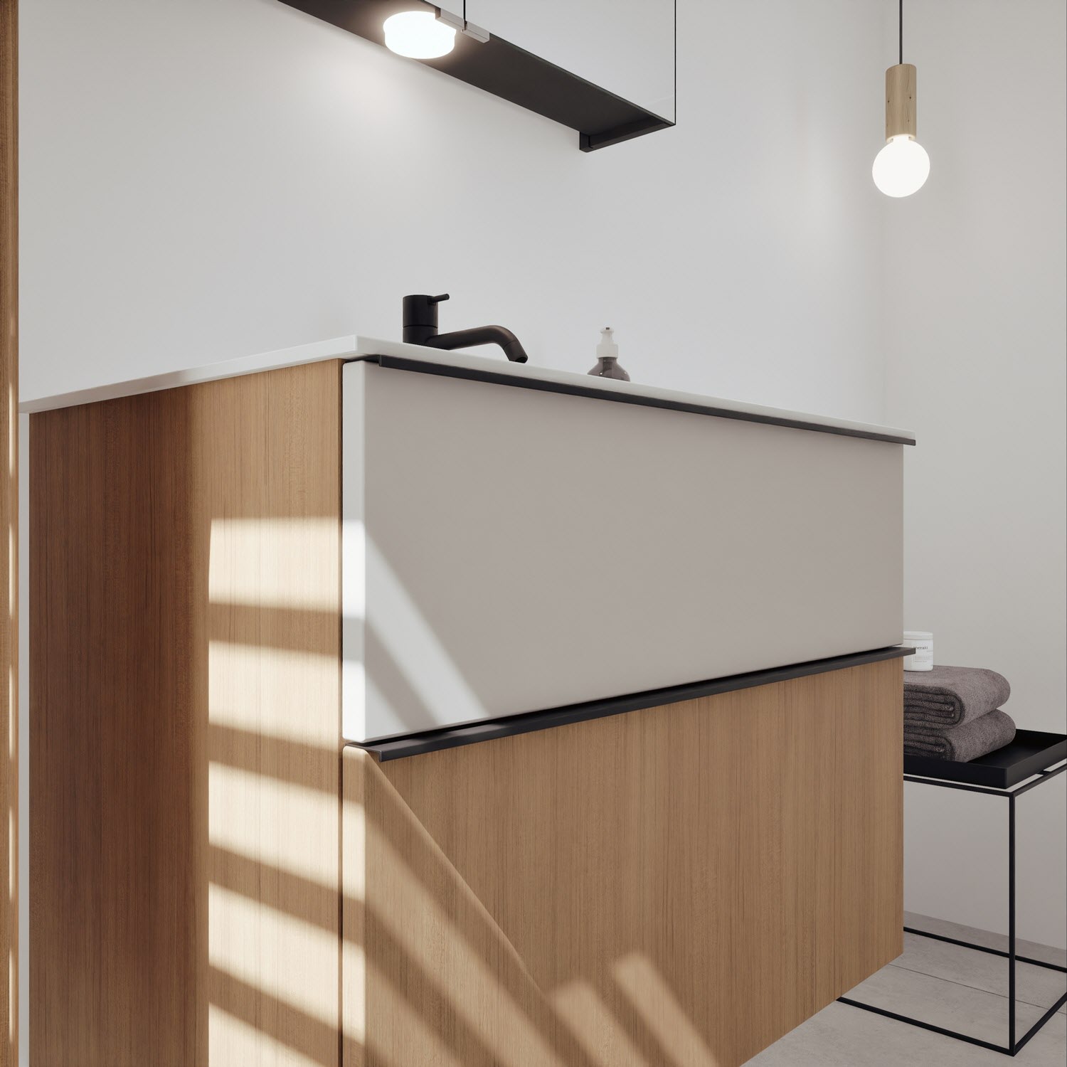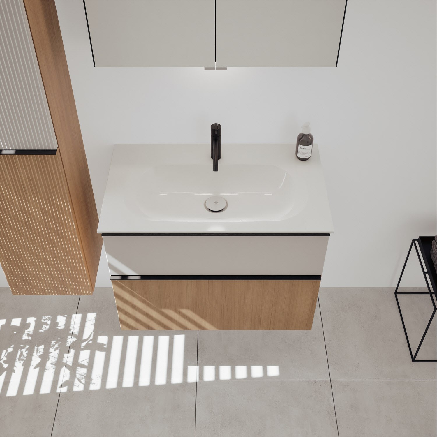 burgbad Fiumo 2.0 Mineralguss-Waschtisch mit Waschtischunterschrank 82 cm, mit Griff G0200