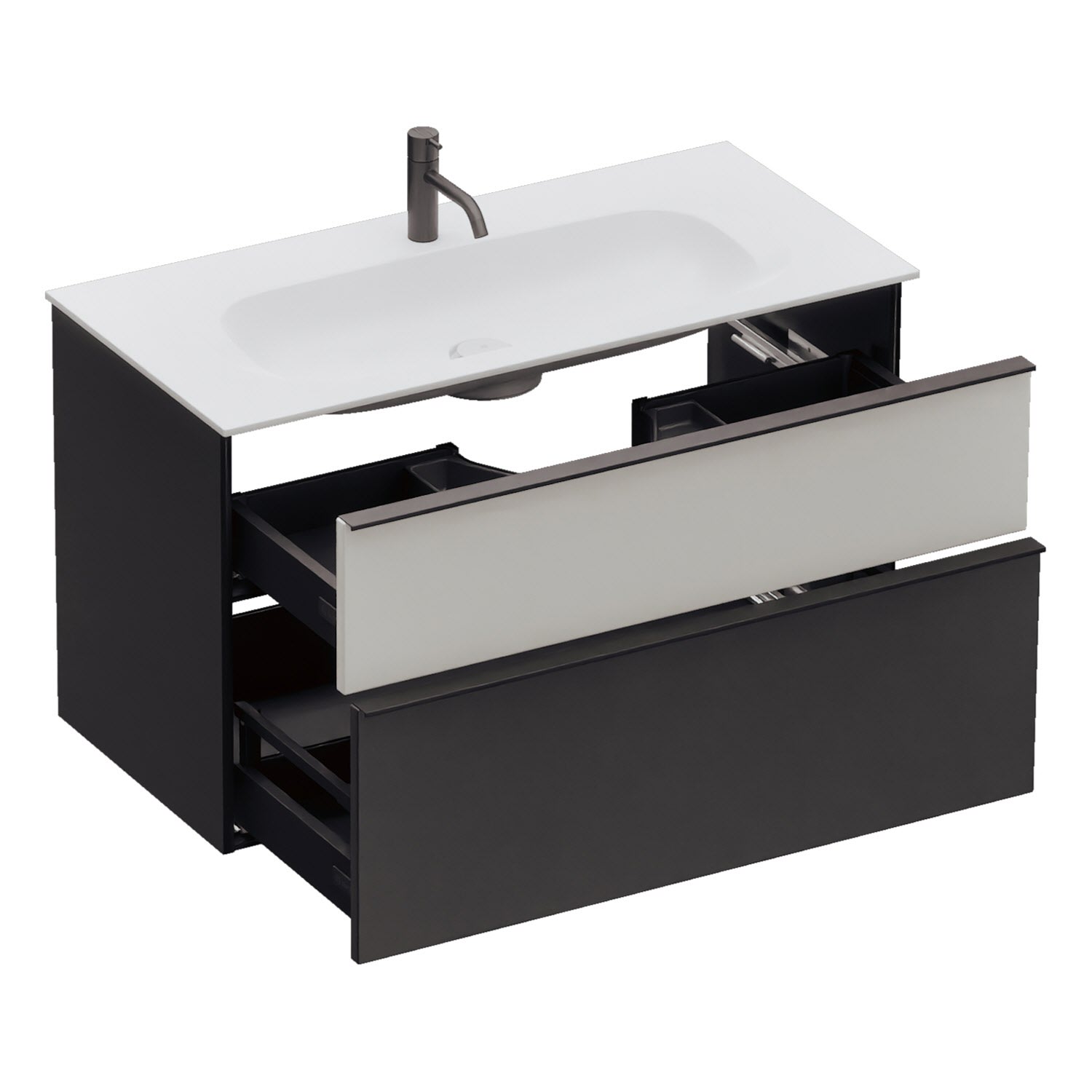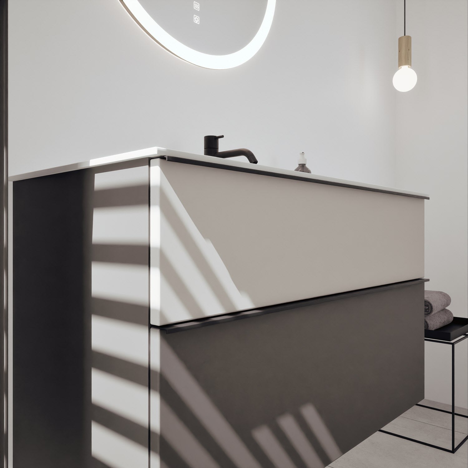 burgbad Fiumo 2.0 Mineralguss-Waschtisch mit Waschtischunterschrank 102 cm, mit Griff G0200