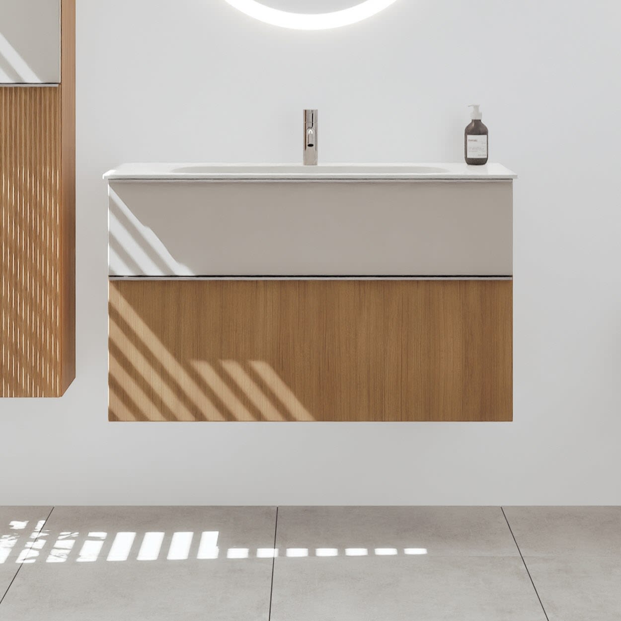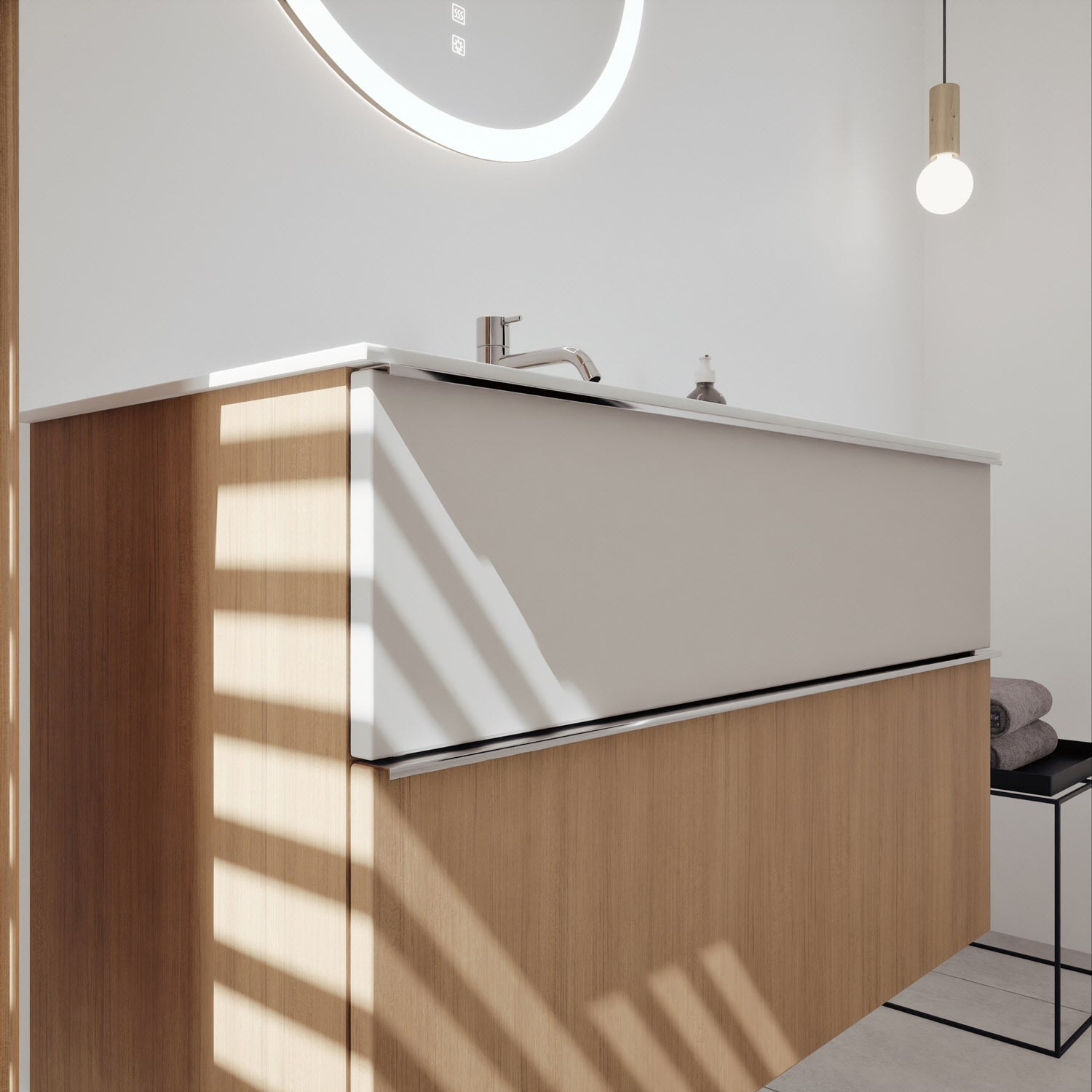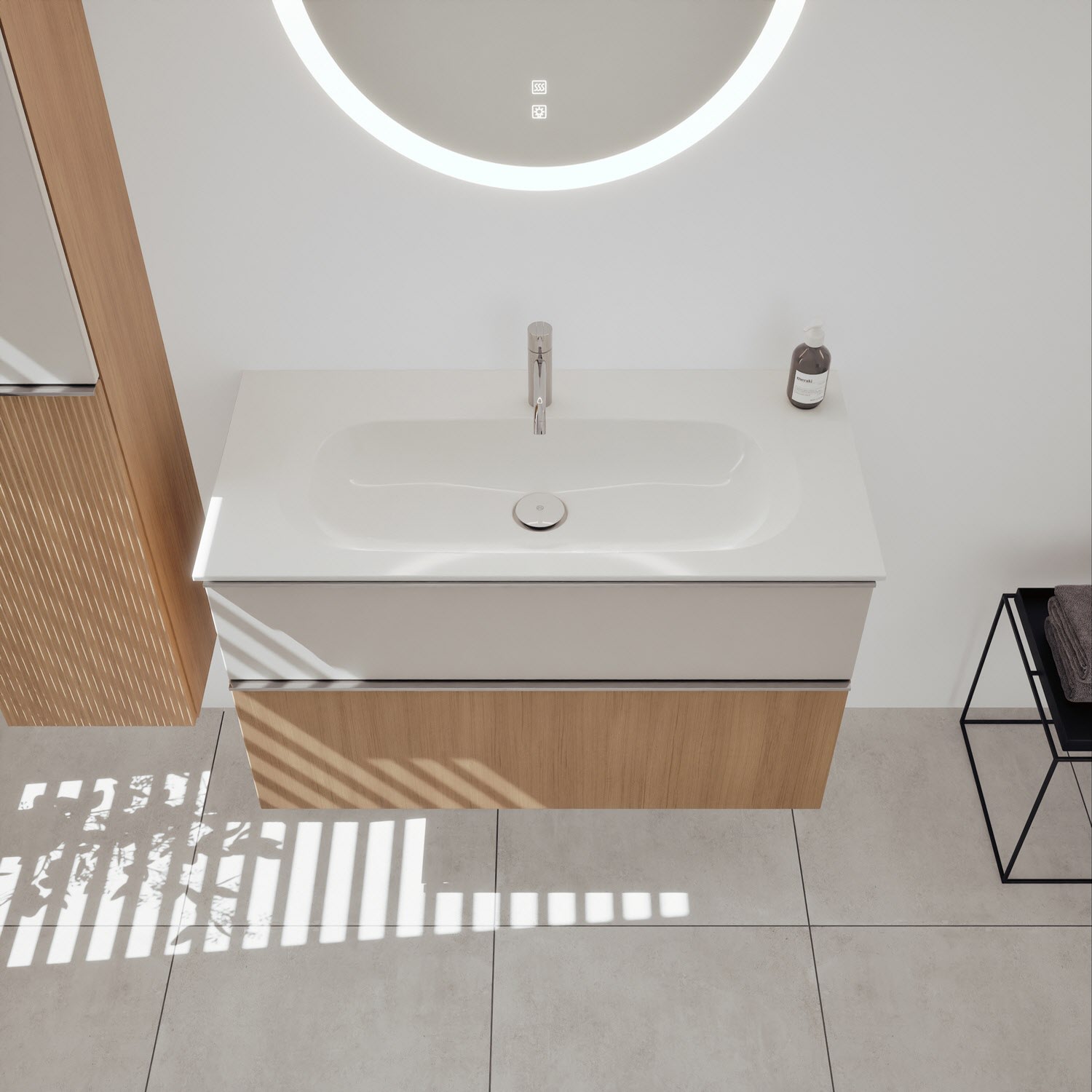 burgbad Fiumo 2.0 Mineralguss-Waschtisch mit Waschtischunterschrank 102 cm, mit Griff G0146