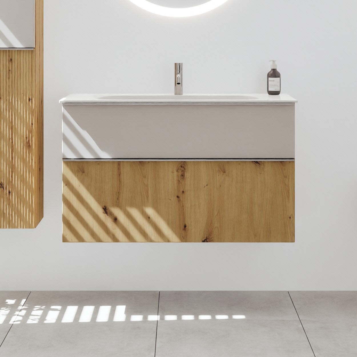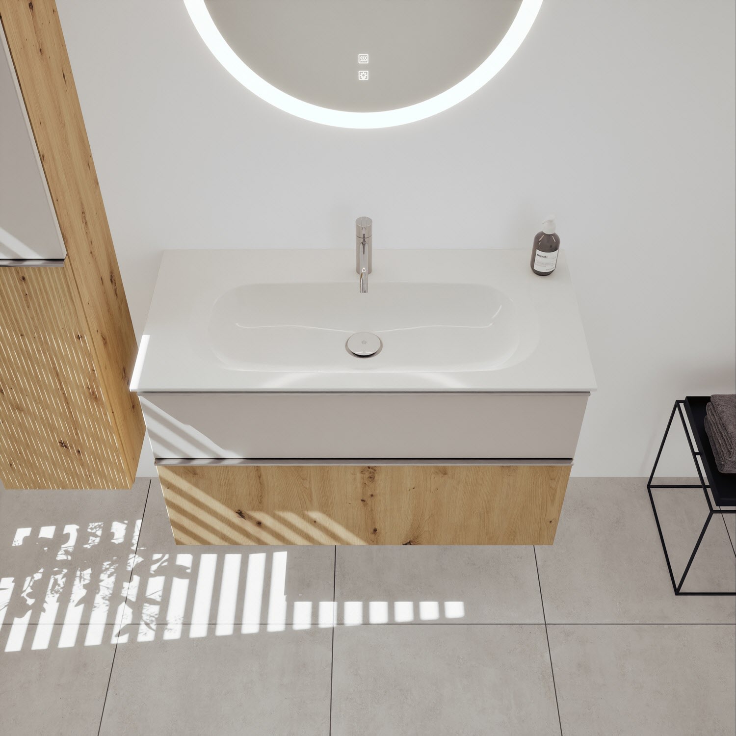 burgbad Fiumo 2.0 Mineralguss-Waschtisch mit Waschtischunterschrank 102 cm, mit Griff G0146