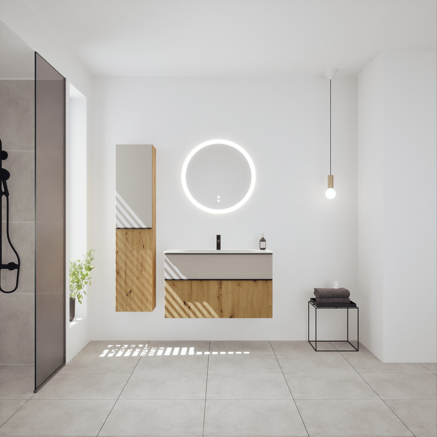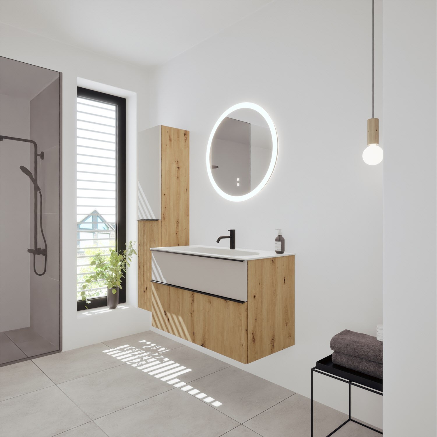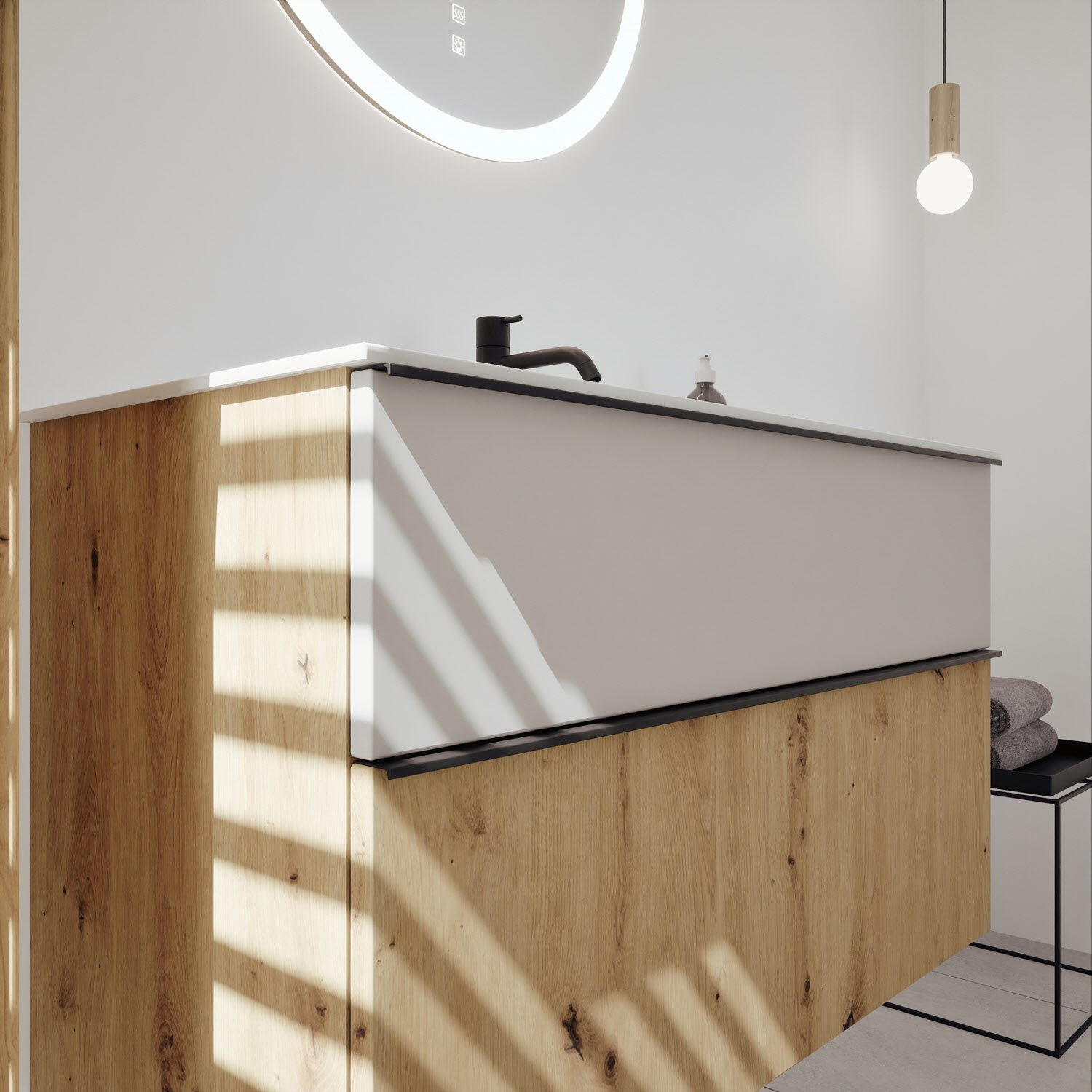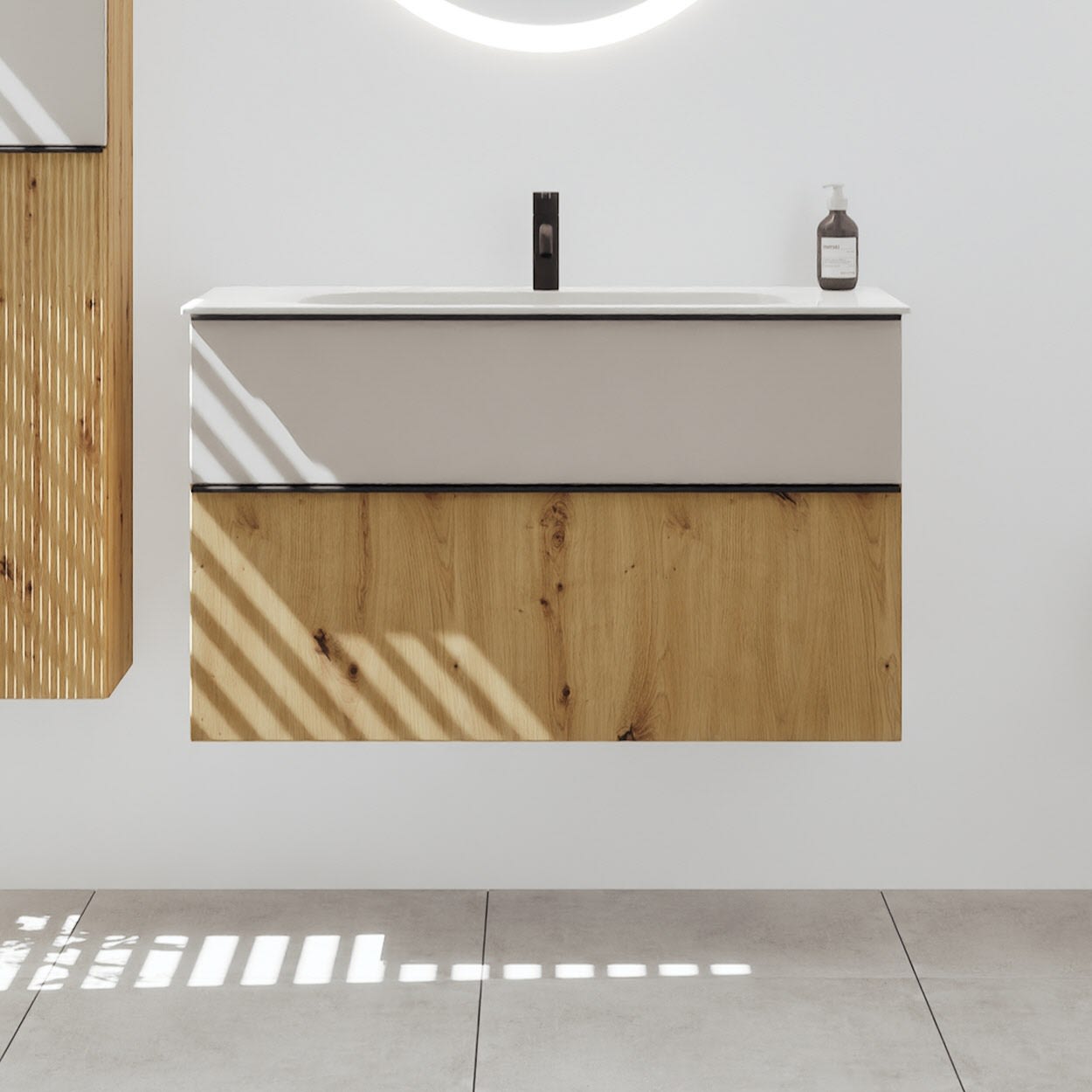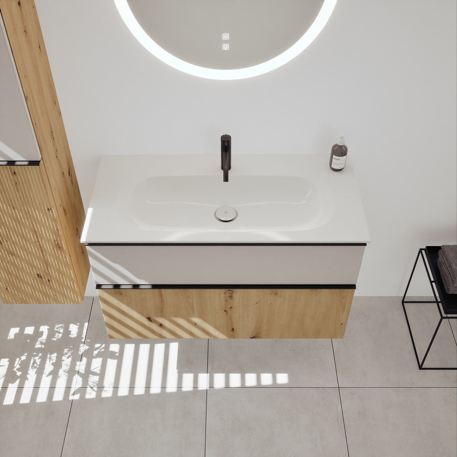 burgbad Fiumo 2.0 Mineralguss-Waschtisch mit Waschtischunterschrank 102 cm, mit Griff G0200