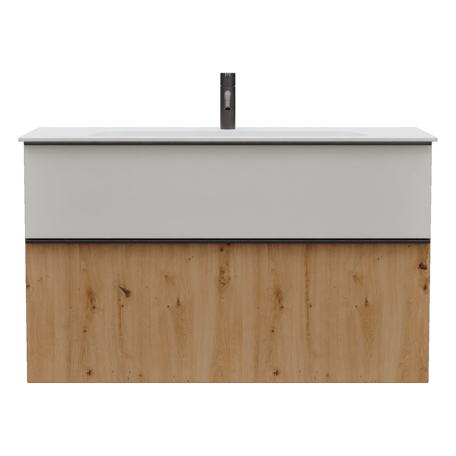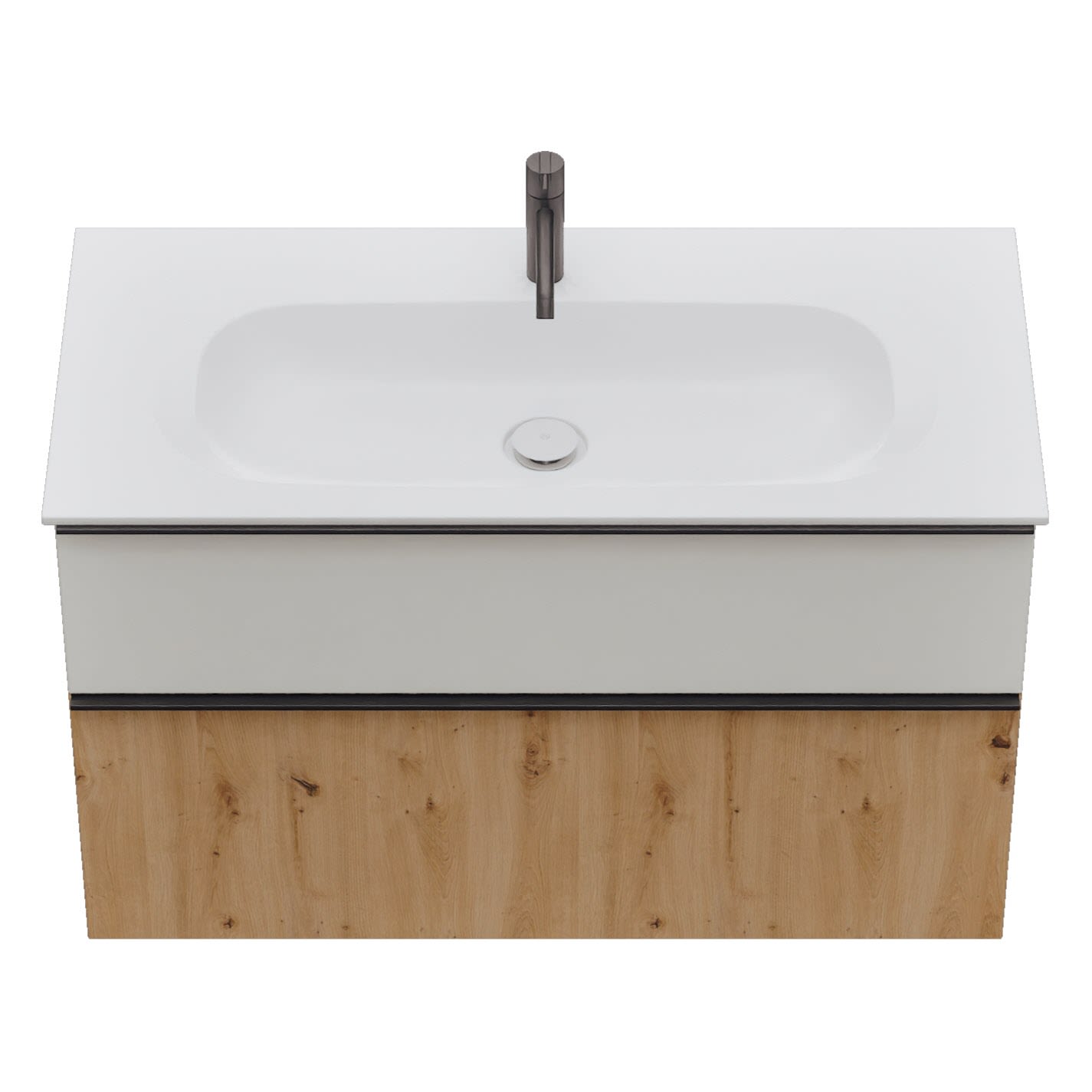 - 1 Schublade oben, 35 cm tief, mit Siphonausschnitt und Inneneinteilung