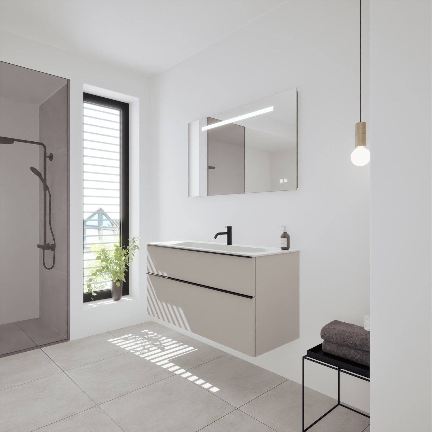 burgbad Fiumo 2.0 Mineralguss-Waschtisch mit Waschtischunterschrank 122 cm, mit Griff G0200