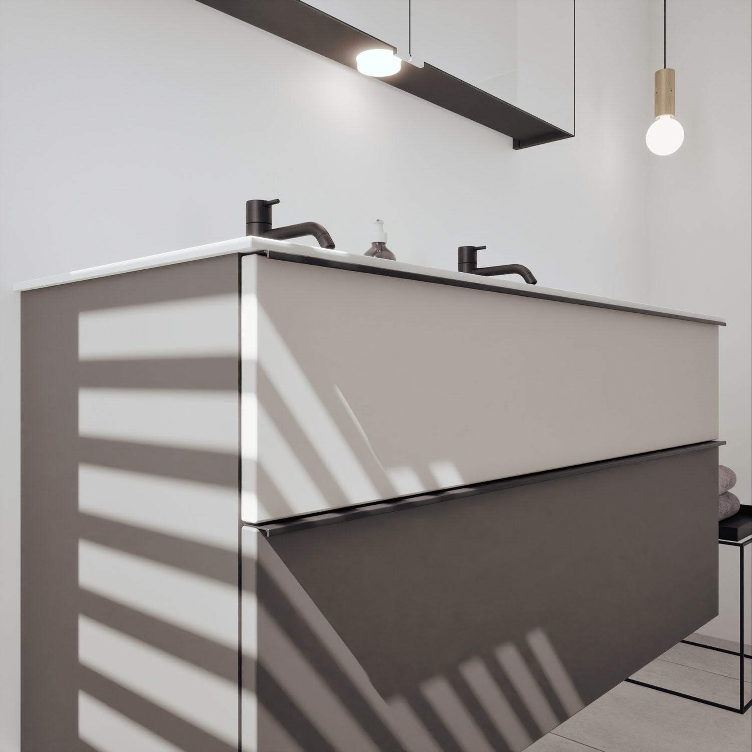 burgbad Fiumo 2.0 Badmöbelset 62 cm mit Waschtisch mit Unterschrank mit Griff G0146 und Spiegelschrank