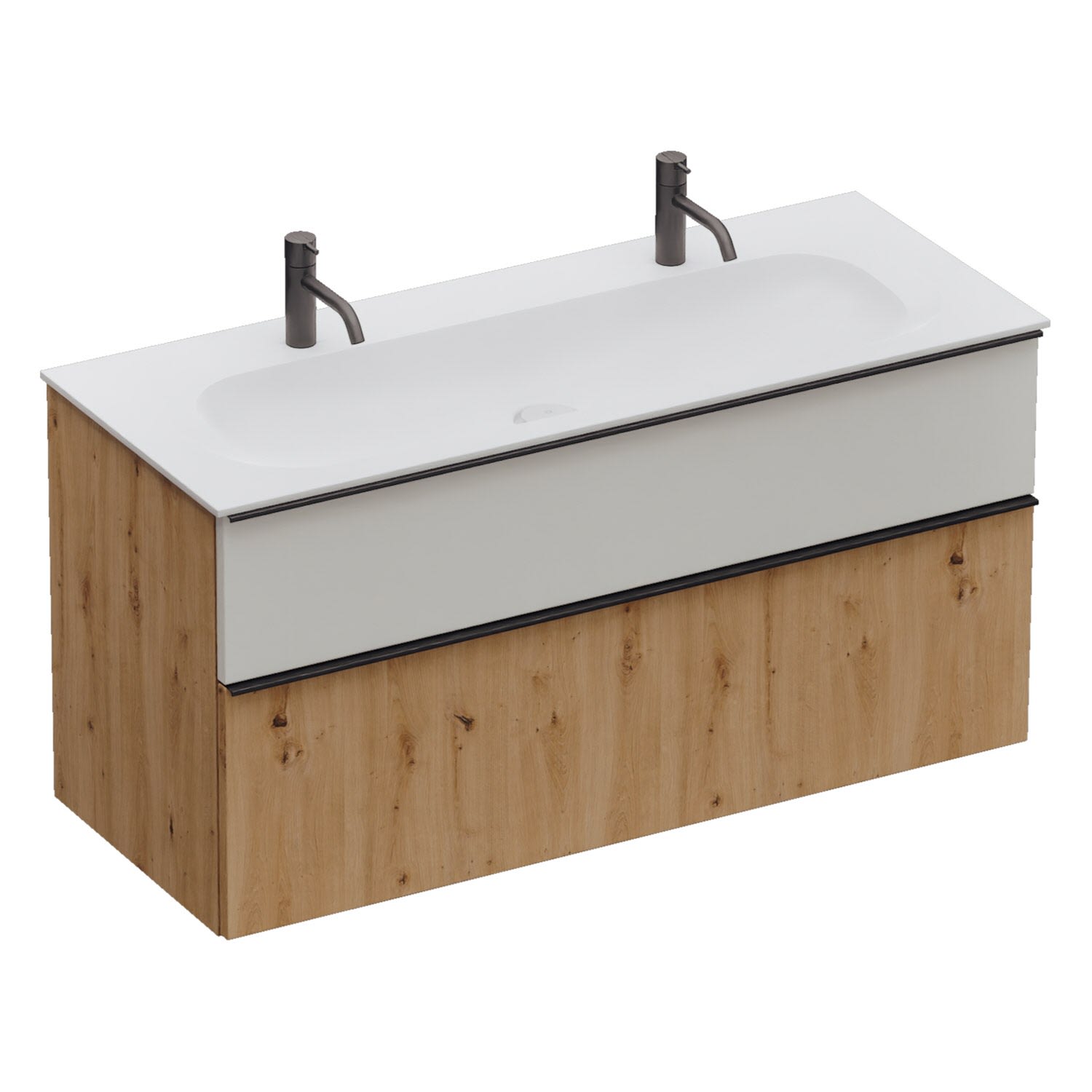 burgbad Fiumo 2.0 Mineralguss-Waschtisch mit Waschtischunterschrank 122 cm, mit Griff G0200