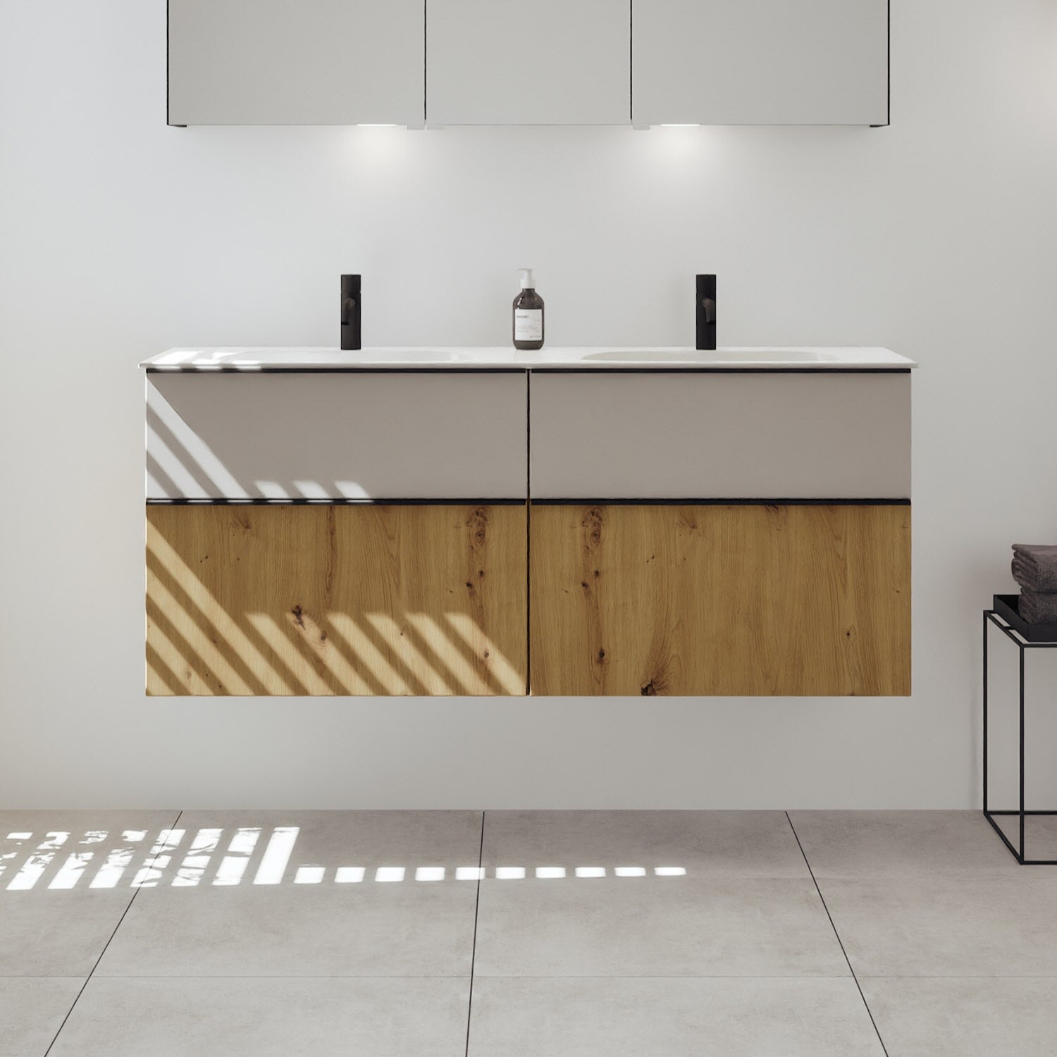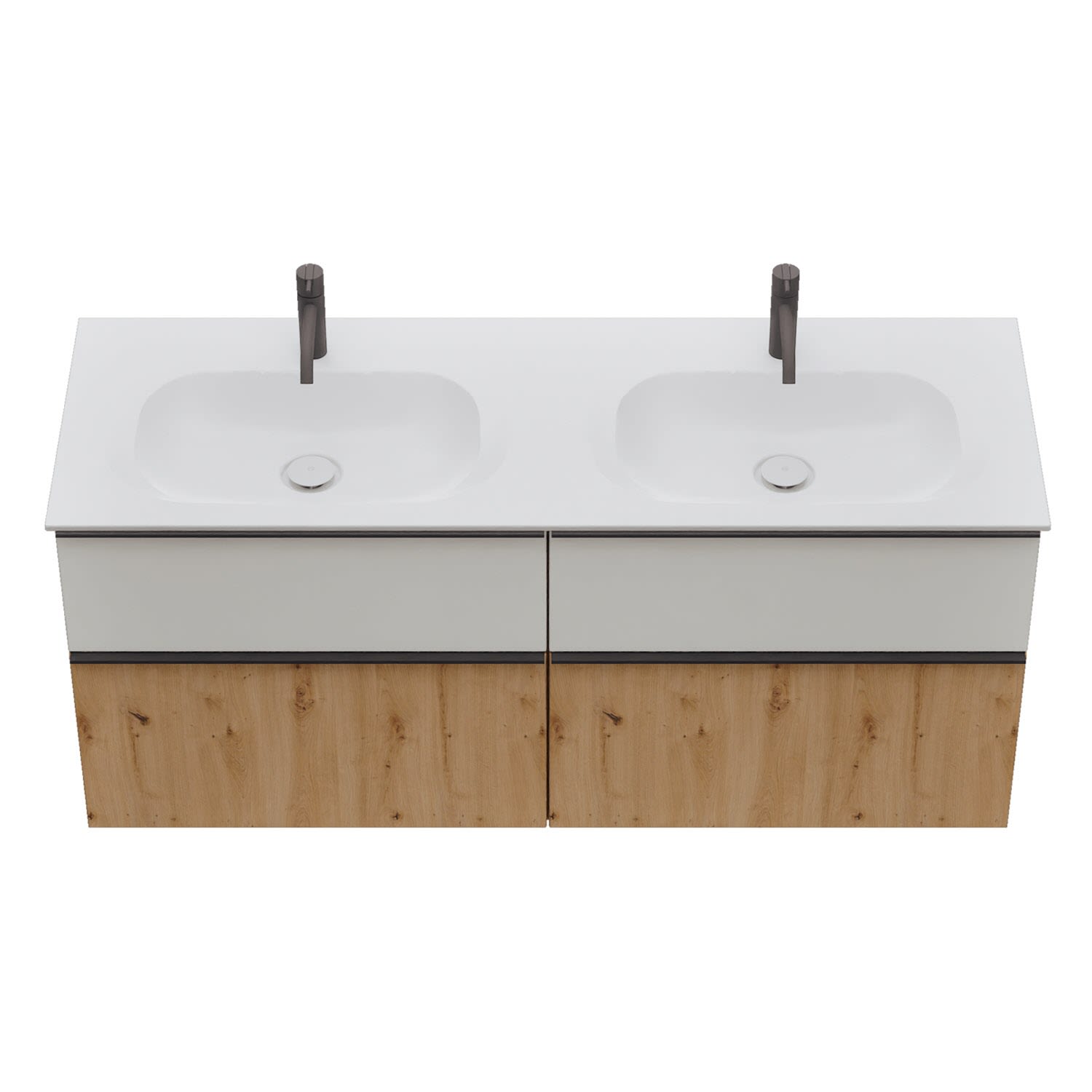 burgbad Fiumo 2.0 Mineralguss-Waschtisch mit Waschtischunterschrank 142 cm, mit Griff G0200