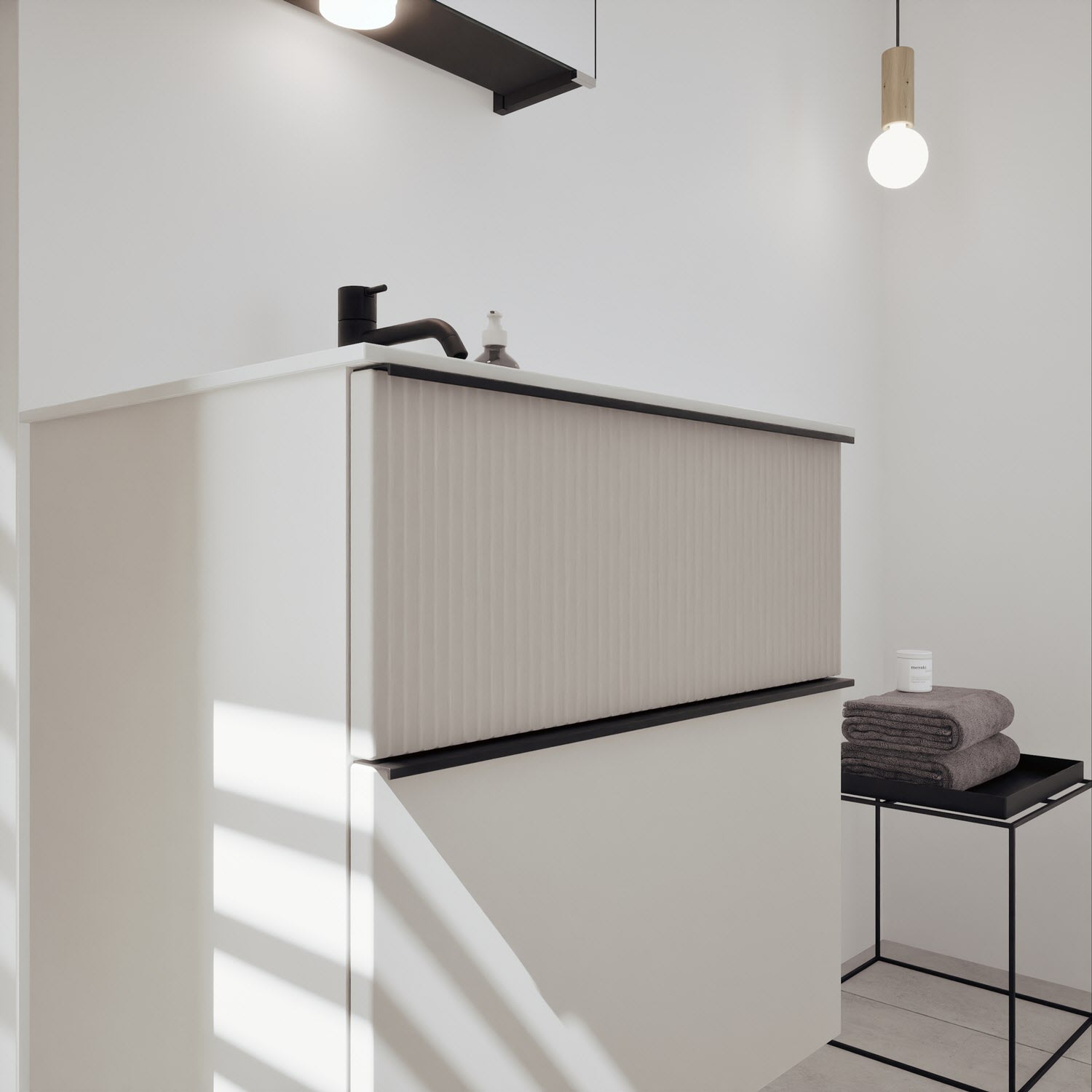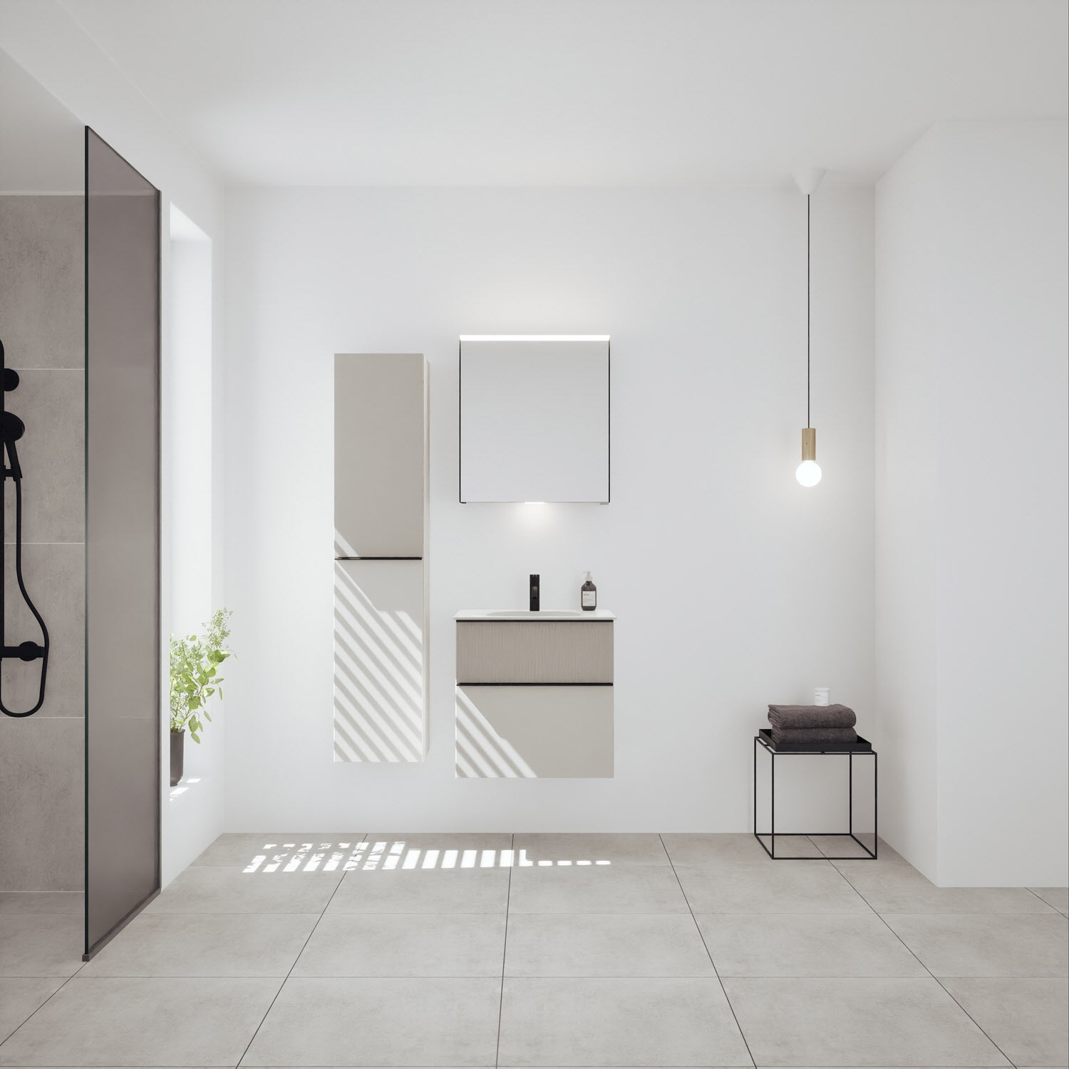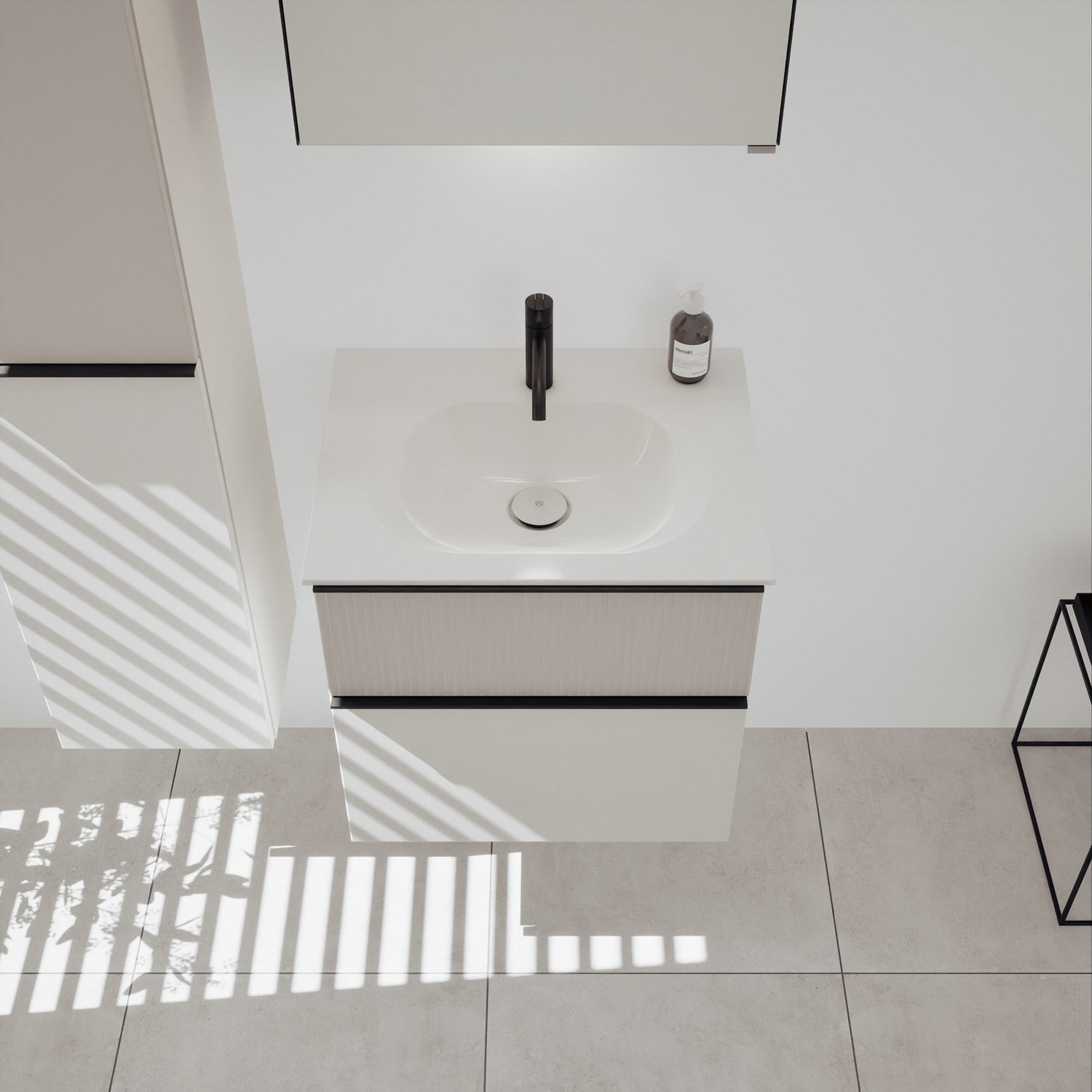 burgbad Fiumo 2.0 Mineralguss-Waschtisch mit Waschtischunterschrank 62 cm, mit Griff G0200
