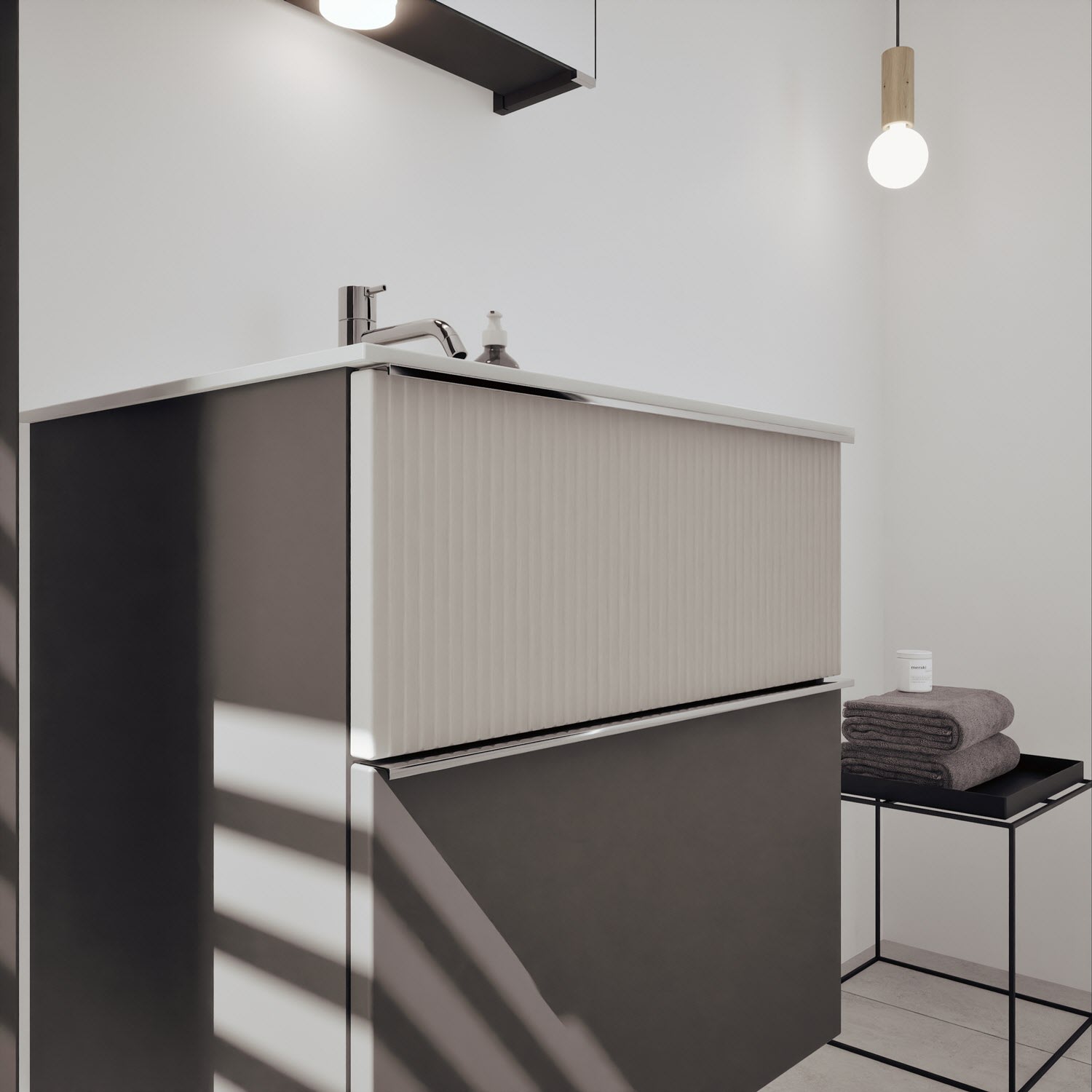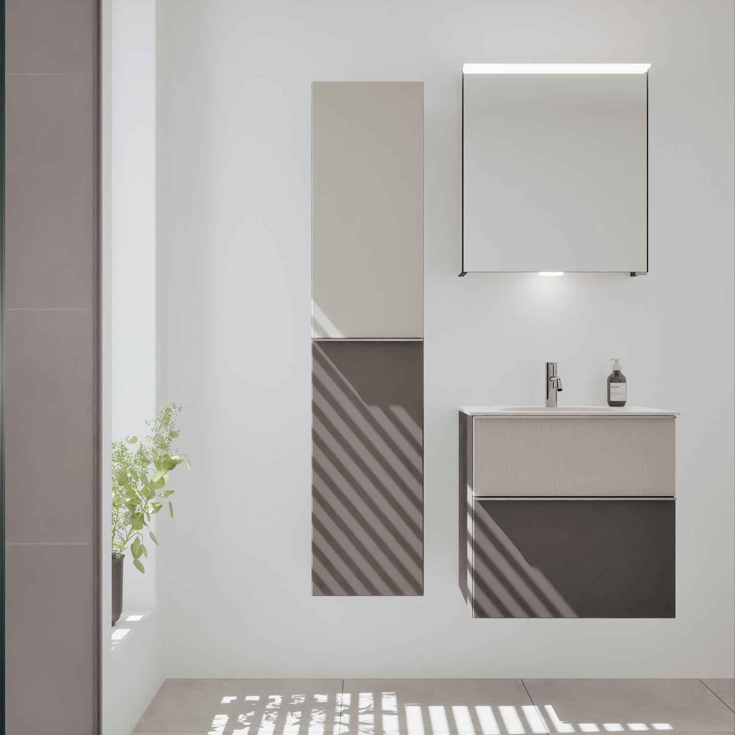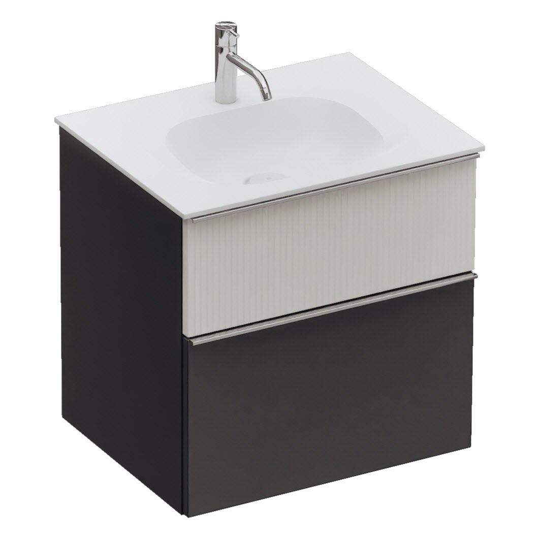 burgbad Fiumo 2.0 Mineralguss-Waschtisch mit Waschtischunterschrank 62 cm, mit Griff G0146