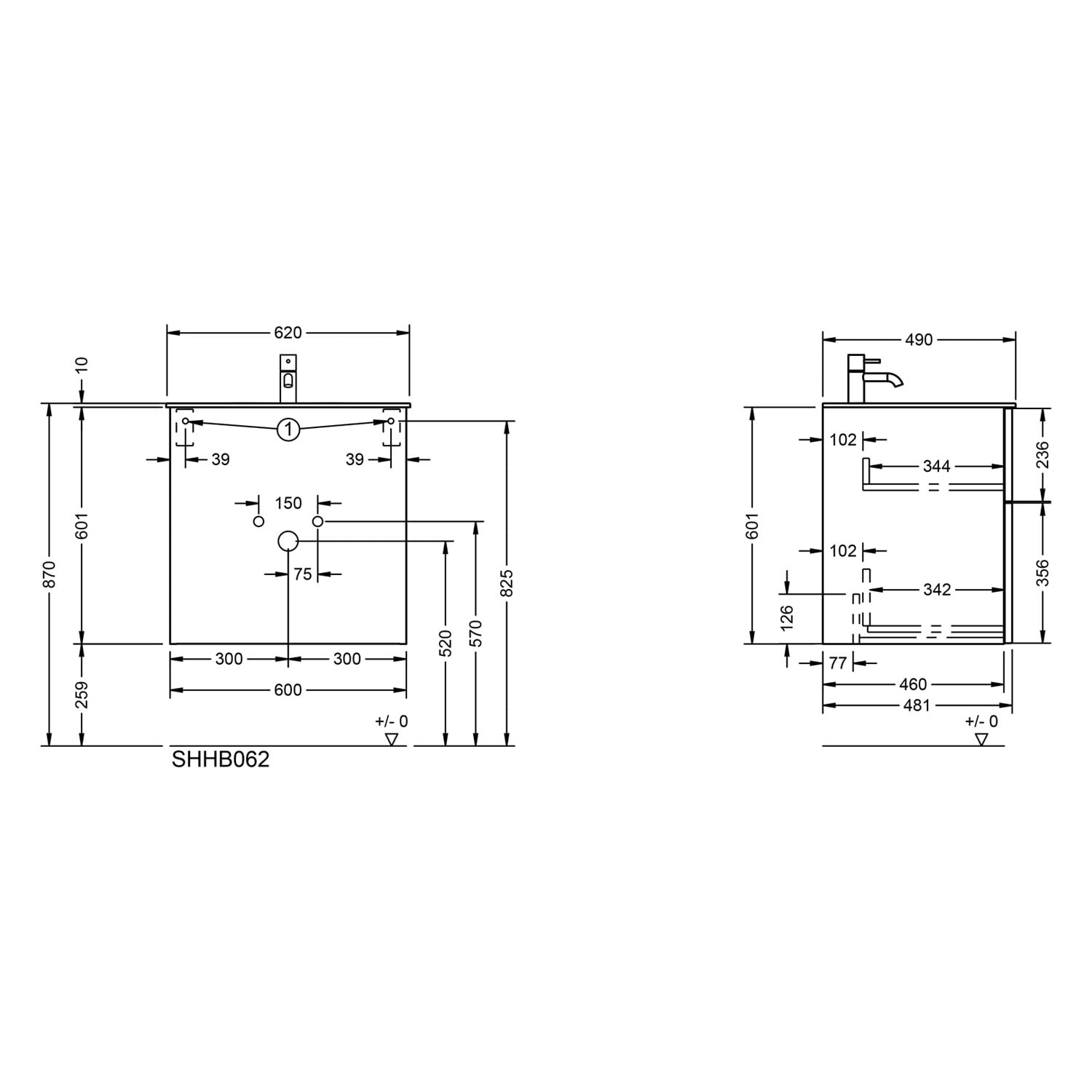 - Waschtischunterschrank, Waschtisch, cleanFlow, Befestigung außer Stockschrauben