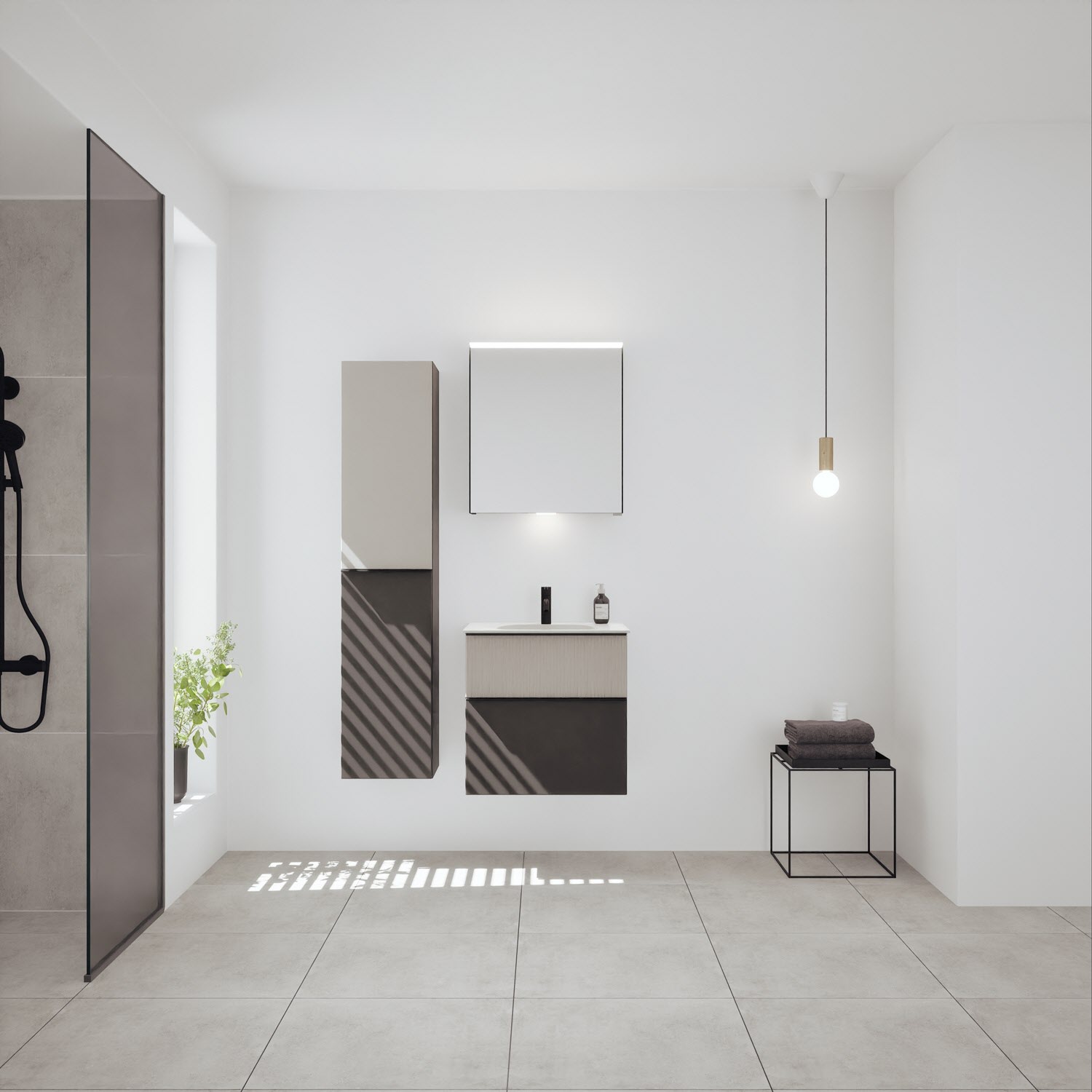 burgbad Fiumo 2.0 Mineralguss-Waschtisch mit Waschtischunterschrank 62 cm, mit Griff G0200